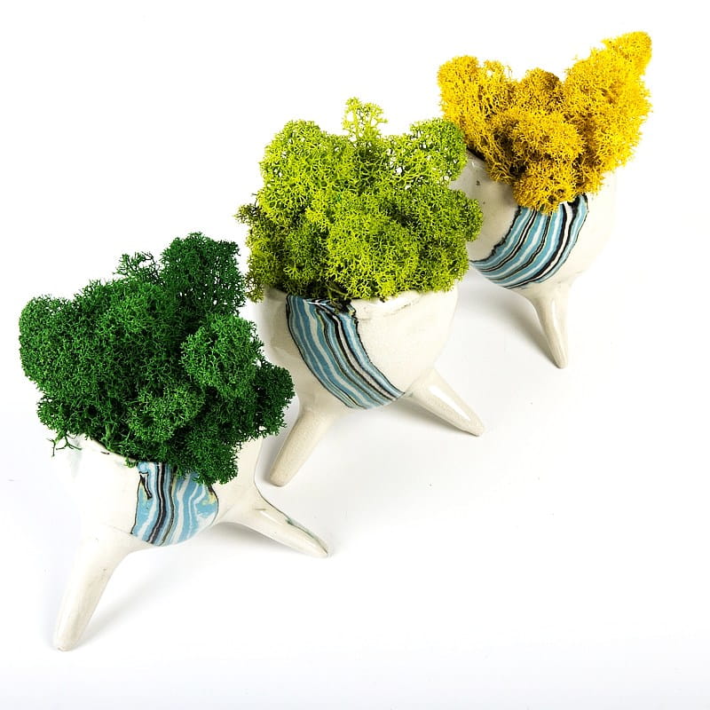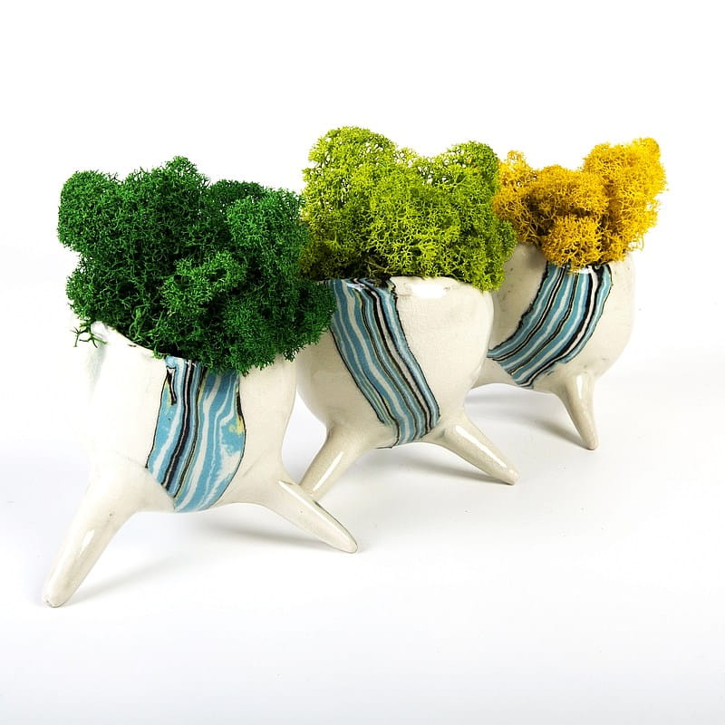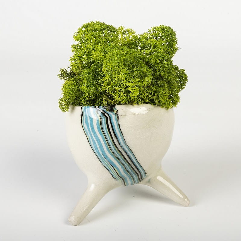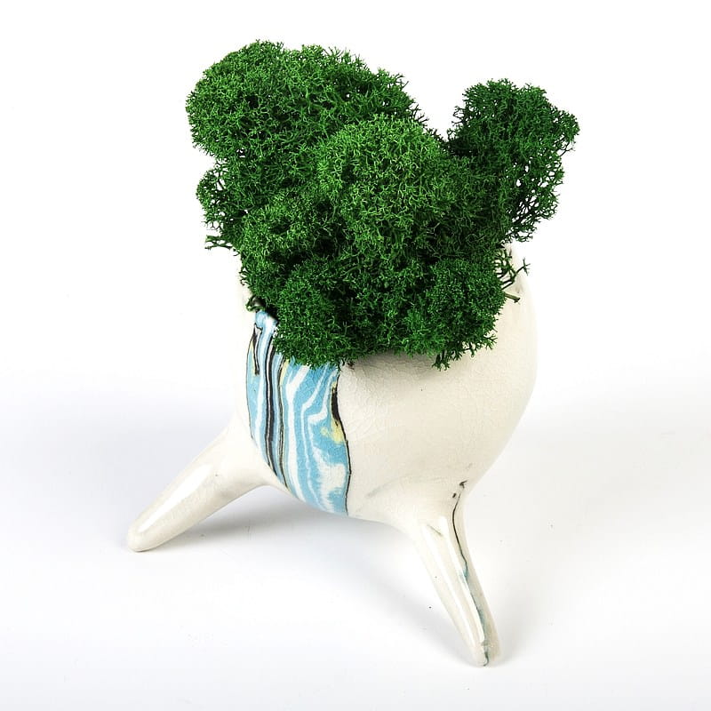 Ceramiczna osłonka, naczynko na nóżkach - idealne na mech lub sukulent. Ceramika agatowa, rękodzieło.