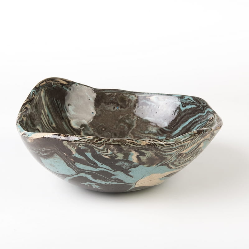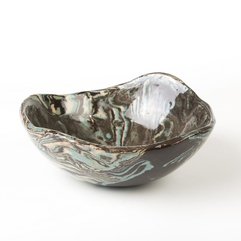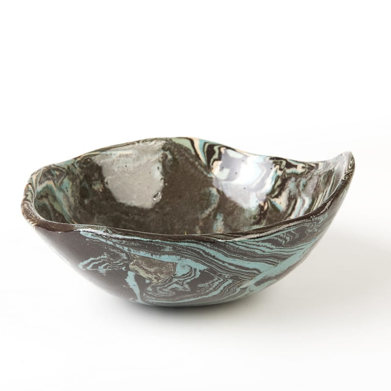 Miska o niewielkich rozmiarach wykonana ręcznie techniką ceramiki agatowej. Naczynie może być wykorzystywane w celach spożywczych, można je też zastosować jako podstawkę na drobiazgi lub ozdobę samą w sobie.