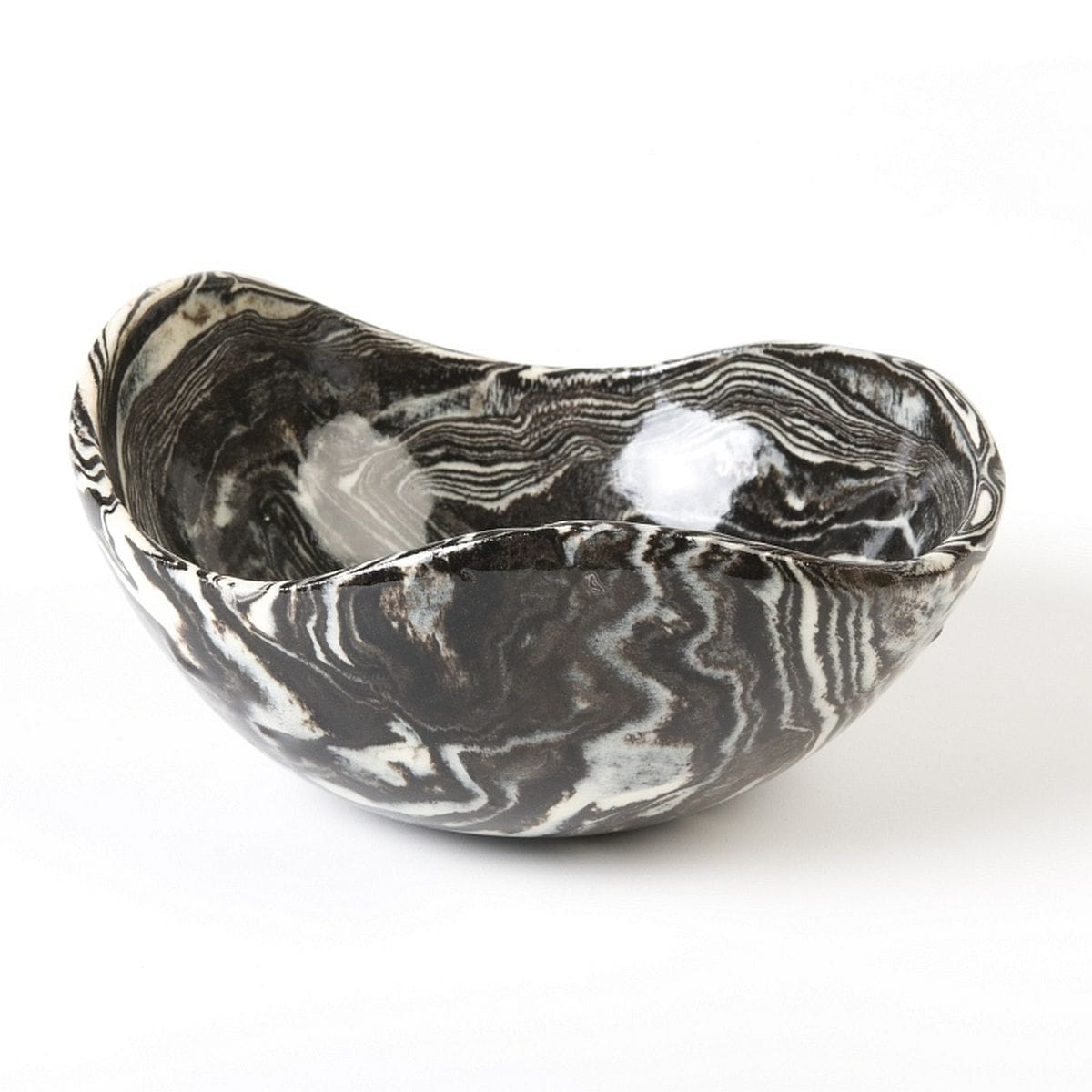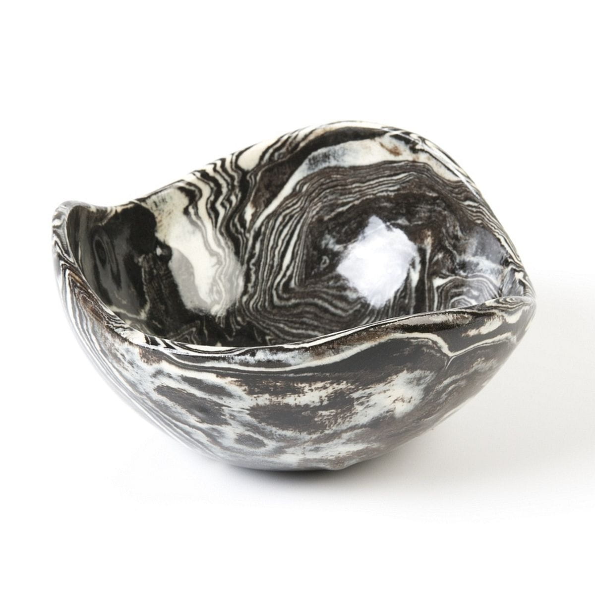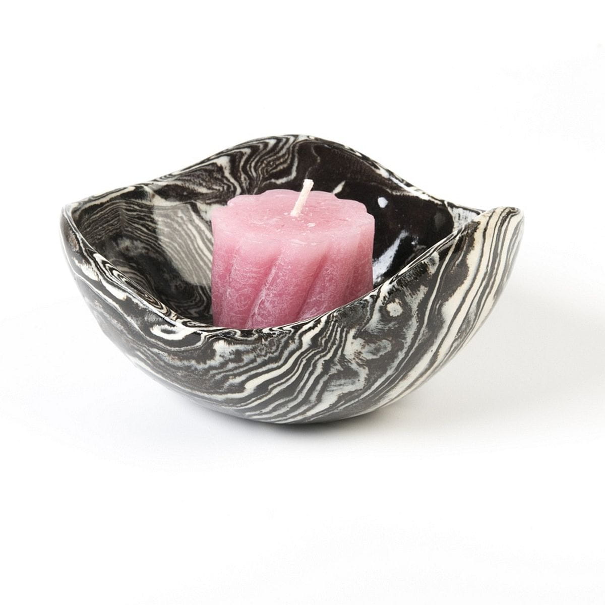 Czarno-biała miseczka z ceramiki wykonana techniką ceramiki agatowej, nawiązująca do estetyki marmuru. Rękodzieło, unikat.