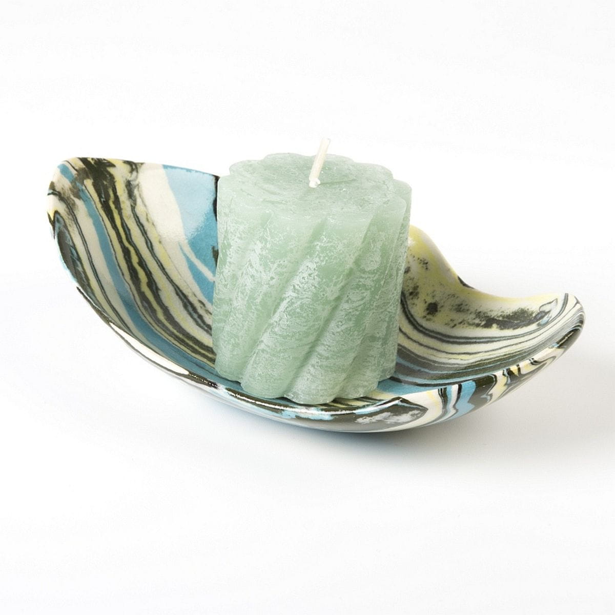 Polskie rękodzieło. Produkt formowany ręcznie na balonie, nieco spłaszczony od spodu. Kolorystyka: ciemna zieleń, błękit, żółty, kremowy. Produkt pokryty szkliwem spożywczym i wypalony dwukrotnie w bardzo wysokiej temperaturze. Technika: ceramika agatowa, nerikomi, neriage. W stylu wabi sabi. Zalecamy mycie ręczne (nie w zmywarce).
