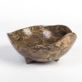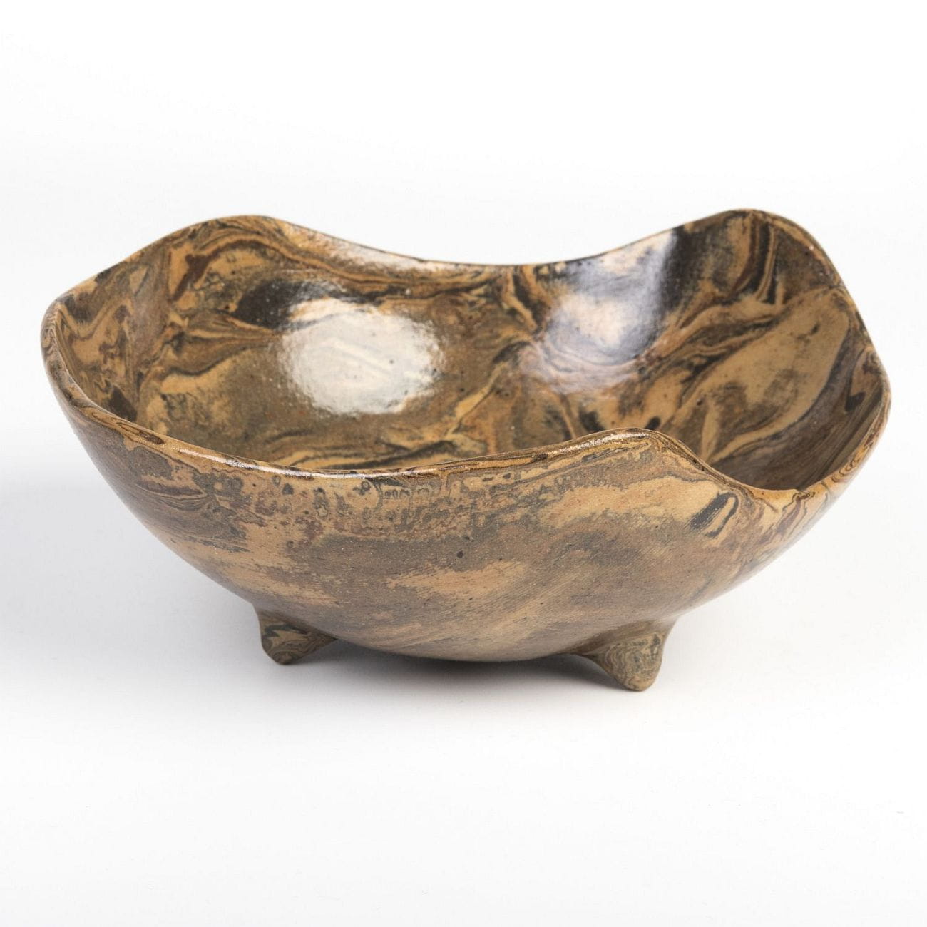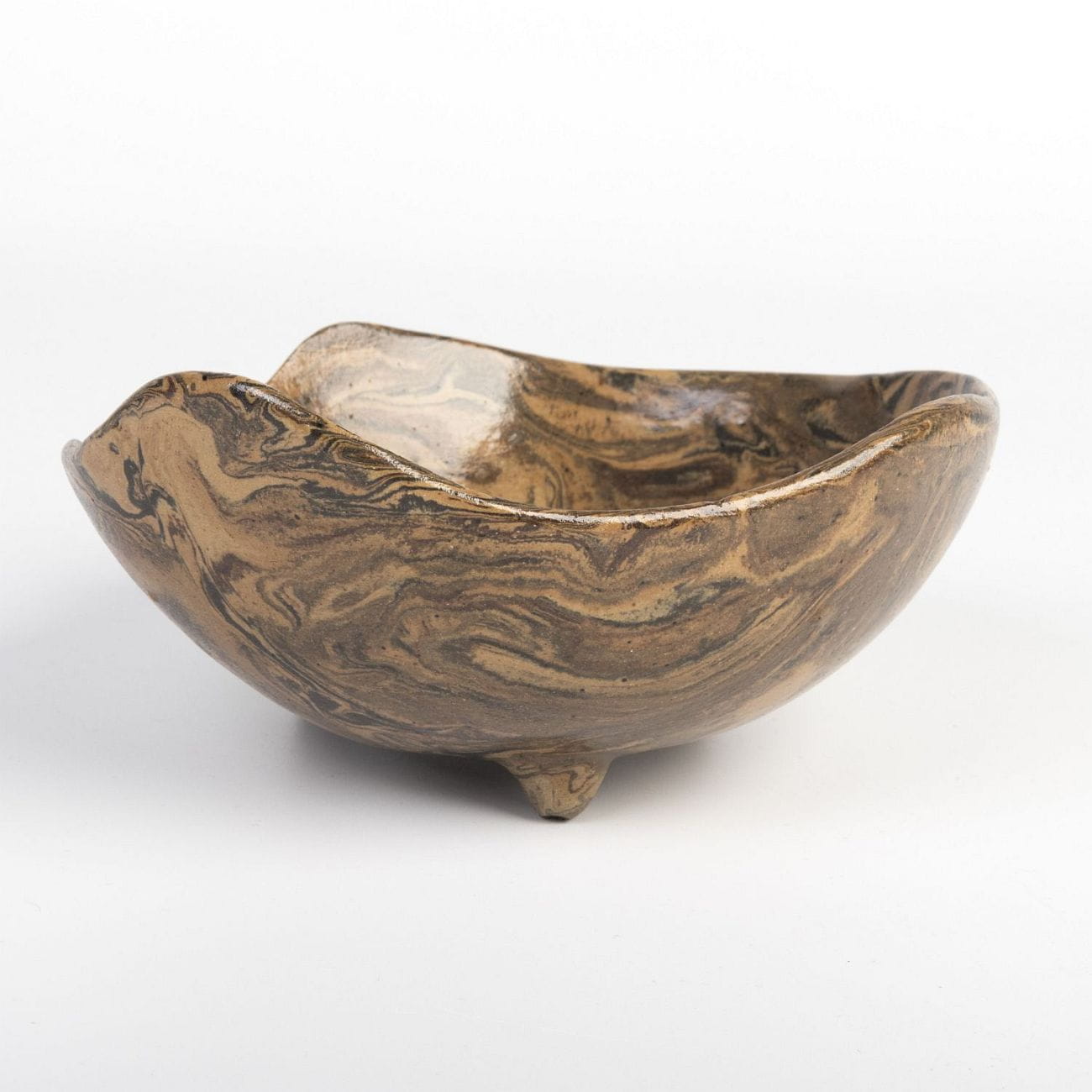 Ceramiczna miseczka na nóżkach wykonana techniką ceramiki agatowej, imitująca drewno.