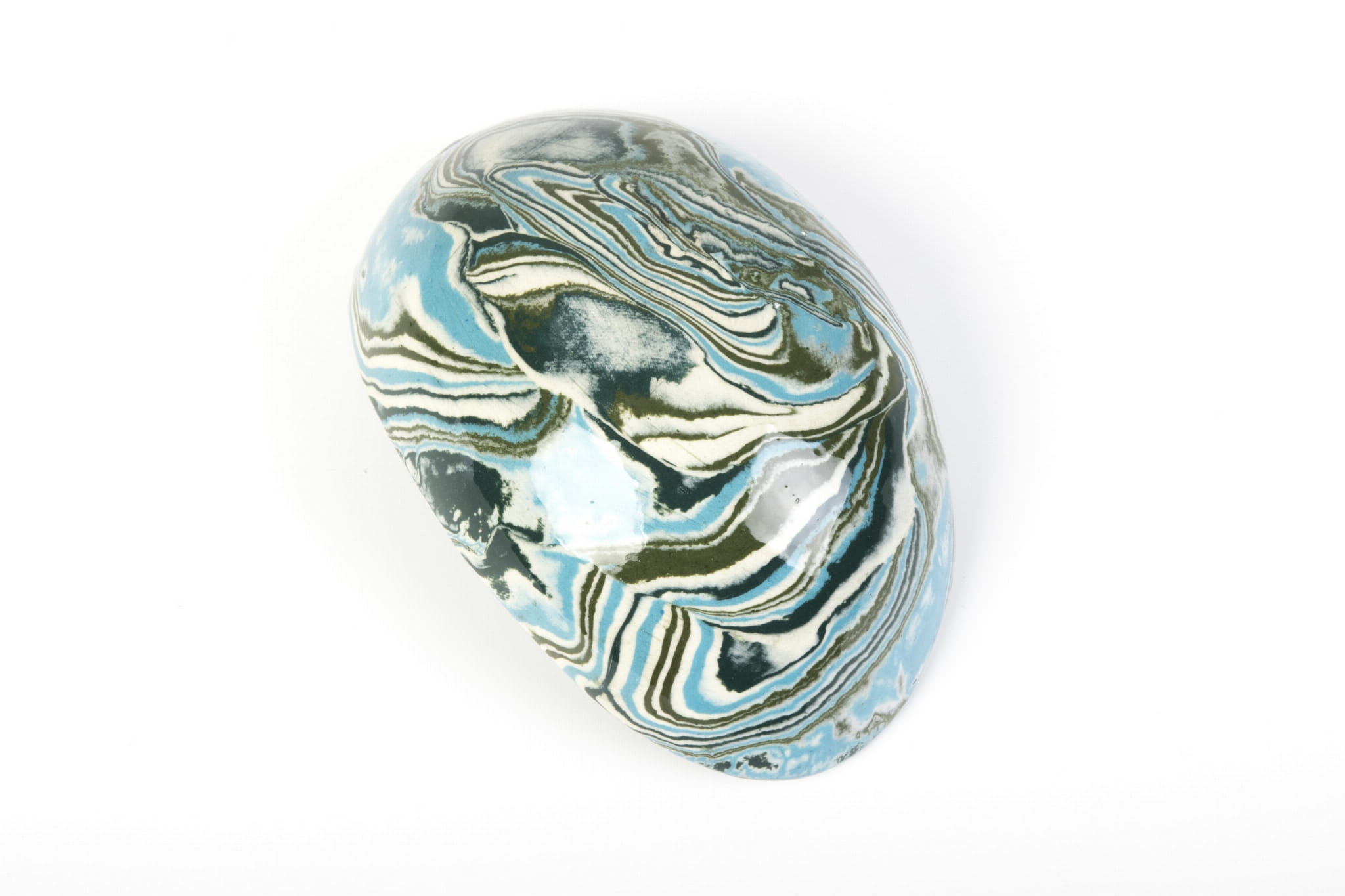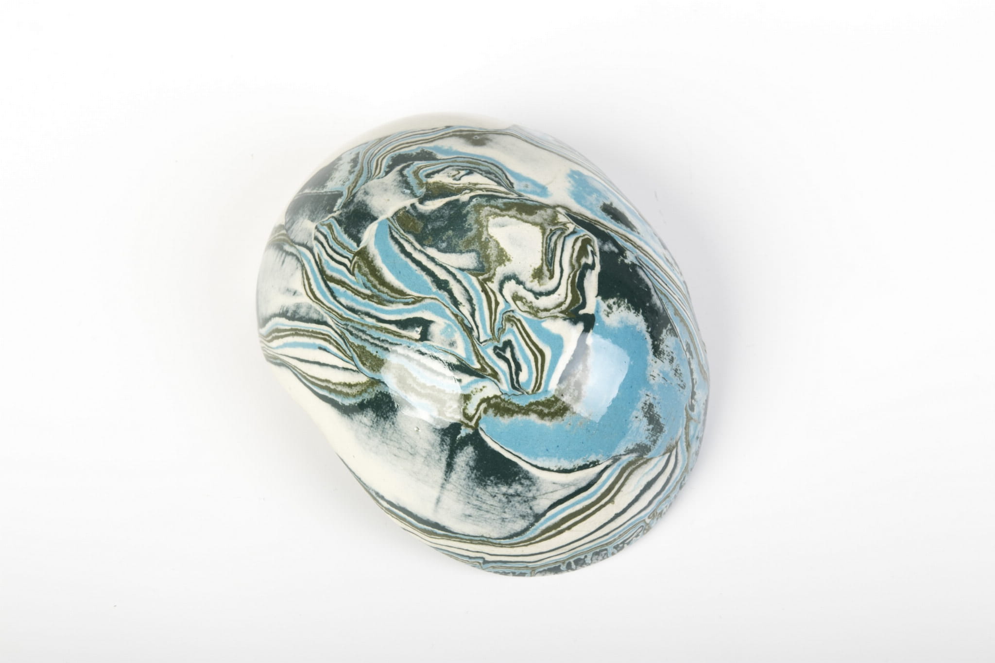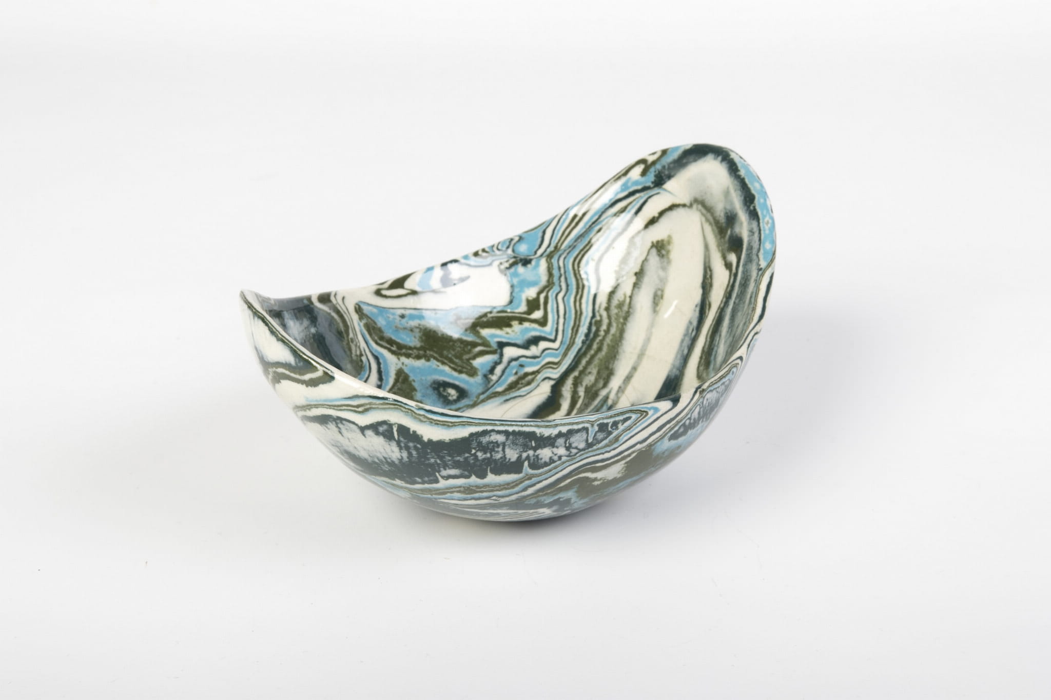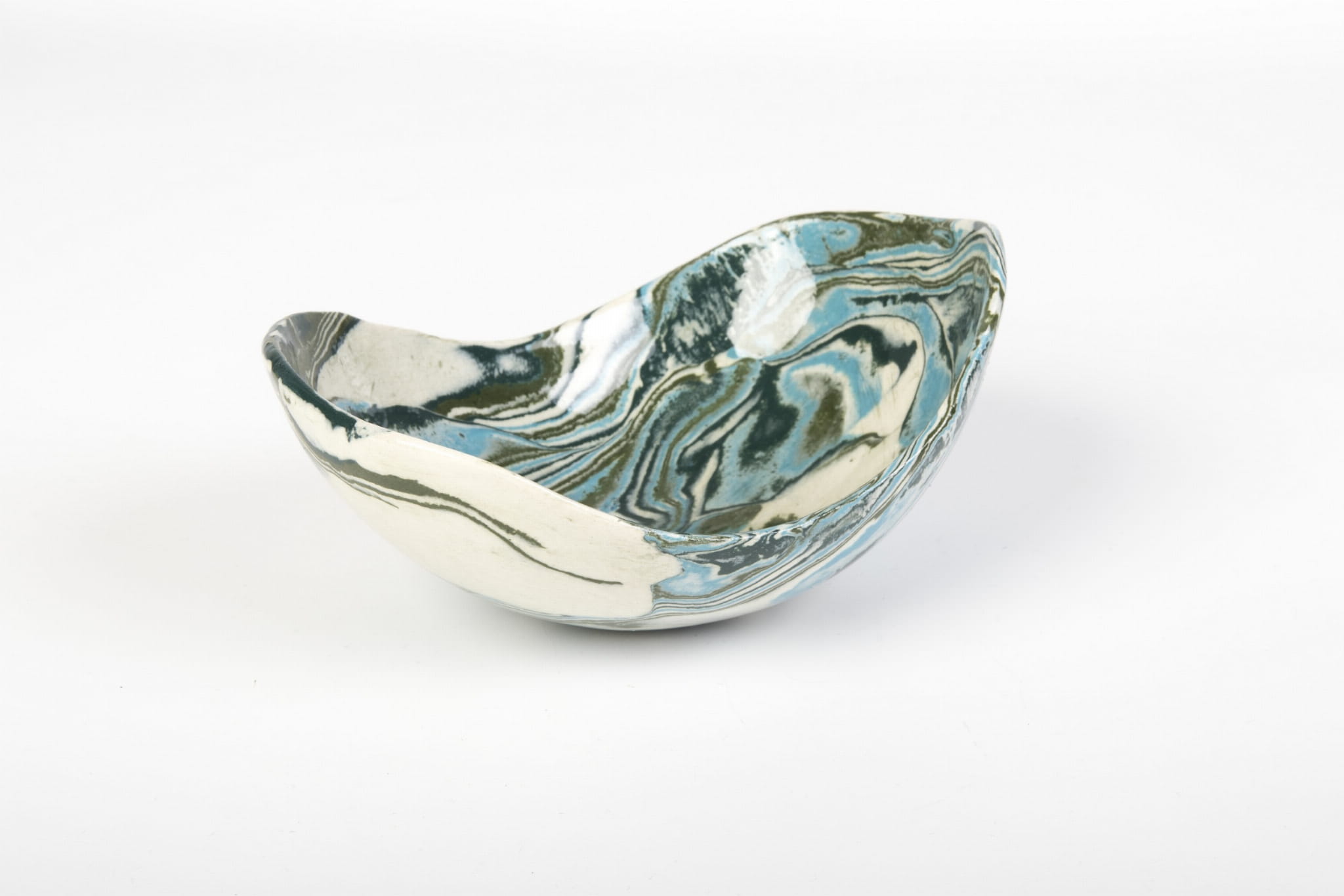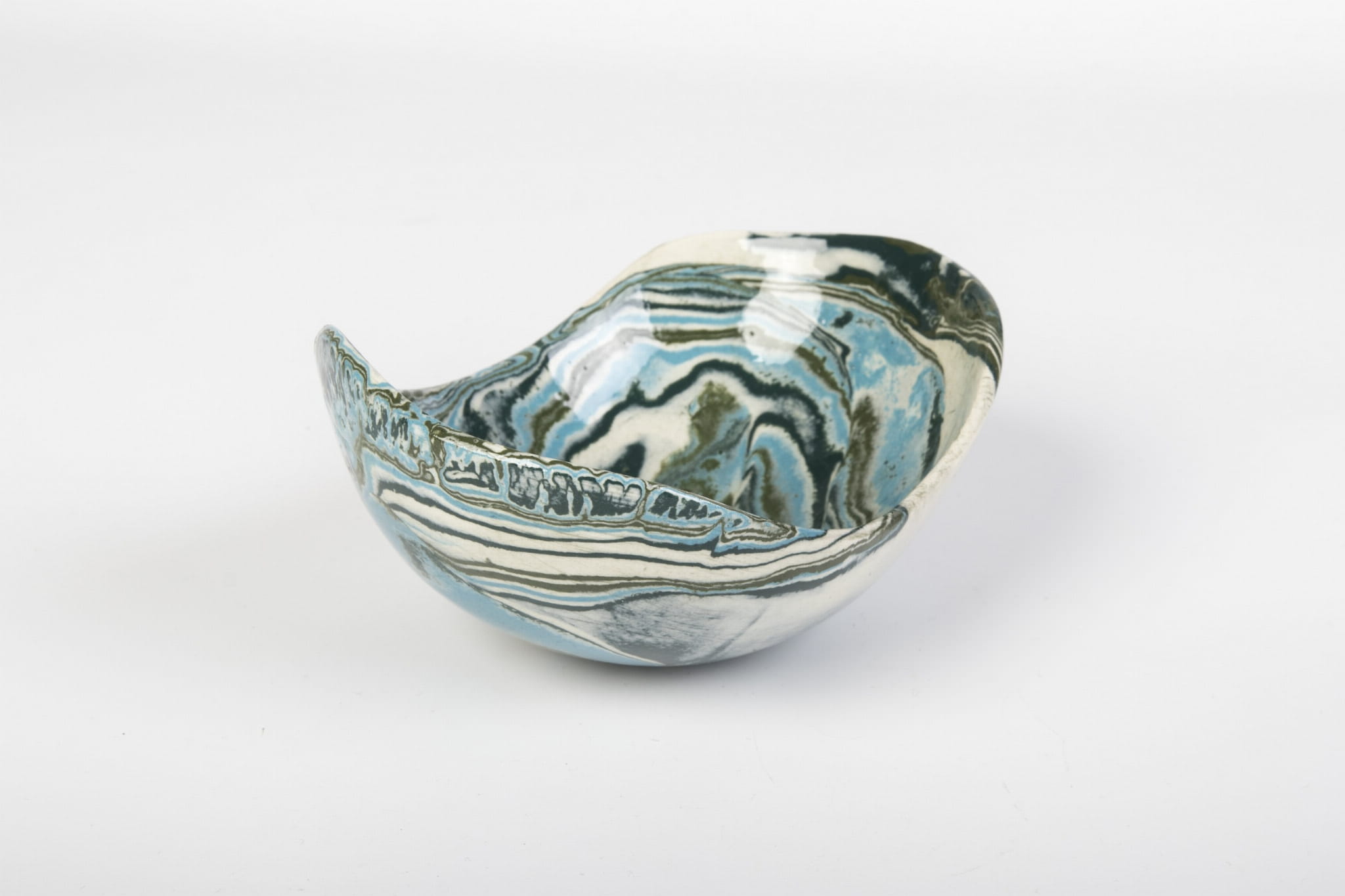 Miseczka handmade, wykonana w pracowni Skrawki Natury na południu Polski. Miseczka wykonana techniką ceramiki agatowej (ceramika marmurkowa, Nerikomi, Neriage). Jest to bardzo czasochłonna technika, w której ceramik rozpoczyna pracę od barwienia gliny wybranymi pigmentami, następnie ręcznie formuje naczynie. Kiedy ceramiczne naczynie wyschnie czas na szlifowanie, wypalanie w piecu, pokrywanie przezroczystym szkliwem i ponowne wypalanie. Cały proces produkcji zajmuje około 3 tygodni.