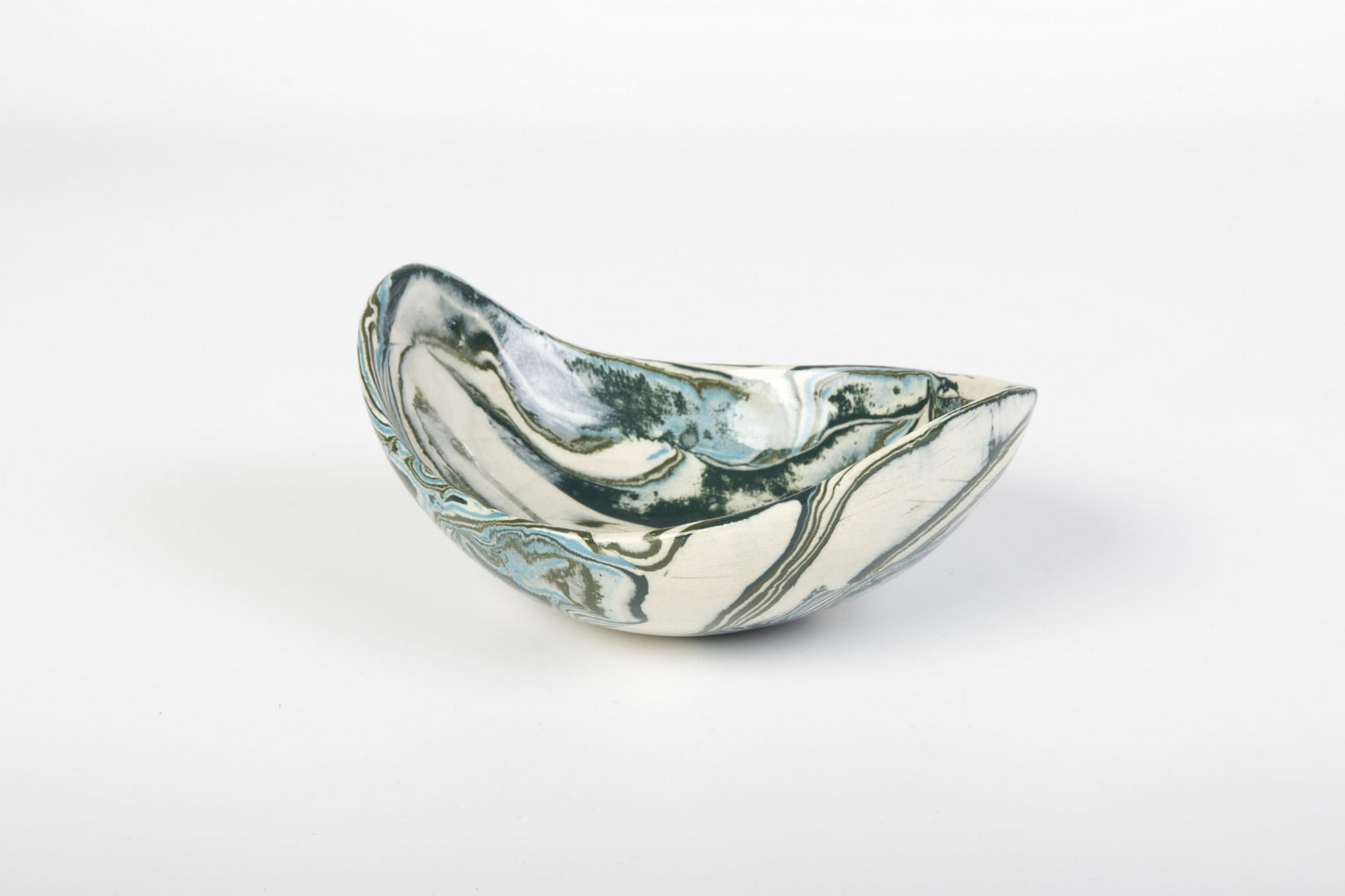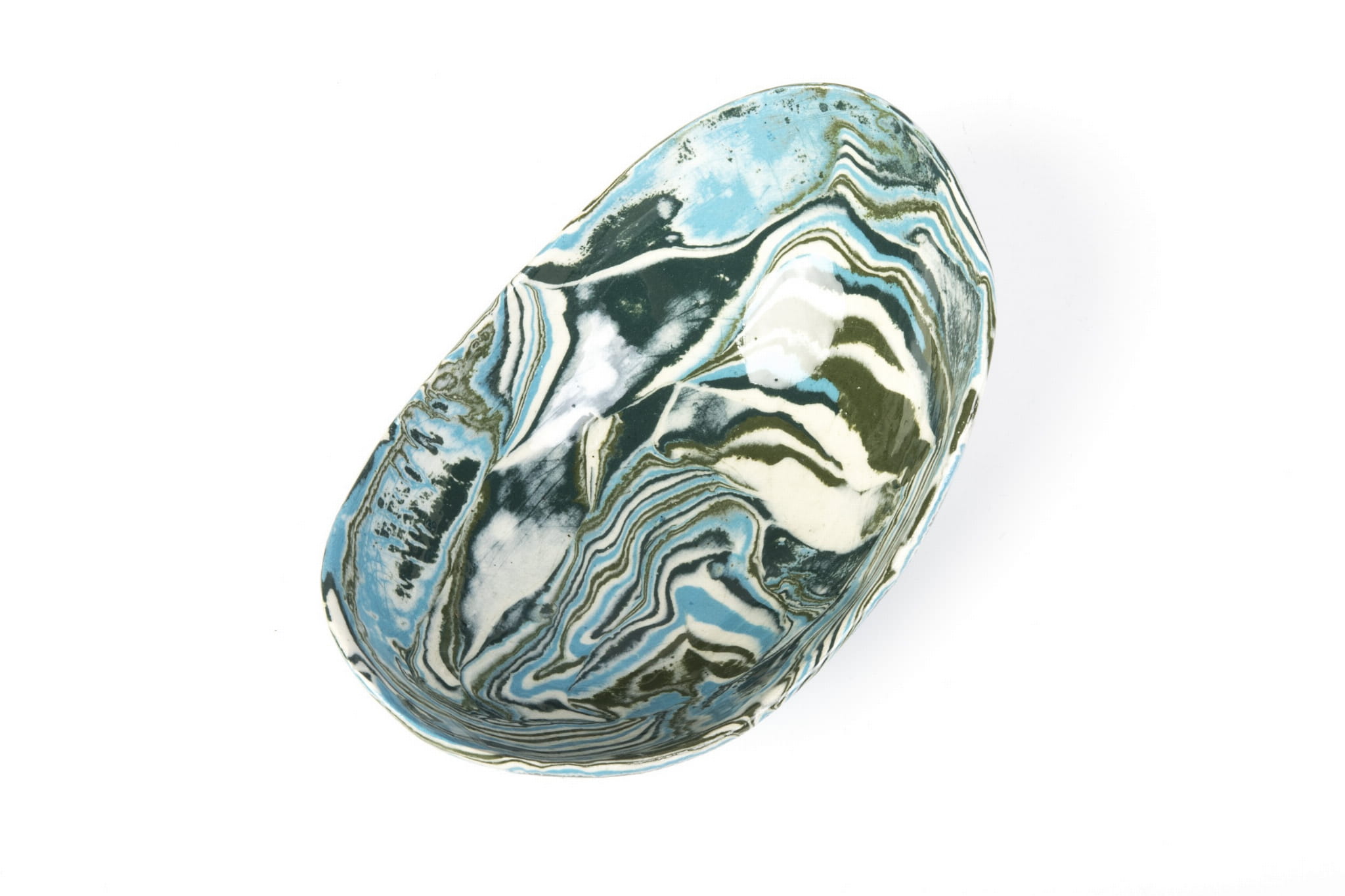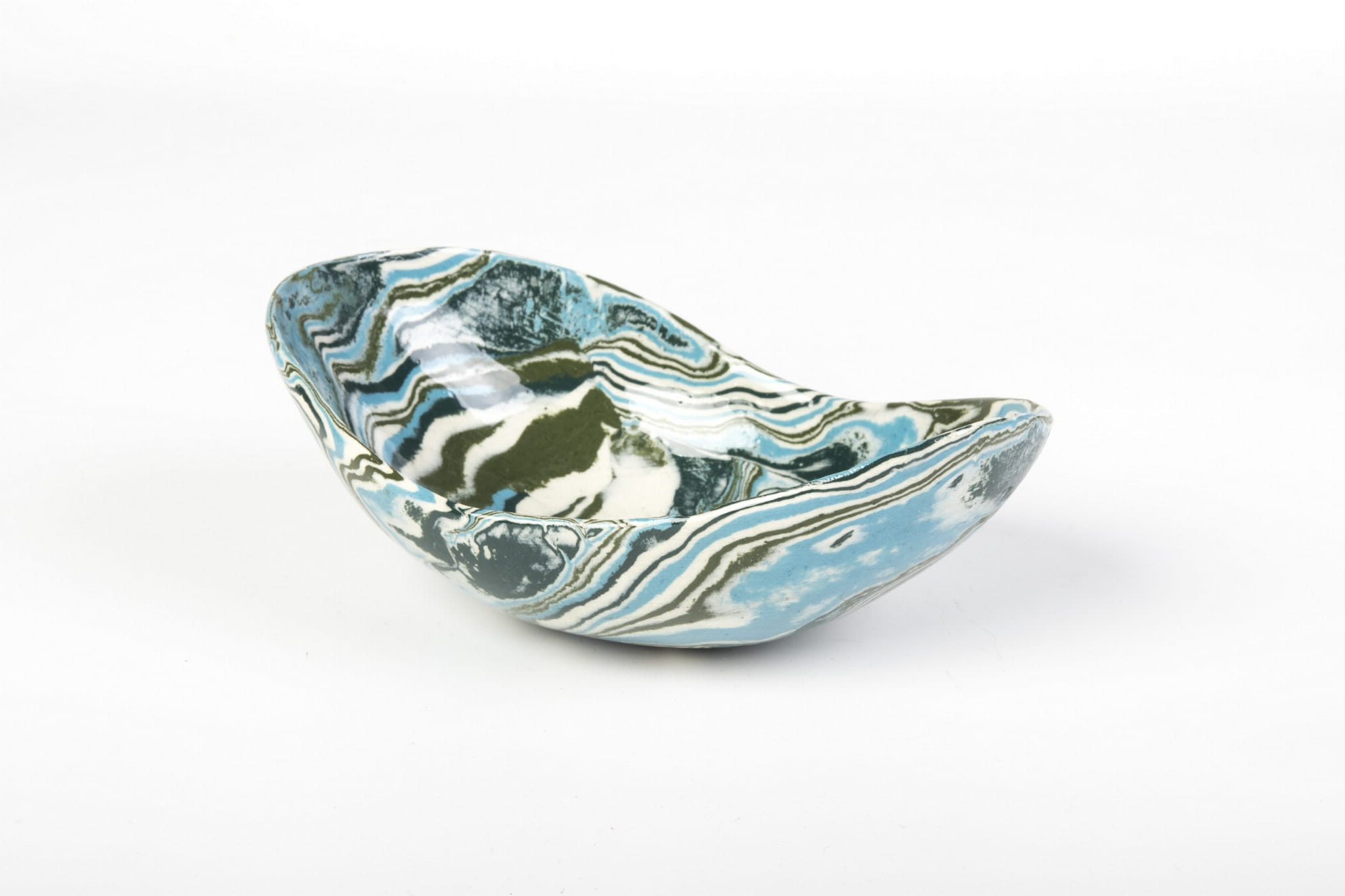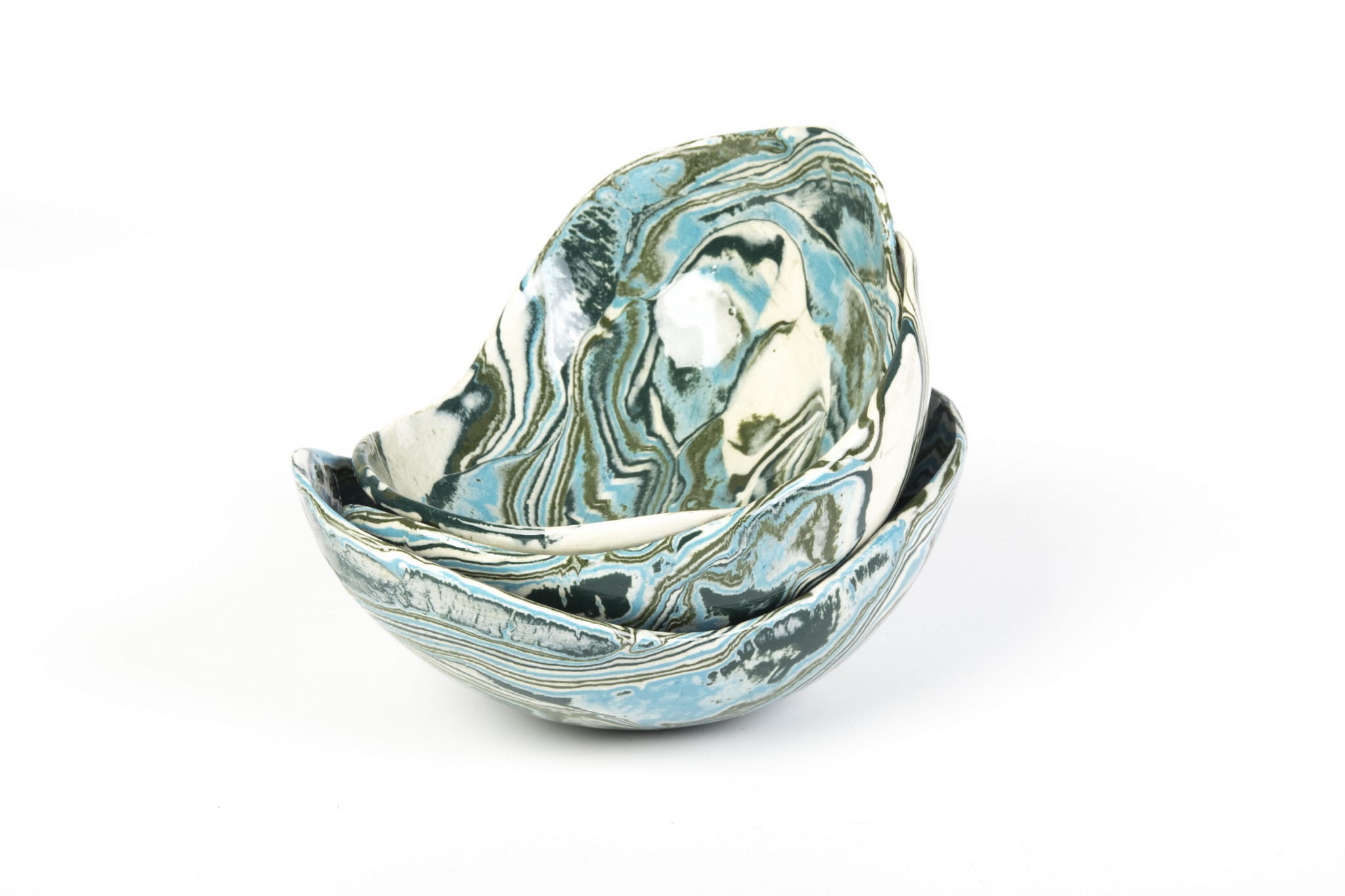 Miseczka handmade, wykonana w pracowni Skrawki Natury na południu Polski. Miseczka wykonana techniką ceramiki agatowej (ceramika marmurkowa, Nerikomi, Neriage). Jest to bardzo czasochłonna technika, w której ceramik rozpoczyna pracę od barwienia gliny wybranymi pigmentami, następnie ręcznie formuje naczynie. Kiedy ceramiczne naczynie wyschnie czas na szlifowanie, wypalanie w piecu, pokrywanie przezroczystym szkliwem i ponowne wypalanie. Cały proces produkcji zajmuje około 3 tygodni.