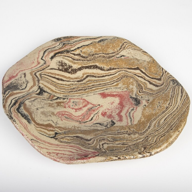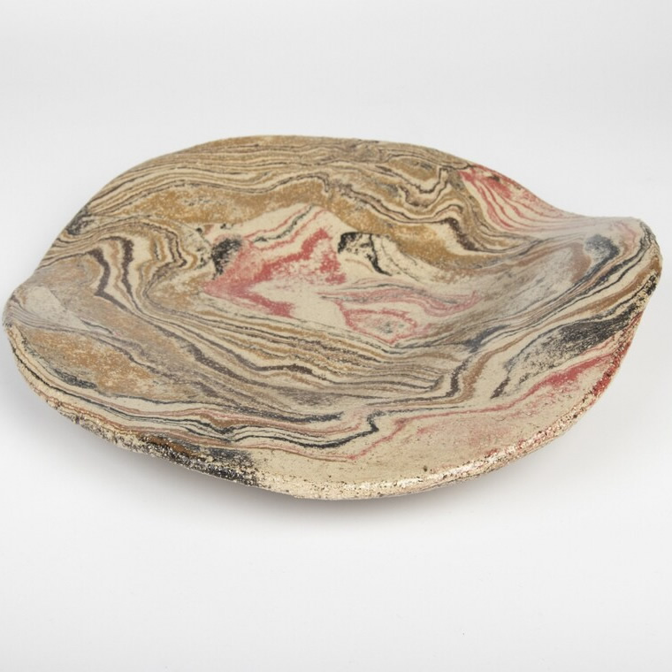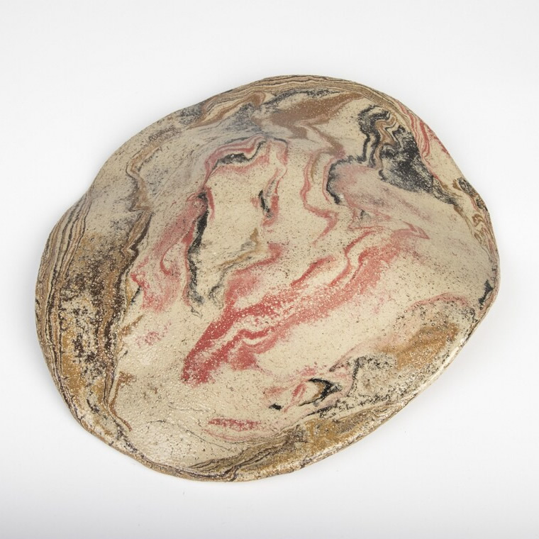Przedmiot jest wykonany techniką agatową (Nerikomi, marrmurkowa), polegającą na odpowiednim zmieszaniu kolorowych glin. Najpierw barwimy glinę za pomocą pigmentów na różne kolory, potem odpowiednio je łącząc - uzyskujemy niepowtarzalny wzór. Powierzchnia patery jest szorstka - zostałała wykonana z gliny o grubszym szamocie. Pokryta została przeźroczystym szkliwem, nadającym się do kontaktu z żywnością.