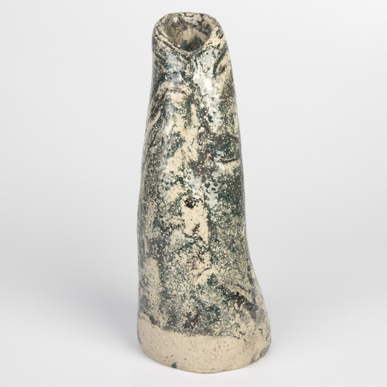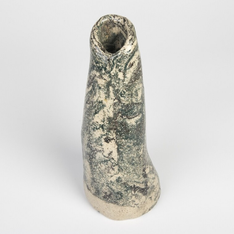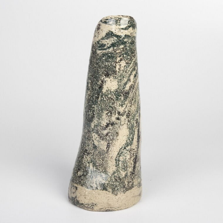 Wazon wykonany ręcznie techniką agatową (nerikomi, marmurkowa) przypomina swym wyglądem kamień. Zostały zmieszane 3 kolory - kremowy, czarny i grafitowo-zielony - uzyskując efekt marmuru.