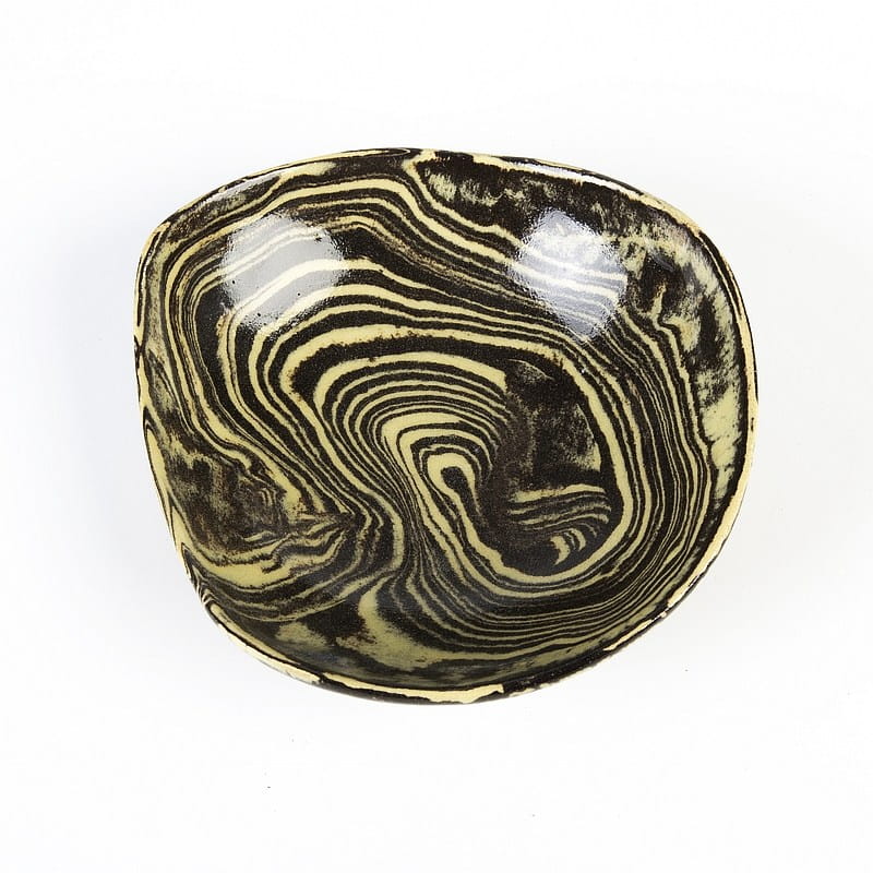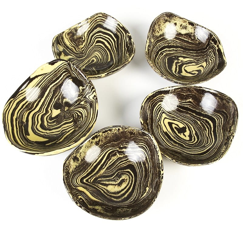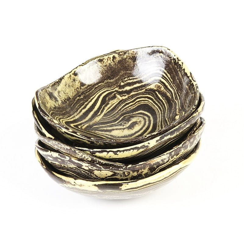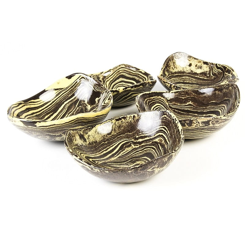 Małe miseczki ceramiczne, rękodzieło. Ceramika handmade, produkt polski. Dwukolorowe miseczki pokryte są szkliwem spożywczym. Wykonane zostały rzadką techniką ceramiki agatowej.