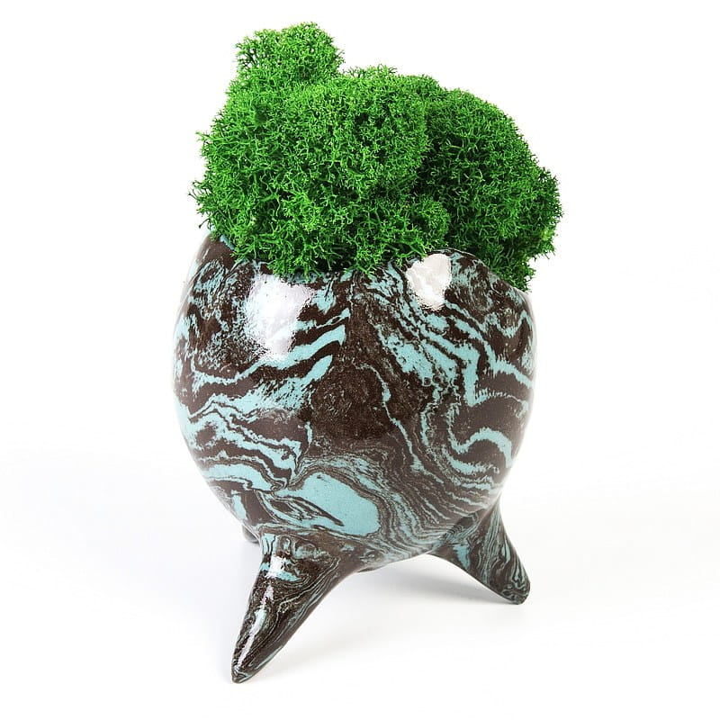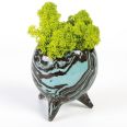 Ceramiczne naczynie o niewielkich rozmiarach (mieści się w dłoni) na trzech drobnych nóżkach. Możesz je wykorzystać jako osłonkę dla niewielkiego sukulenta lub kaktusa, możesz też wypełnić je mchem.