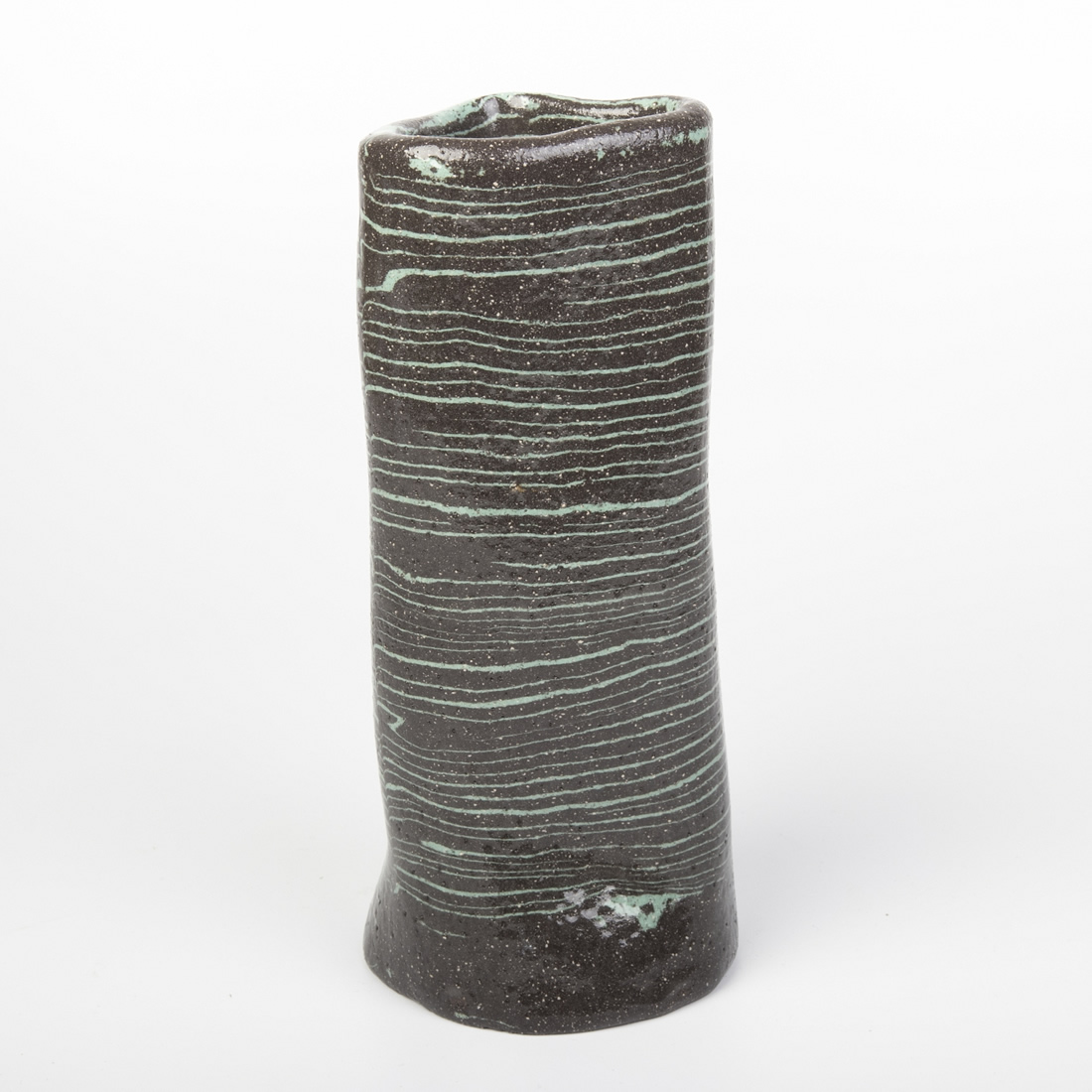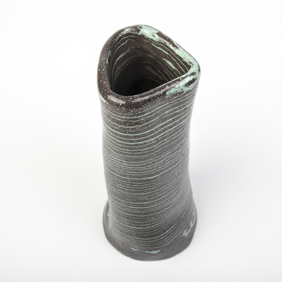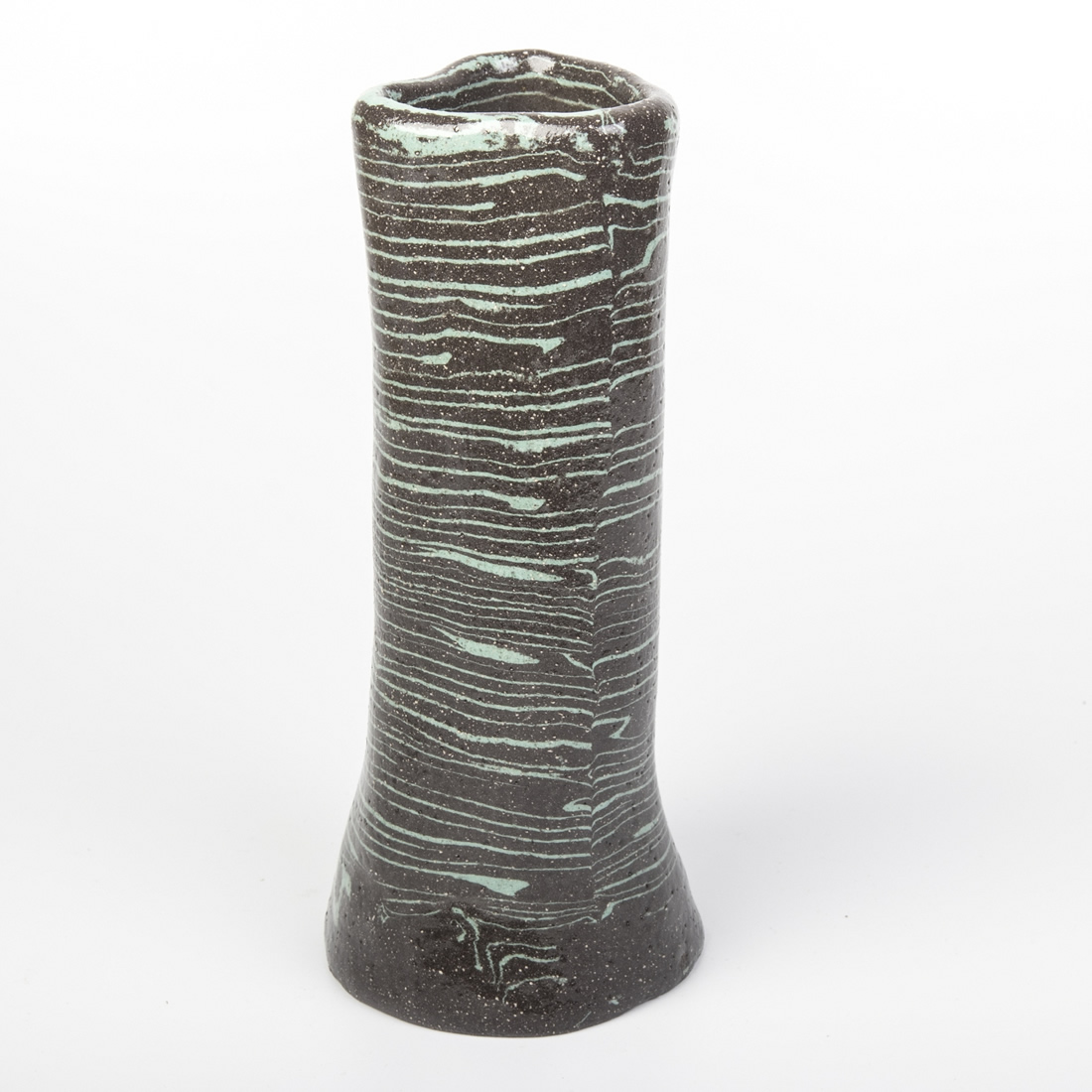 Ten produkt łączy w sobie elegancję i prostotę - połaczenie czarnego koloru z jasnoniebieskimi pasami. Dzięki ręcznemu kształtowaniu - uzyskaliśmy unikatowy kształt wazonu. Zastosowana technika nerikomi, polegająca na mieszaniu różnych kolorów glin dodatkowo podkreśliła niepowtarzalność i wyjątkowość tego wazonu.