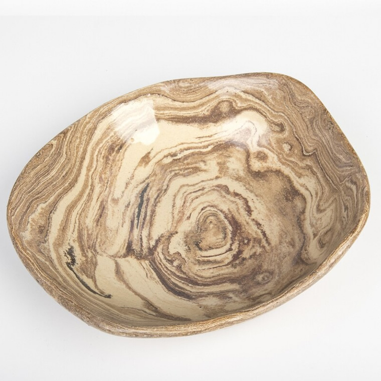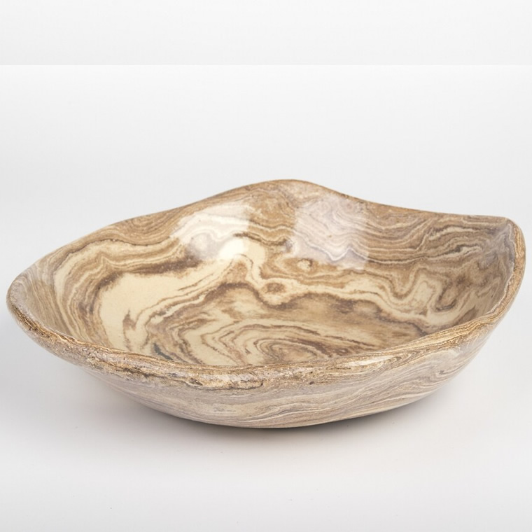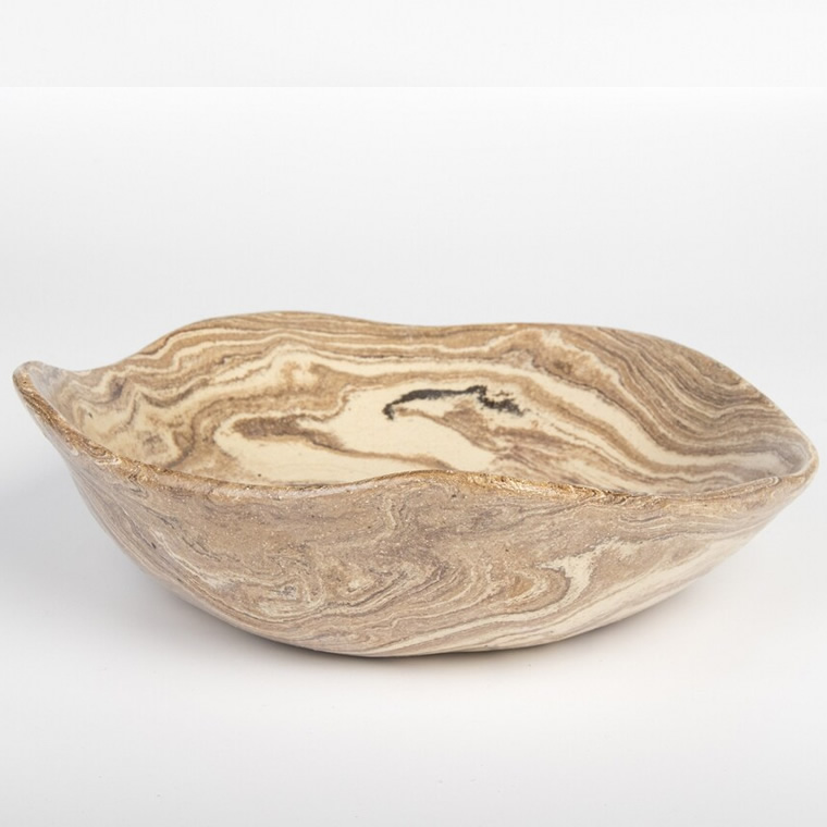 Misa ceramiczna, wykonana ręcznie - jest jedyna w swoim rodzaju! Nieregularny kształt produktu i niepowtarzalny wzór powodują, że nie ma takiej drugiej misy na świecie. Wykonana została z gliny marmurkowej w kolorze drewna, wypalona w temperaturze 1140 ℃ i pokryta szkliwem bezbarwnym. Szkliwo może mieć kontakt z żywnością, możemy na niej przechowywać np. owoce.