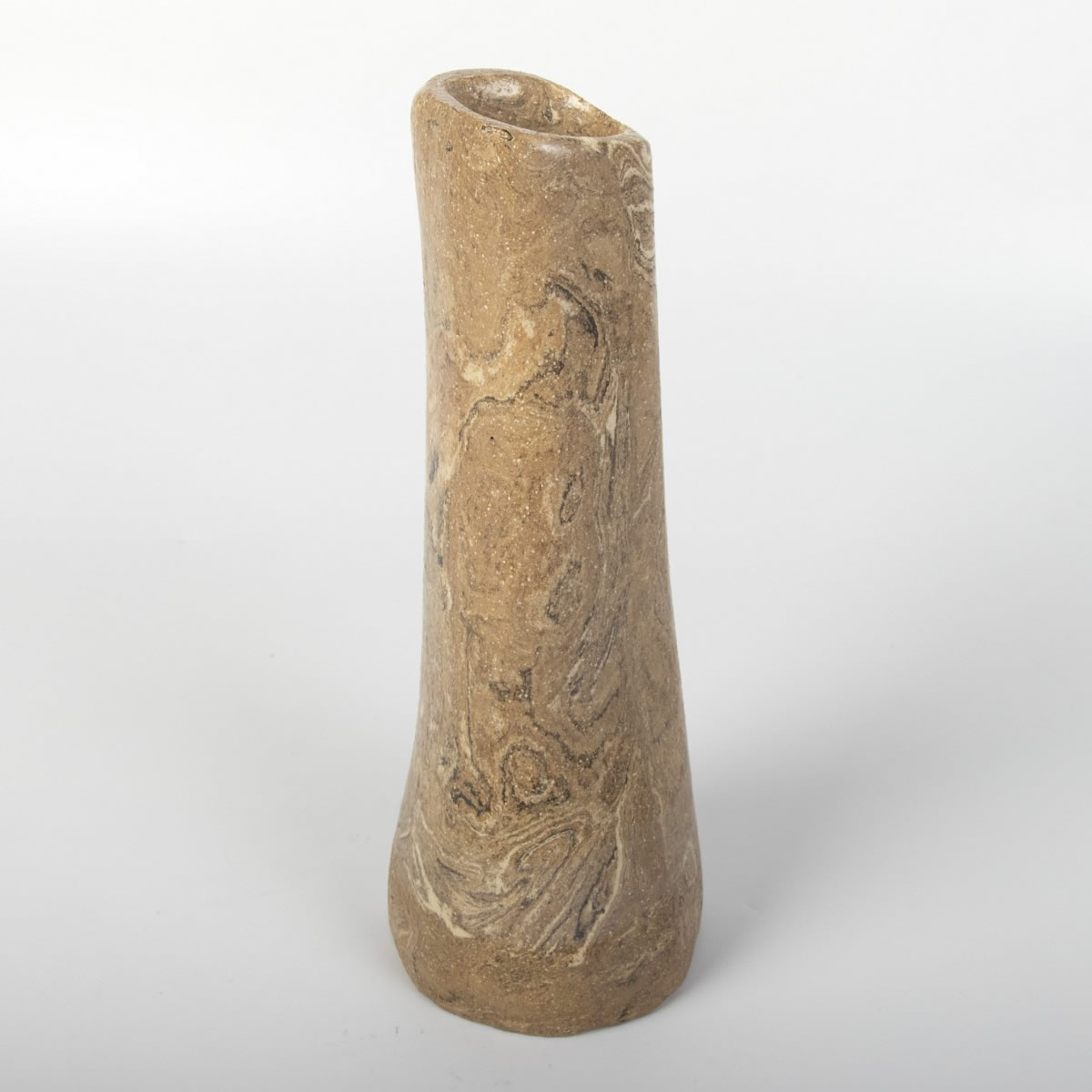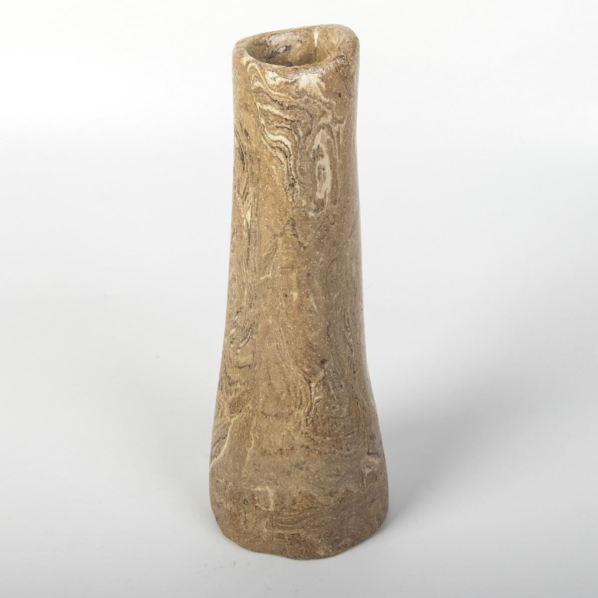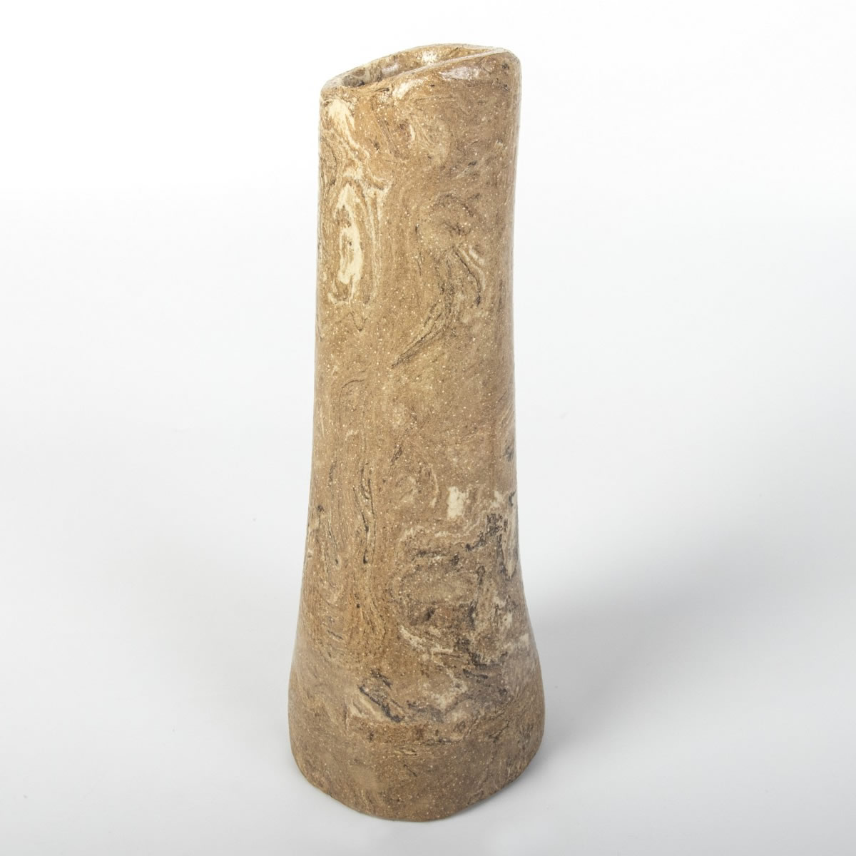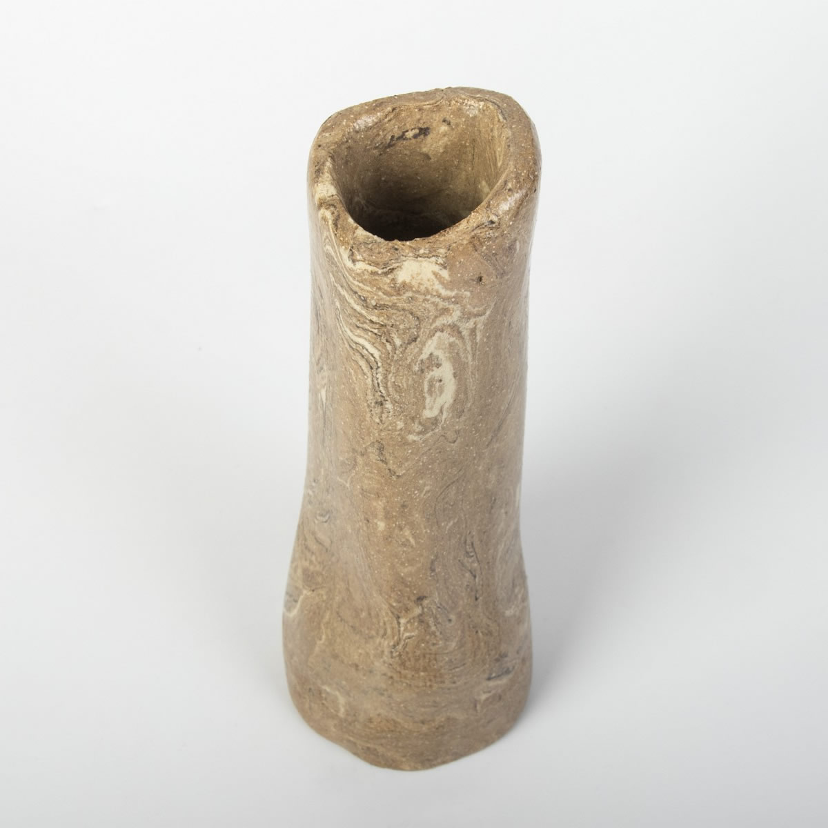 Ręcznie wykonany wazon ceramiczny o prostym kształcie. Dzięki odpowiednim zmieszaniu kolorowych glin - uzyskaliśmy drewnopodobny wzór. Załość została pokryta błyszczącym przeźroczystym szkliwem. Jedyny w swoim rodzaju wazon będzie świetnym prezentem dla osoby lubiącą naturę i niebanalne przedmioty w swoim otoczeniu.