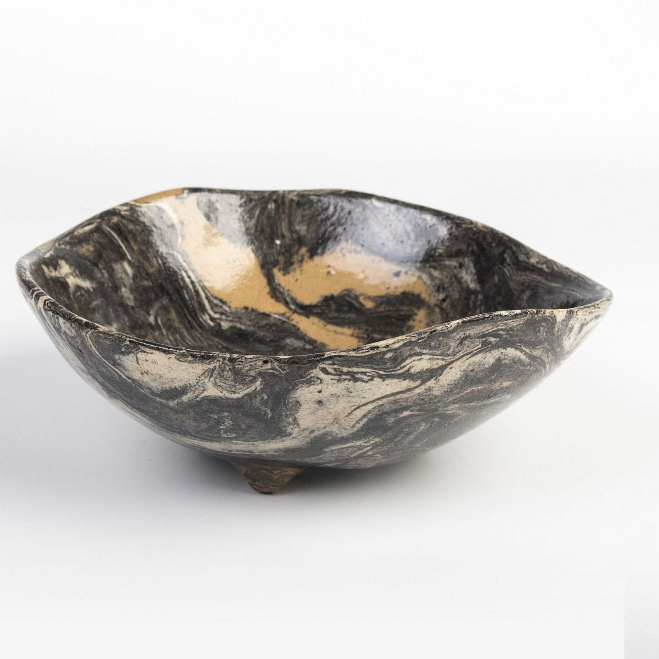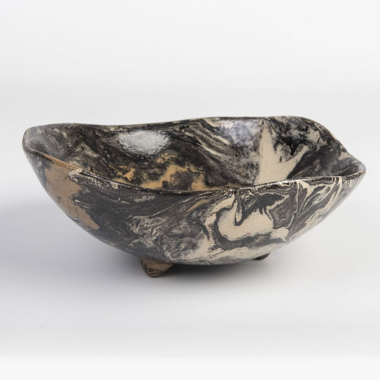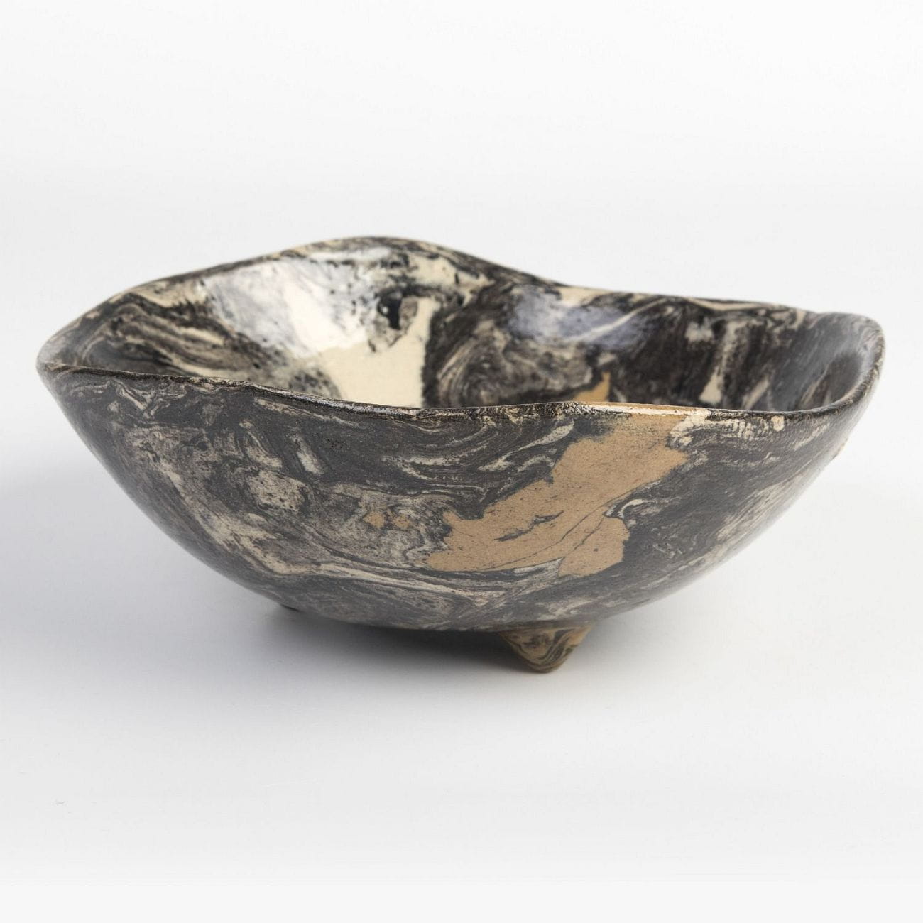 Ceramiczna misa lub patera, polskie rękodzieło ulepione jesienią 2021 w pracowni ceramicznej Skrawki Natury w Cieszynie. Technika, jaką wykorzystano w tworzeniu tego naczynia zwana jest ceramiką agatową/marmurkową i wywodzi się z Japonii. Jest to czasochłonna technika - cykl produkcji partii towaru zajmuje ok. 3-4 tygodniu.