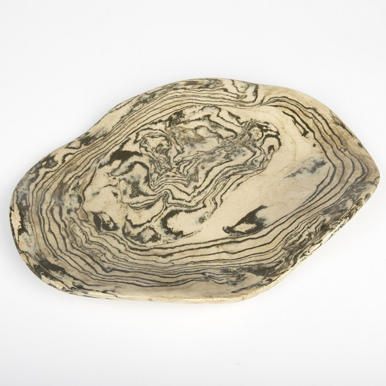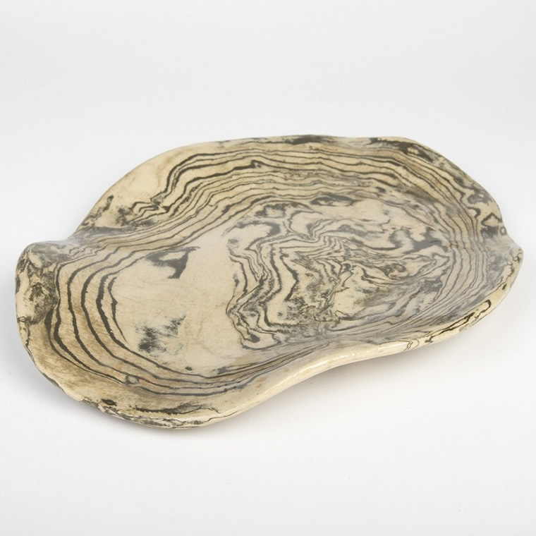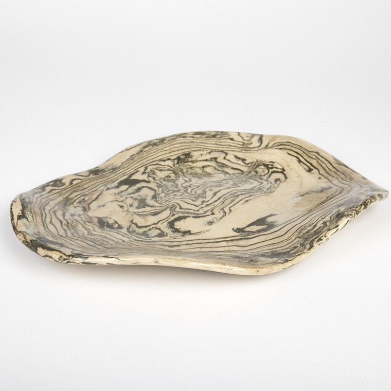 Agatowa patera ceramiczna, o nieregularnym, podłużnym kształcie.
