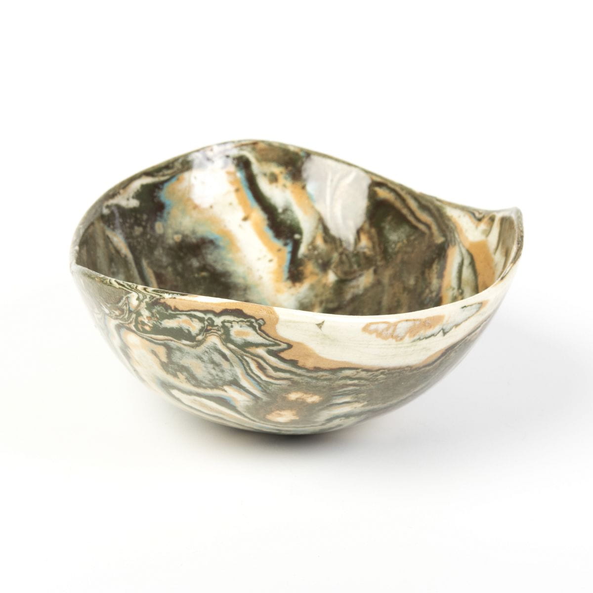 Ta miseczka została ręcznie ukształtowana z kompozycji zabarwionych pigmentami pasów gliny. Efekt końcowy przypomina marmur lub agat. Doskonale prezentuje się we wnętrzach zaprojektowanych w stylu wabi sabi, ale nie tylko. Każda z misek jest wyjątkowa. Rękodzieło utworzone w Polsce, inspirowane japońską ceramiką.