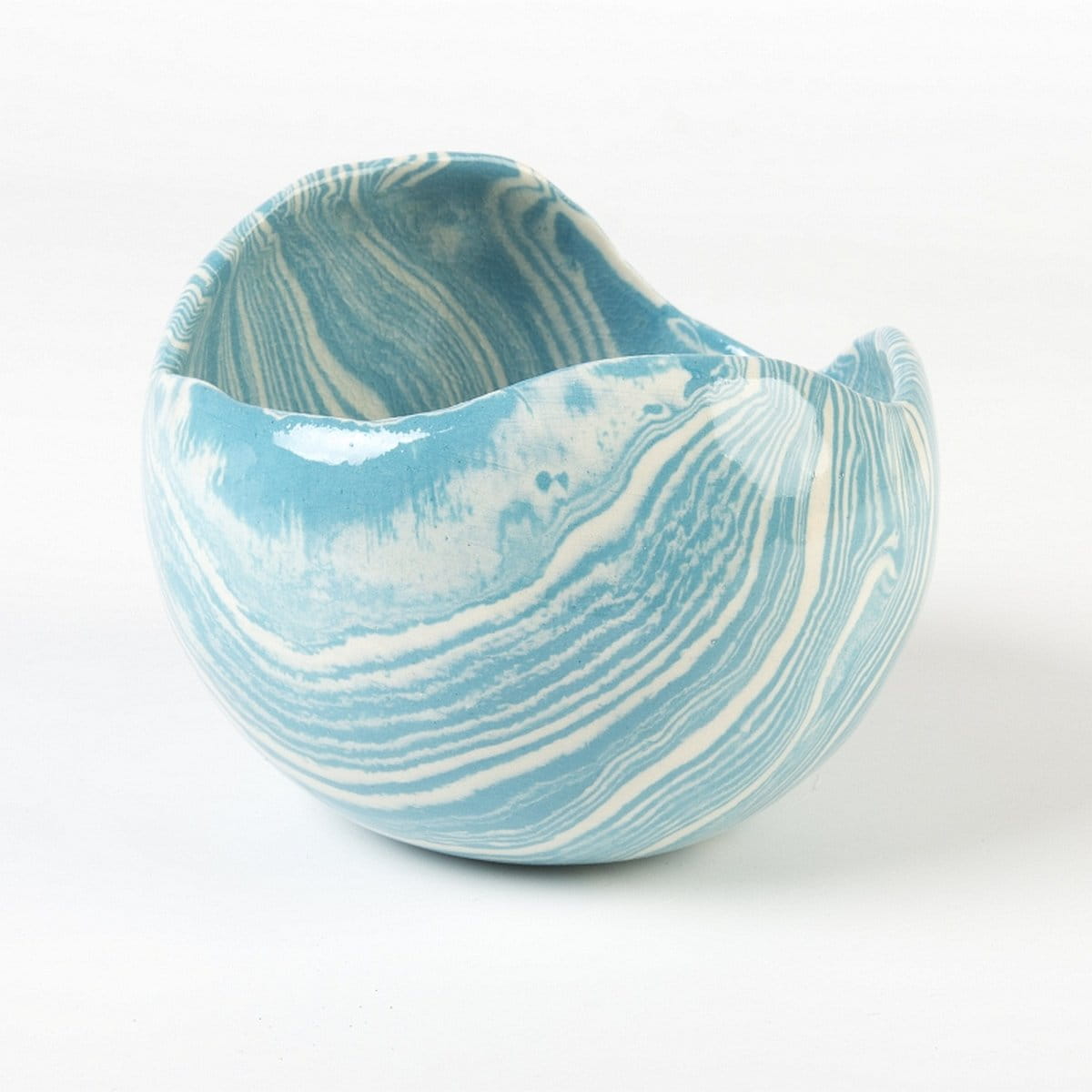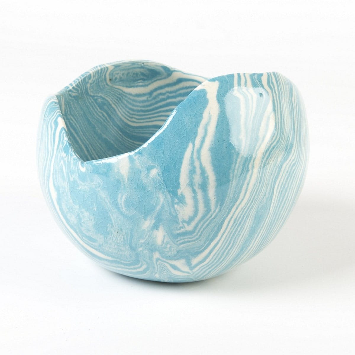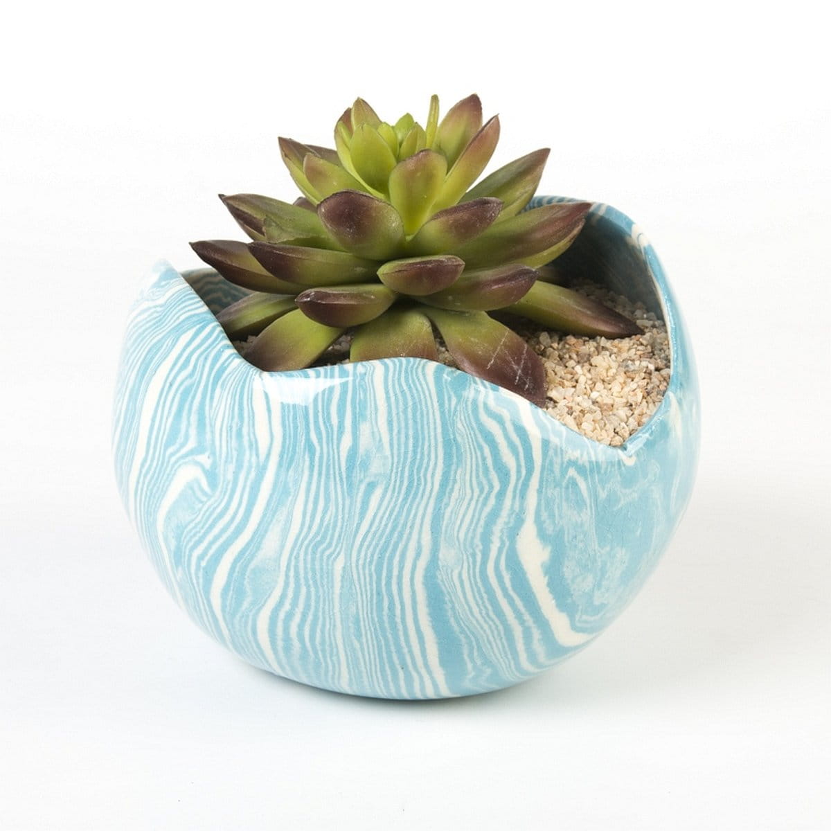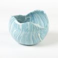 Ceramiczna osłonka uformowana ręcznie na balonie, spłaszczona od dołu, posiada lekką formę. Nadaje się na mech, sukulenty, ale także inne rośliny. Nie posiada dziurek. Wykonana rzadką techniką ceramiki agatowej (ceramika w japońskim stylu). Idealnie współgra z wnętrzami w stylu wabi-sabi, ale także boho i scandi. Wykonana w kolorach błękitu i bieli. Nieregularny kształt górnej krawędzi nadaje produktowi niepowtarzalności (dostępna tylko jedna sztuka, zdjęcia dotyczą dokładnie tego produktu, który wysyłamy).