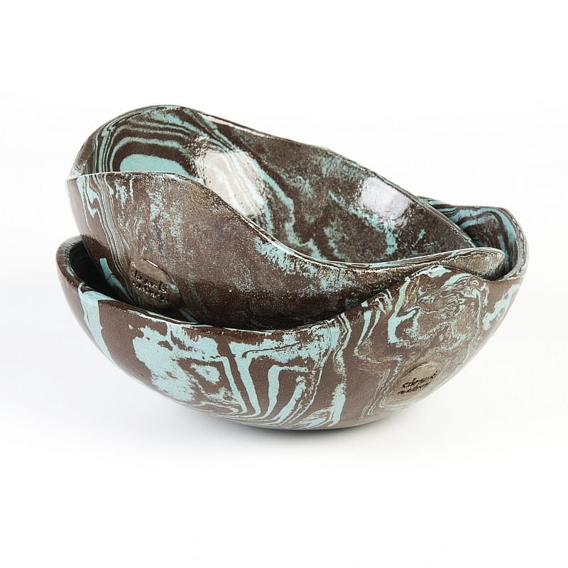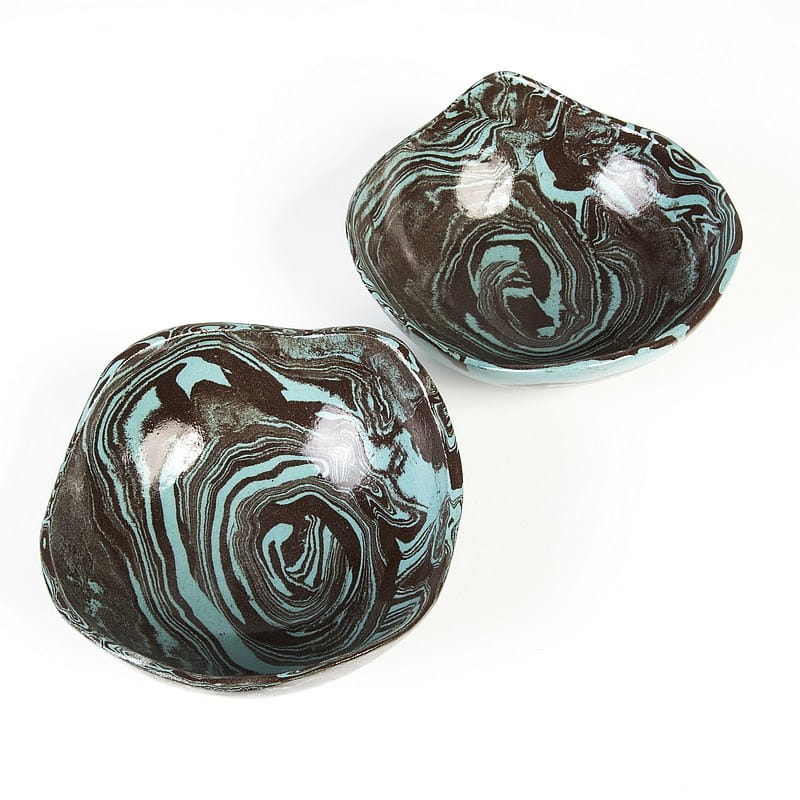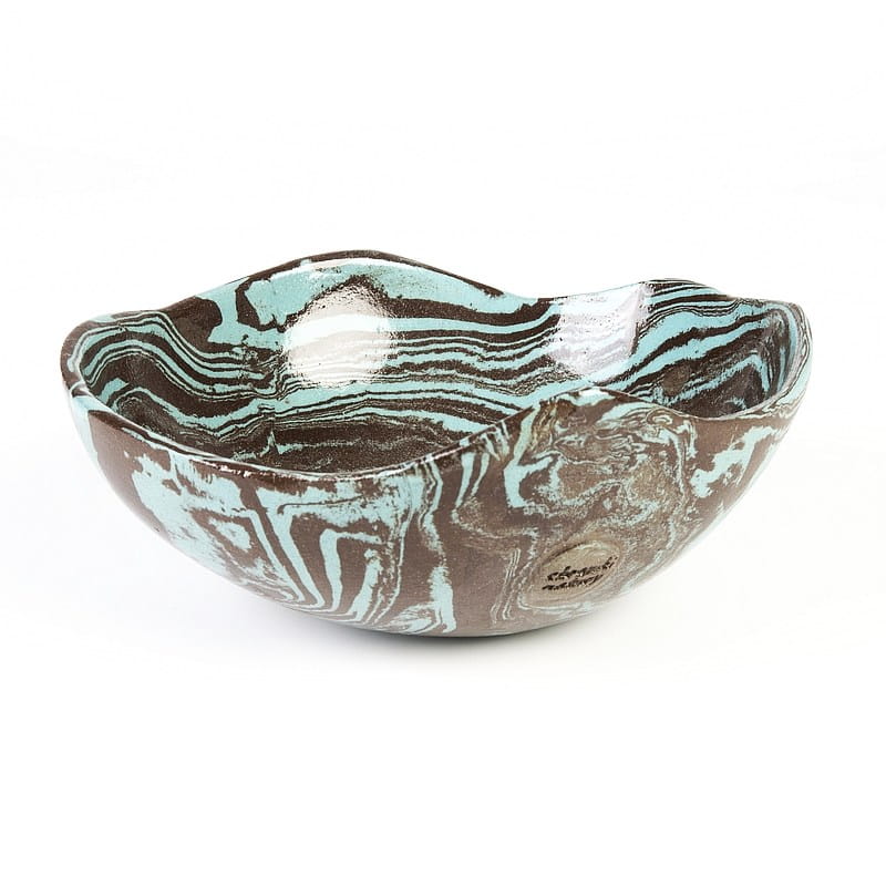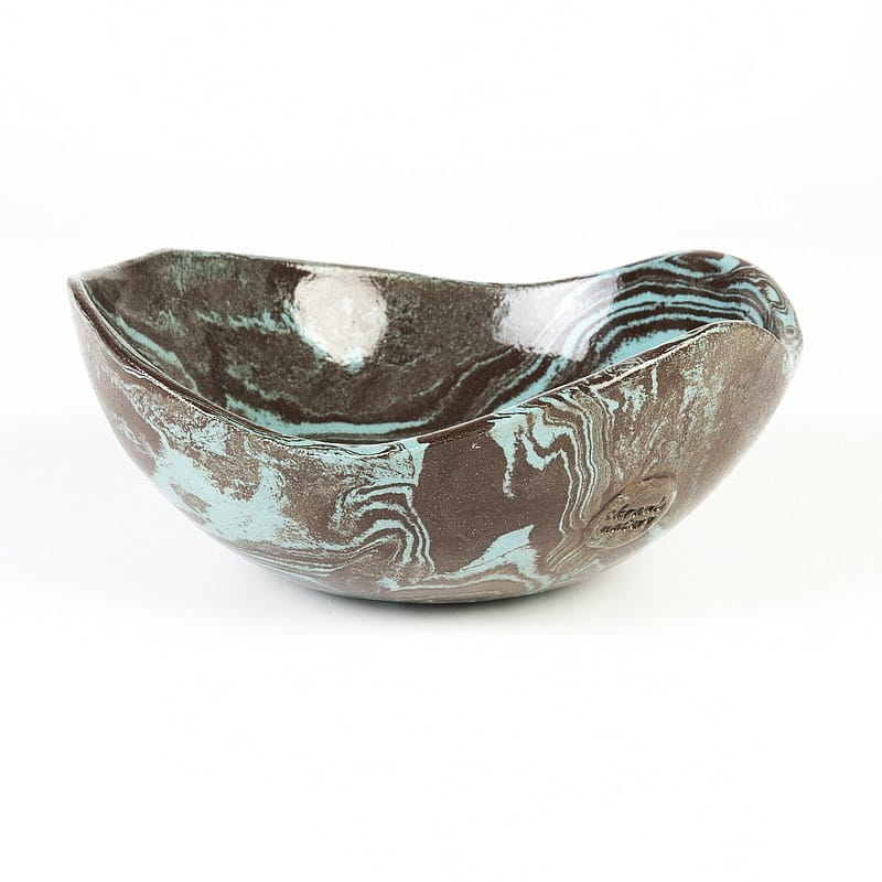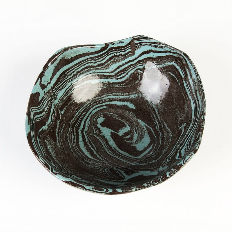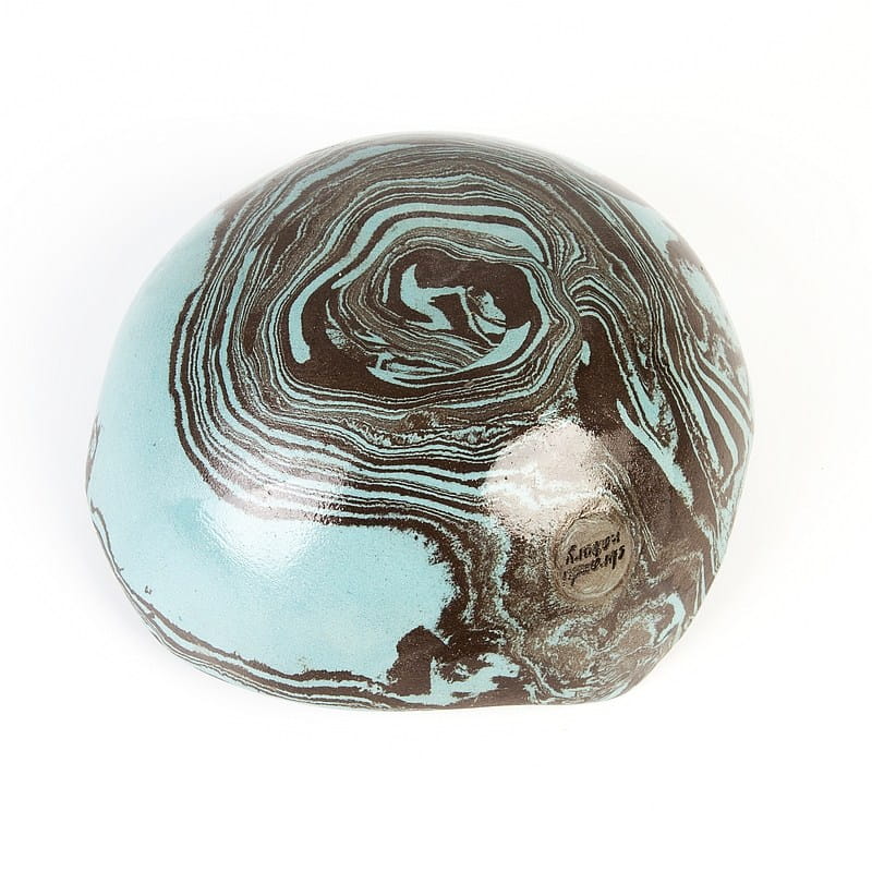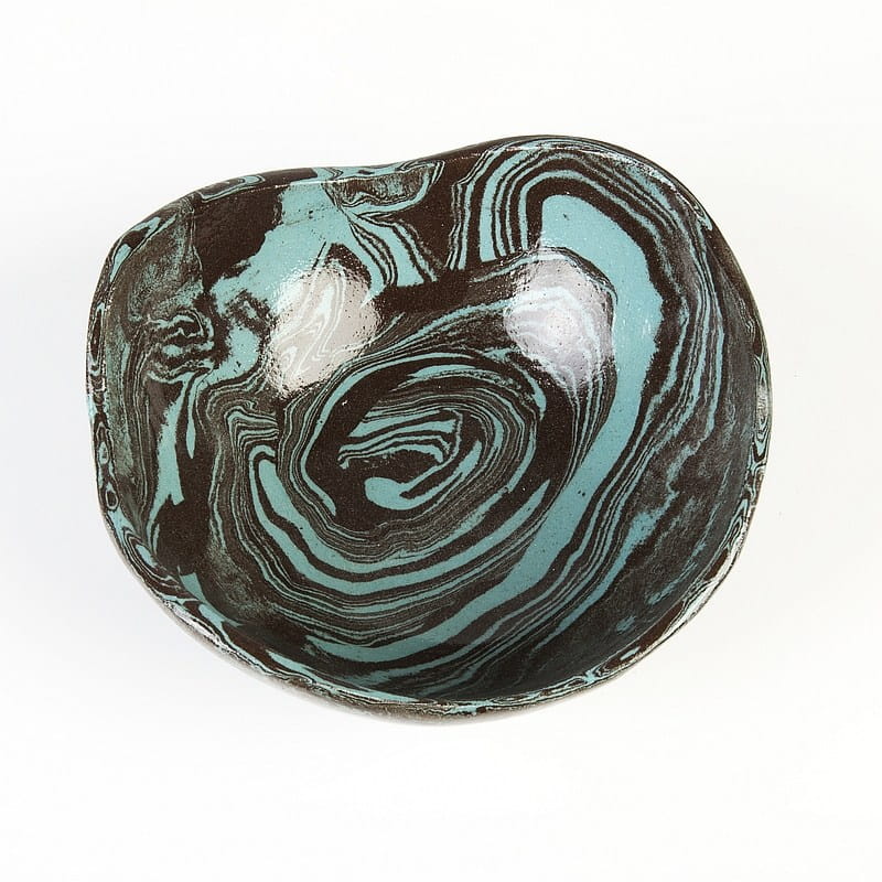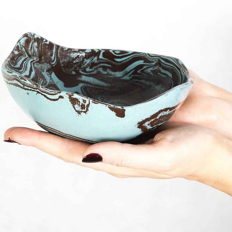 Ceramika rękodzieło: niebiesko-czarna miseczka wykonana rzadką techniką ceramiki agatowej. Nadaje się do celów spożywczych.