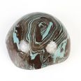 Miseczka posiada kulistą formę, została ukształtowana ręcznie na balonie, posiada nieregularne krawędzie. Od spodu lekko spłaszczona, przez co stabilnie stoi na płaskiej powierzchni. Produkt wykonany od podstaw ręcznie. Dostępny w kilku egzemplarzach, z których każdy to unikat (drobne różnice widoczne w kształcie krawędzi oraz w układzie agatowego wzoru). Wysyłamy losowo, jednak jeśli interesuje Cię konkretny produkt, skontaktuj się z nami mailowo: sklep@skrawkinatury.pl.