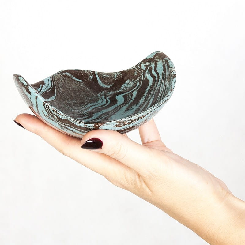 Ceramika handmade. Niebiesko-czarna miseczka wykonana rzadką i czasochłonna techniką ceramiki agatowej. Nadaje się do celów spożywczych.