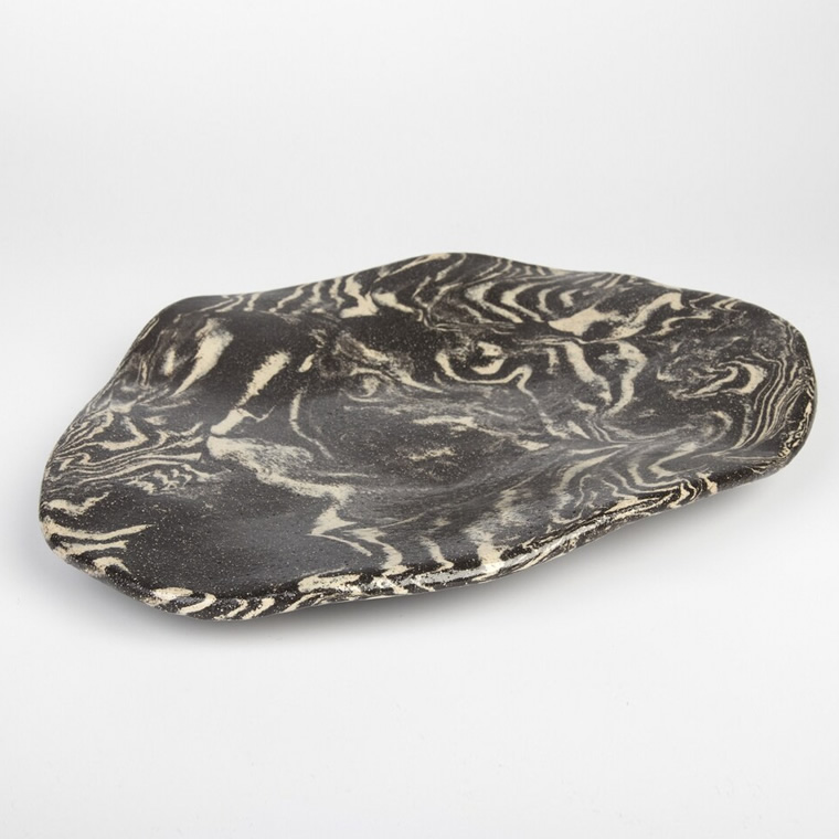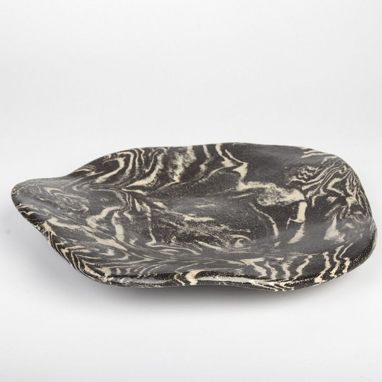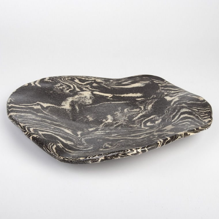 Zastosowanie techniki agatowej i ręczne ukształtowanie patery podkreśla jej unikalność.