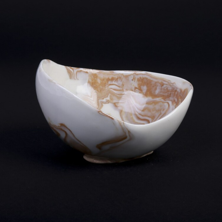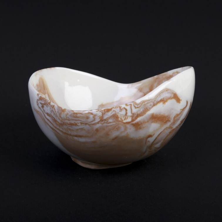 Porcelanowa miska agatowa wykonana ręcznie. Dzięki zastosowaniu techniki NERIKOMI (agatowej), polegającej na odpowiednim mieszaniu kolorowych kawałków porcelany - uzyskaliśmy niepowtarzalny, marmurkowy efekt.