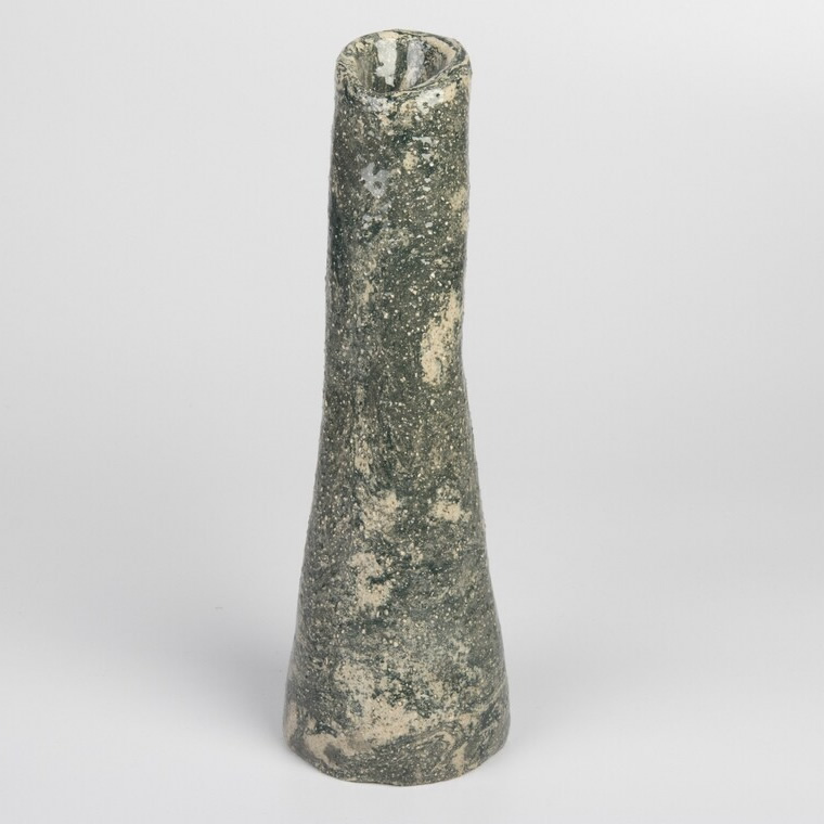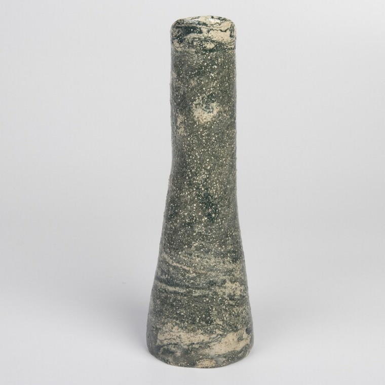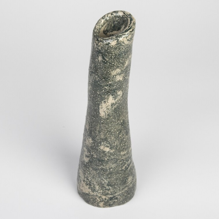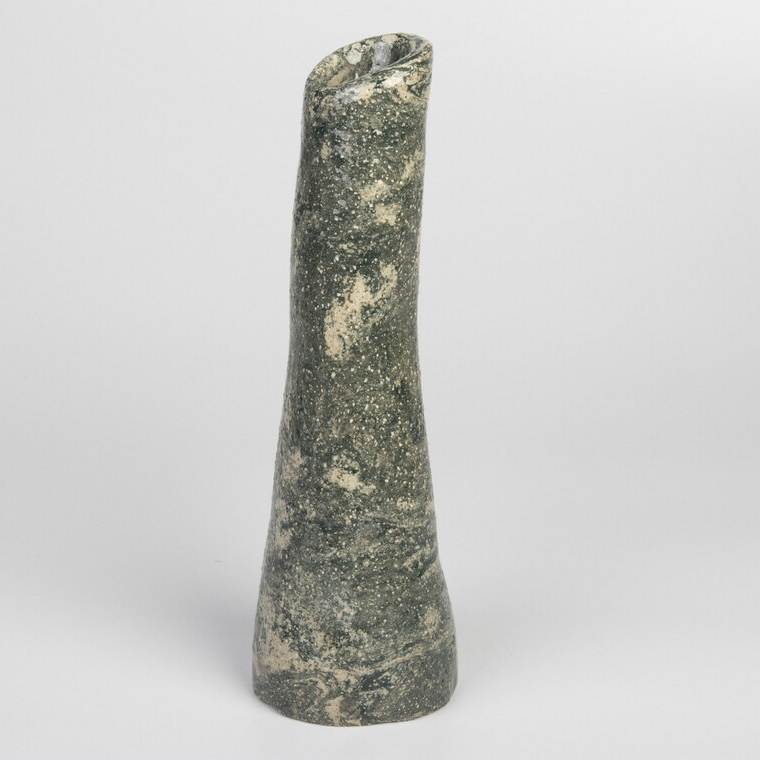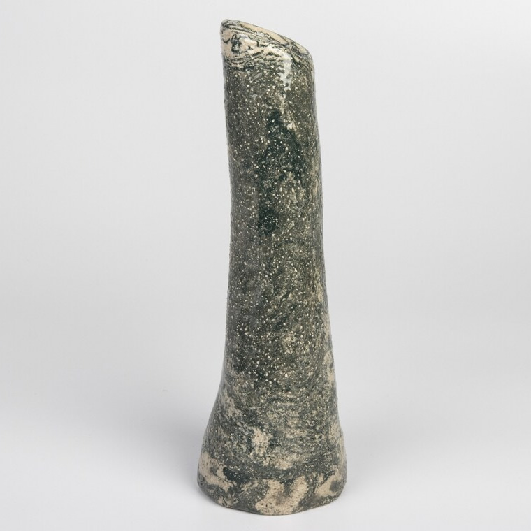 Ręcznie wykonany wazon techniką agatową. Odpowiednio została zmieszana glina kremowa z gliną w kolorze grafitowo-zieloną. Uzyskaliśmy w ten sposób marmurkowy wzór nawiązujący do struktury i koloru skał. Unikalny wazon będzie świetnym prezentem dla osoby kochającą oryginalność i wyjątkowość.