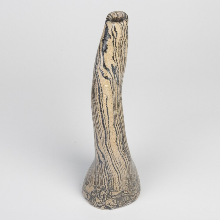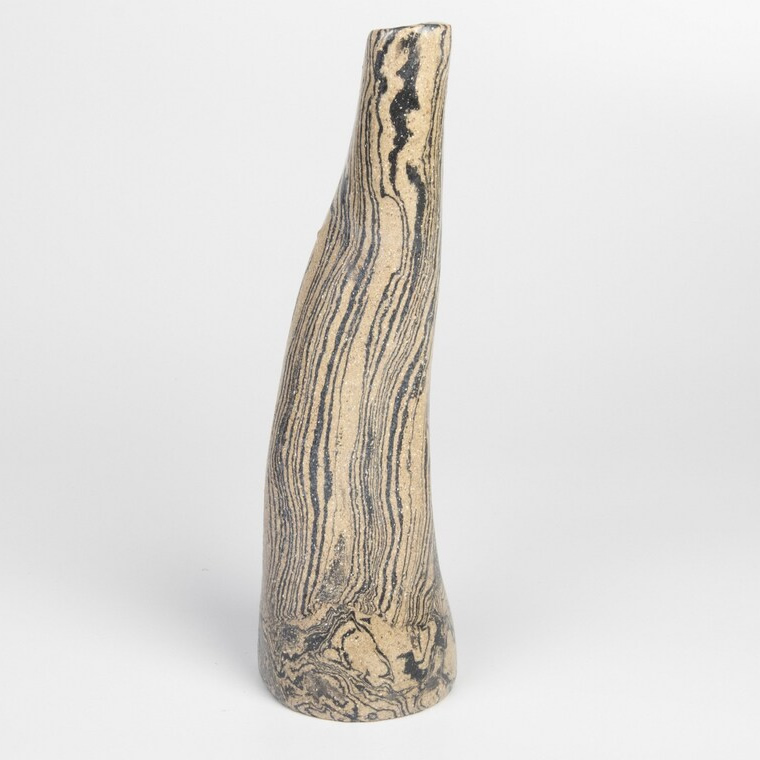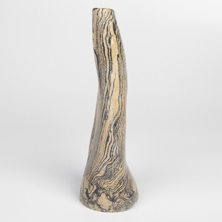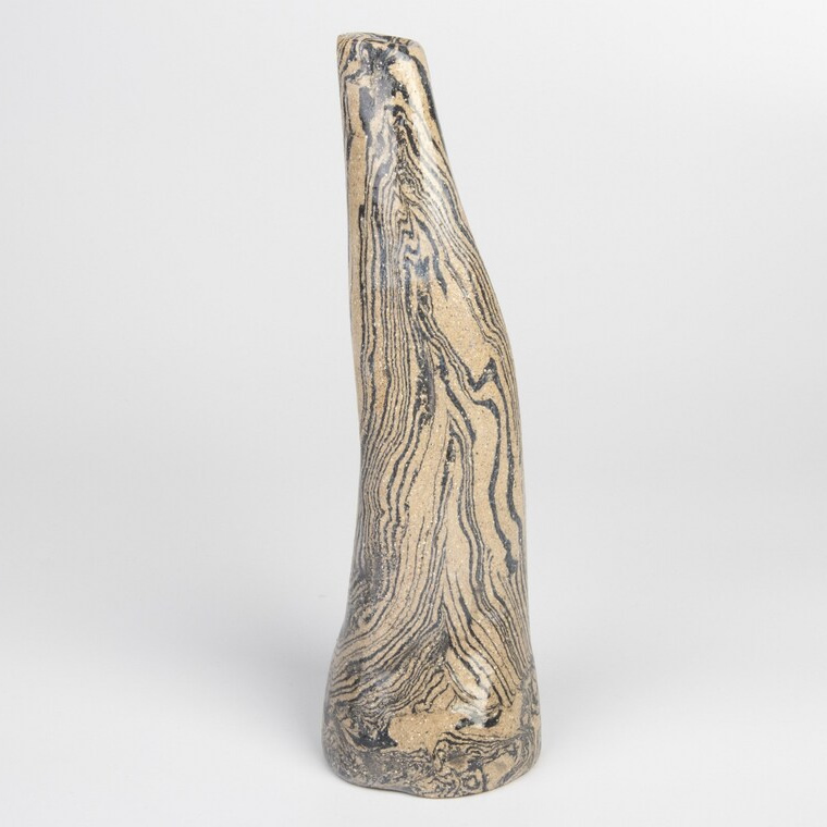 Ręcznie wykonany wazon ceramiczny o smukłym kształcie. Produkt wykonany techniką agatową (marmurkową, Nerikomi), polegającą na odpowiednim mieszaniu kolorowych glin. Niesymetryczny kształ i niepowtarzalny wzór sprawiają, że wazon jest unikalny i wyjątkowy. Swoim wyglądem, struktuą nawiązuje do natury, do formacji skalnych.