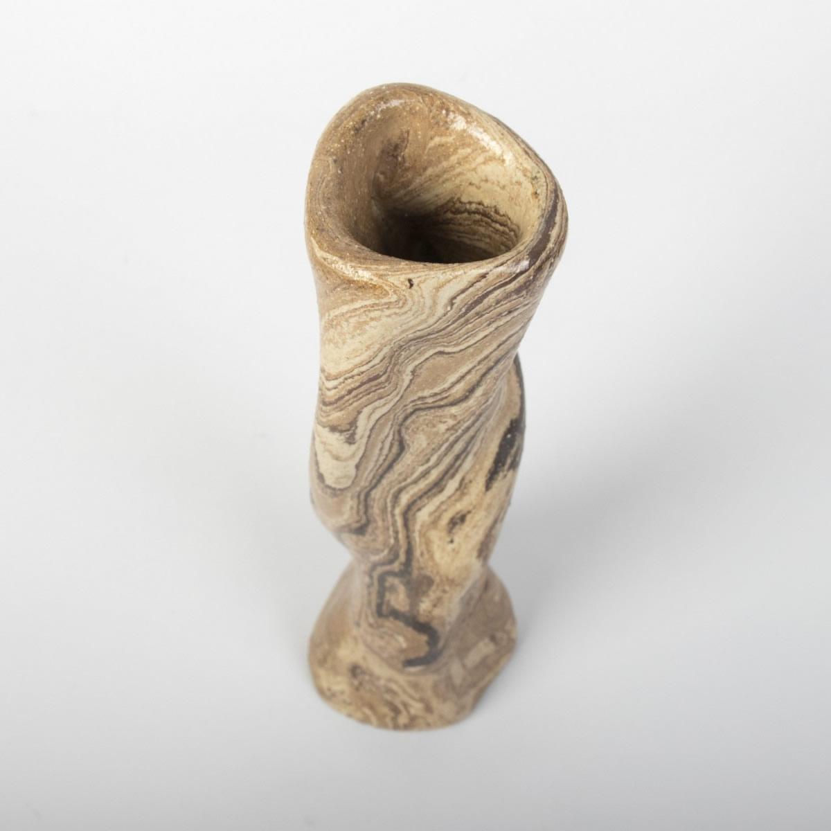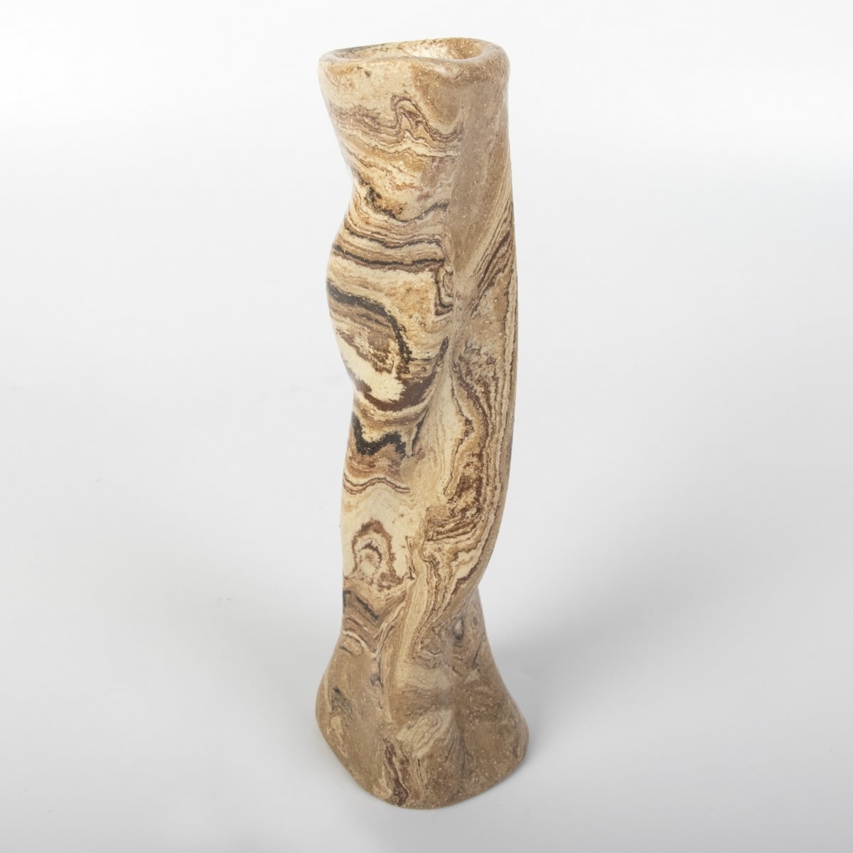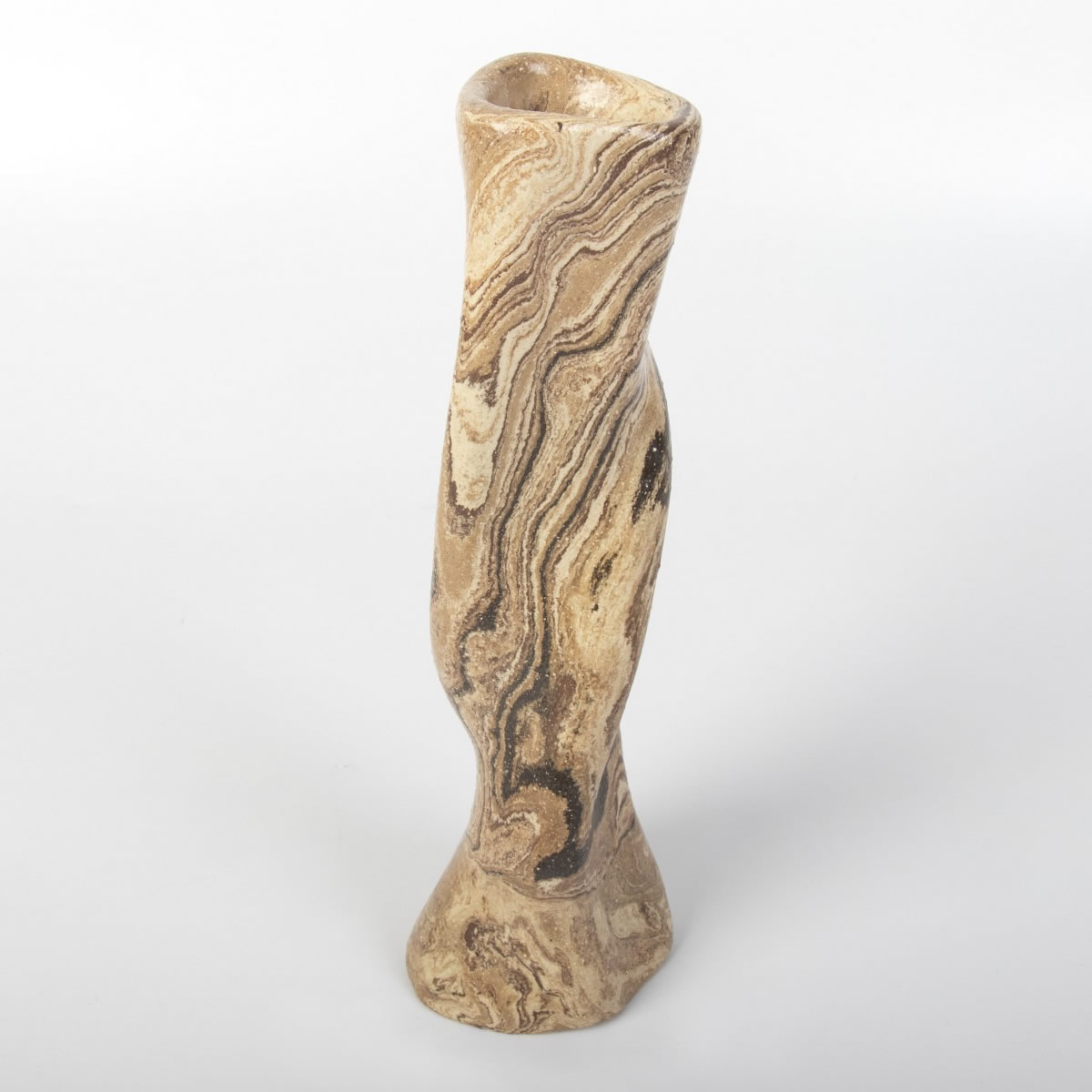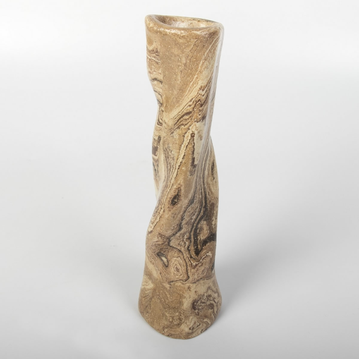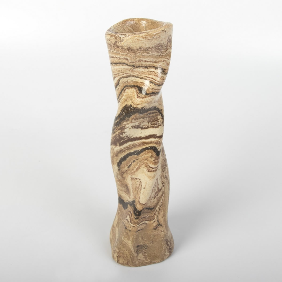 Ręcznie wykonany wazon ceramiczny o ciekawej, "pokręconej" formie. Kształt i kolor przedmiotu nawiązuje do otaczającej nas natury. Wazon w całości został pokryty błyszczącym szkliwem przeźroczystym.