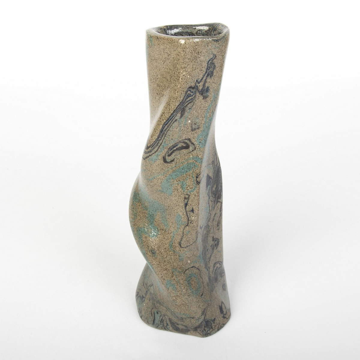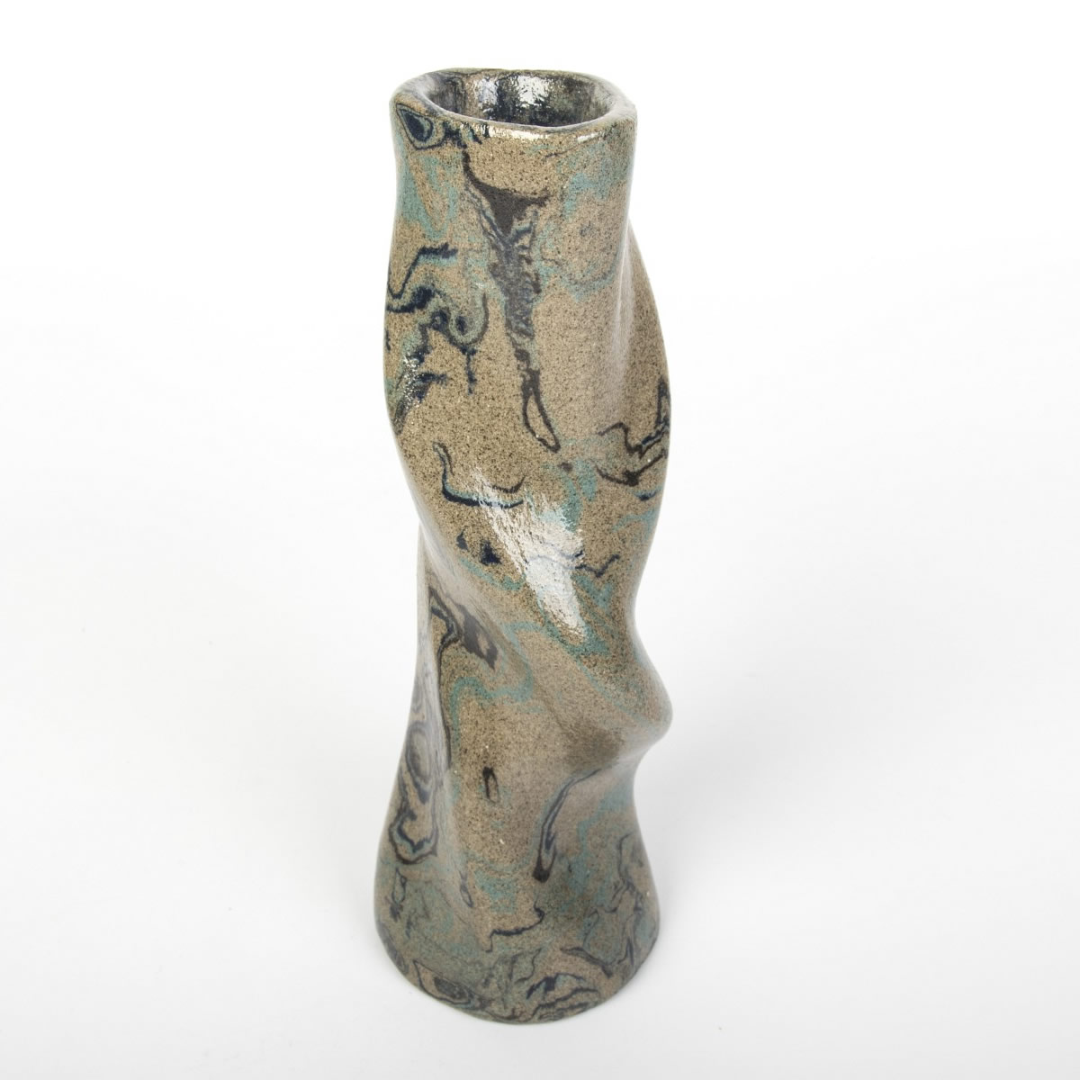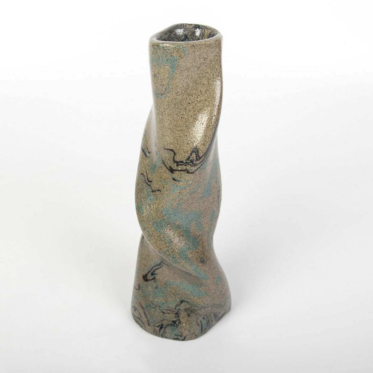 Wazon o spiralnej formie, wykonany ręcznie z zastosowaniem techniki agatowej (marmurkowej, Nerikomi), powstał poprzez precyzyjne połączenie kolorowych glin, co zaowocowało stworzeniem niezwykłego wzoru marmurkowego. Zarówno zewnętrzna, jak i wewnętrzna część wazonu zostały pokryte błyszczącym, przezroczystym szkliwem.