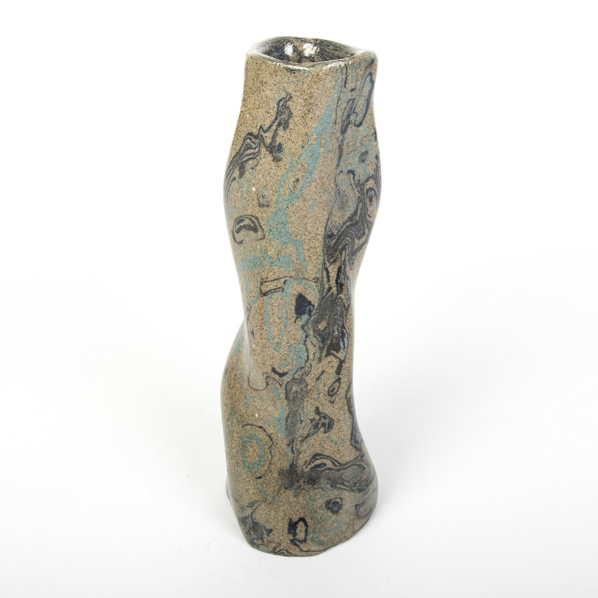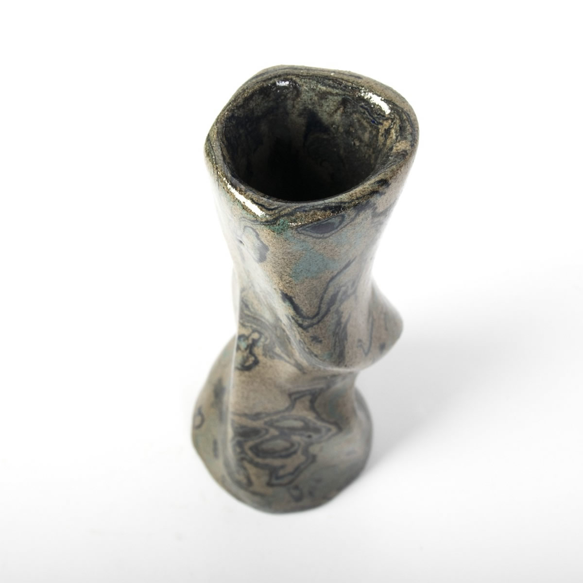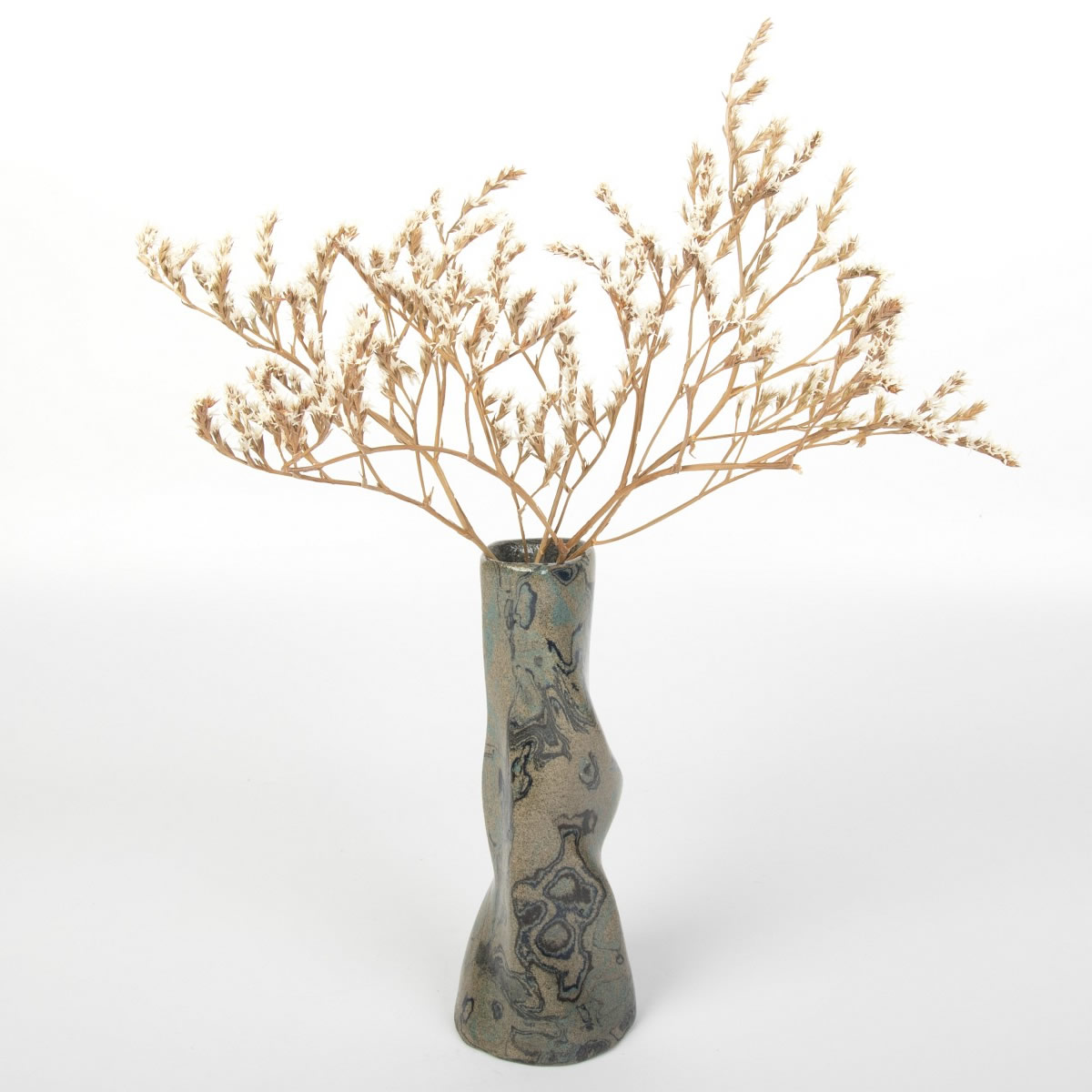 Wazon o spiralnej formie, wykonany ręcznie z zastosowaniem techniki agatowej (marmurkowej, Nerikomi), powstał poprzez precyzyjne połączenie kolorowych glin, co zaowocowało stworzeniem niezwykłego wzoru marmurkowego. Zarówno zewnętrzna, jak i wewnętrzna część wazonu zostały pokryte błyszczącym, przezroczystym szkliwem.