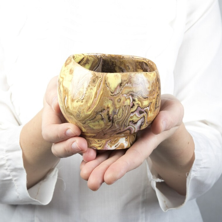 Uniwersalny produkt ceramiczny, wykonany ręcznie techniką agatową. Technika ta polega na odpowiednim połączeniu różnokolorowych glin. Jej gładka powierzchnia została pokryta transparentnym i błyszczącym szkliwem, podkręślającym barwy. Szkliwo nadaje się do kontaktu z żywnością.