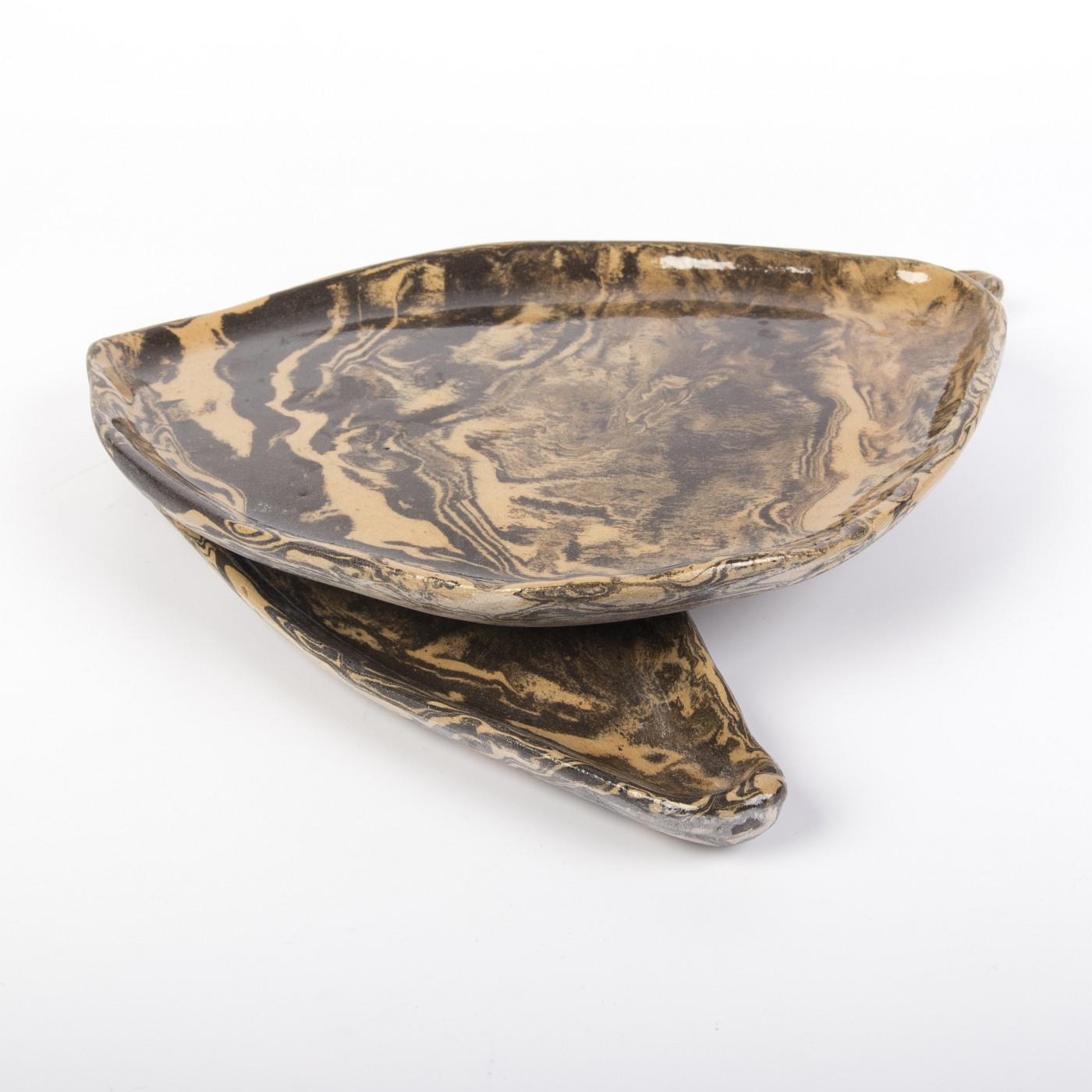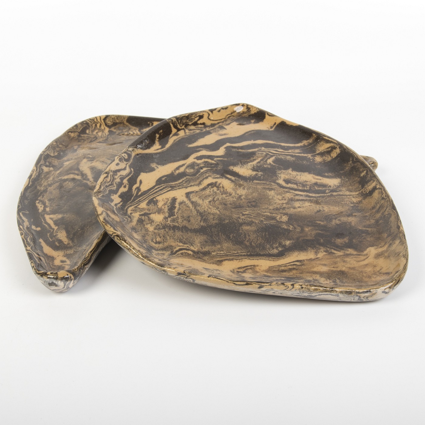 Zestaw dwóch ręcznie wykonanych półmisków ceramicznych w ciepłych odcieniach brązu to idealne połączenie funkcjonalności i naturalnego designu. Nieregularne kształty każdego półmiska nadają im unikalny charakter, podkreślając piękno tradycyjnego rzemiosła.