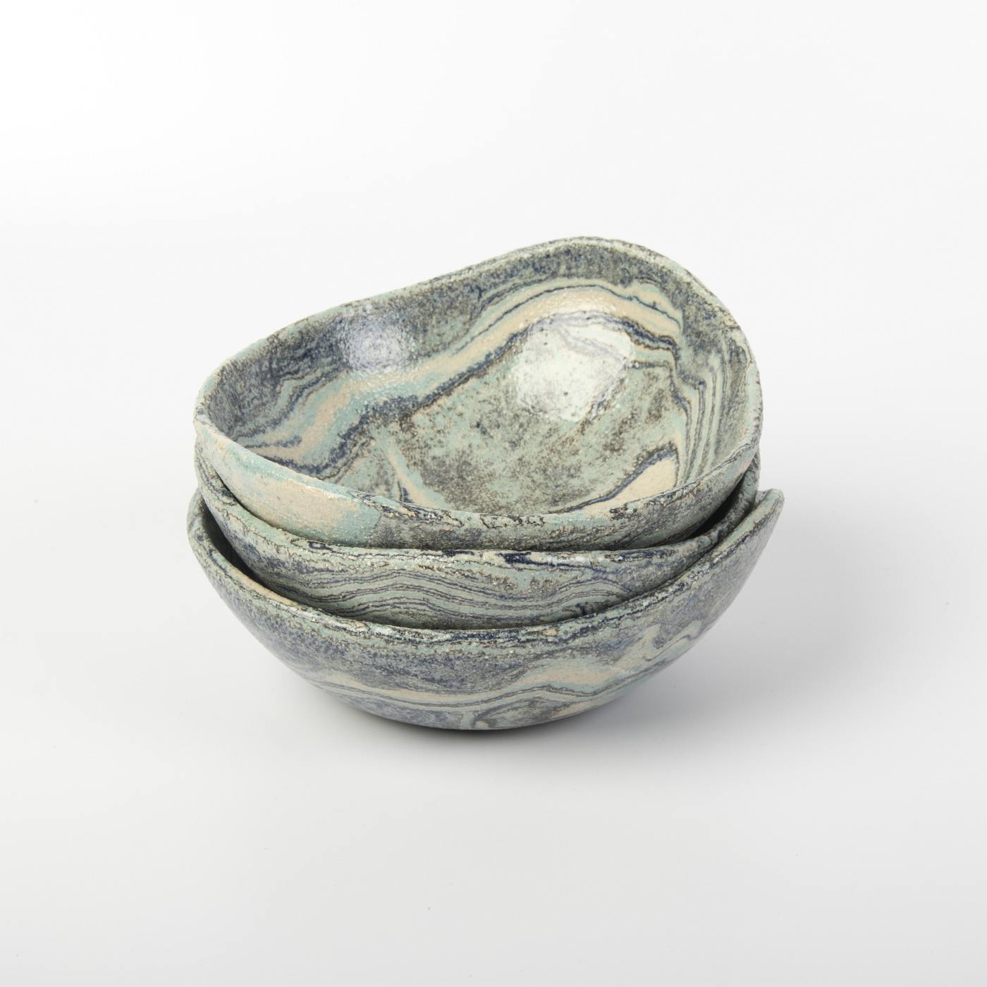 Zestaw trzech ręcznie wykonanych miseczek ceramicznych w odcieniach niebieskiego i grafitu to doskonałe połączenie subtelnej kolorystyki i artystycznego rzemiosła. Każda miseczka została stworzona z najwyższą starannością, dzięki czemu wyróżnia się niepowtarzalnym charakterem.