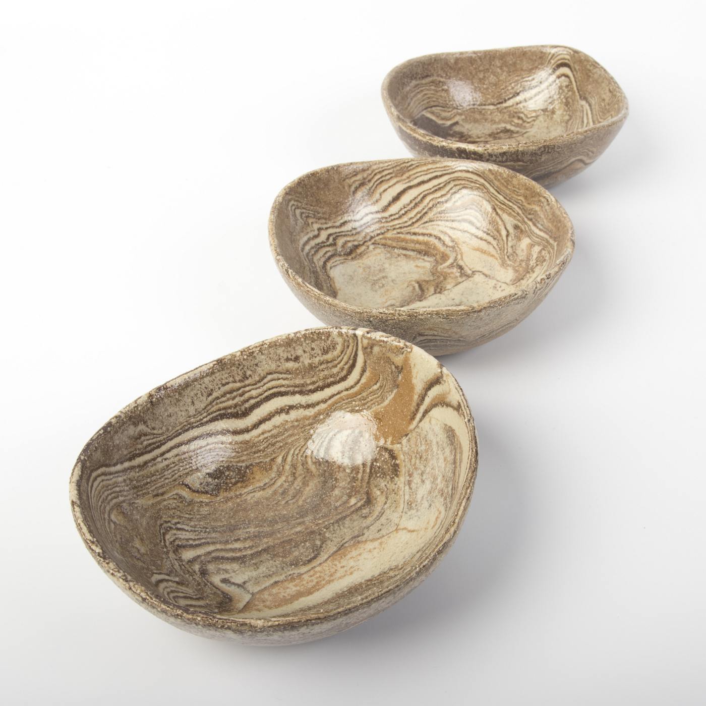 Zestaw trzech ręcznie wykonanych miseczek ceramicznych w ciepłych odcieniach brązu to połączenie naturalnej elegancji i funkcjonalności. Każda miseczka została starannie uformowana ręcznie, co nadaje jej unikalny charakter i podkreśla wyjątkowość rękodzieła.