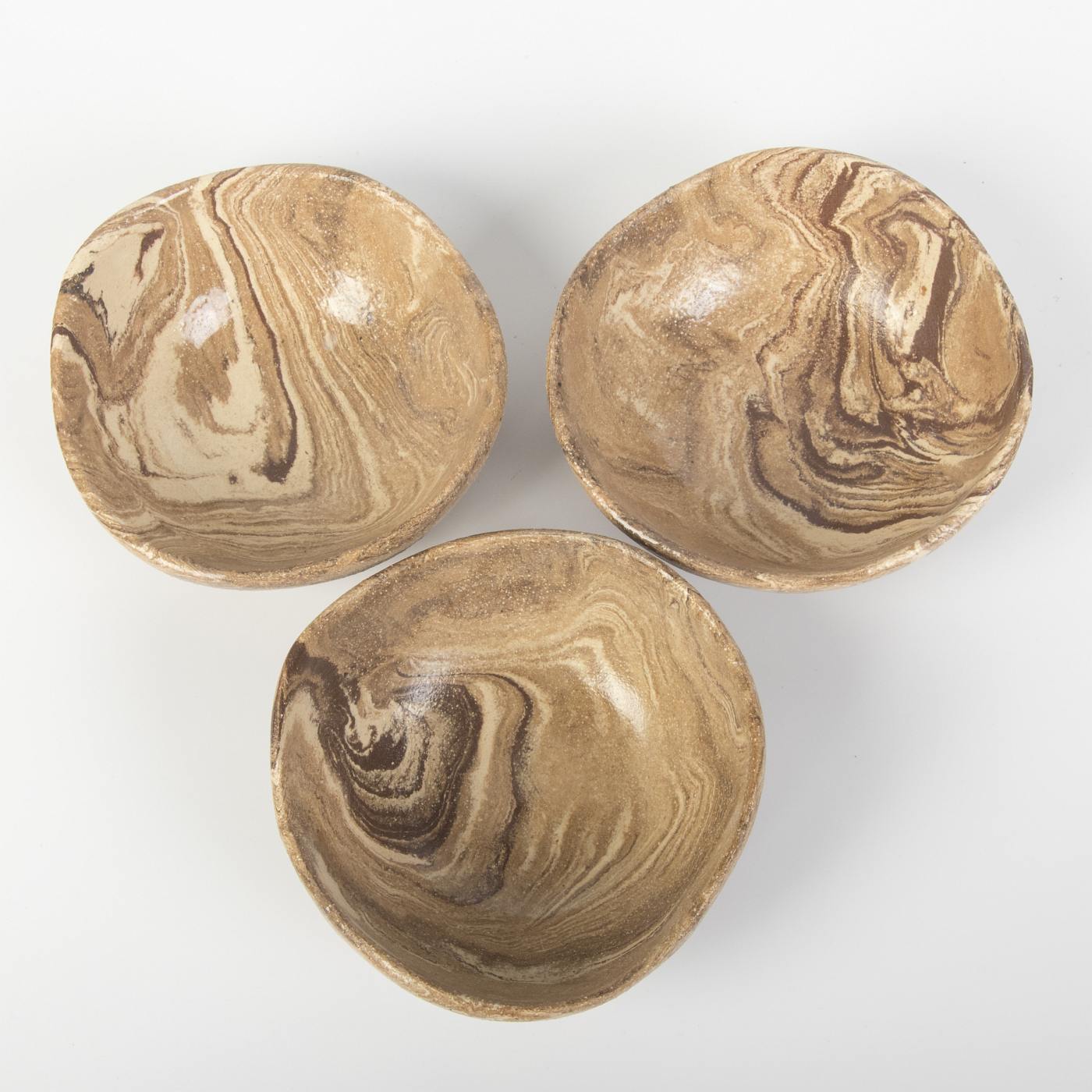 Ten wyjątkowy zestaw trzech małych misek ceramicznych z drewnopodobnym wykończeniem łączy w sobie naturalny wygląd drewna z trwałością ceramiki. Ręczne wykonanie sprawia, że każda miseczka jest unikalna i odzwierciedla najwyższą jakość rzemiosła.