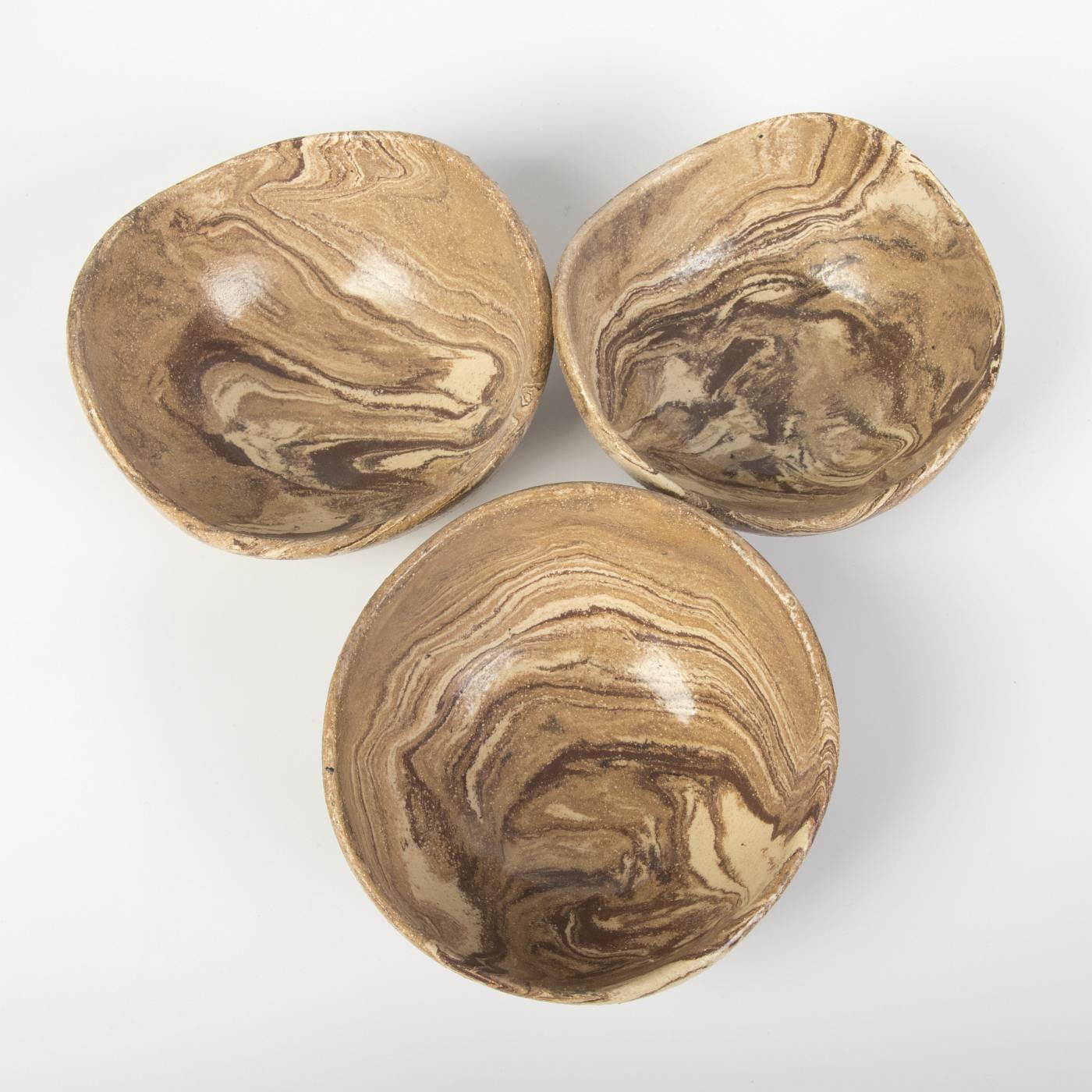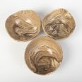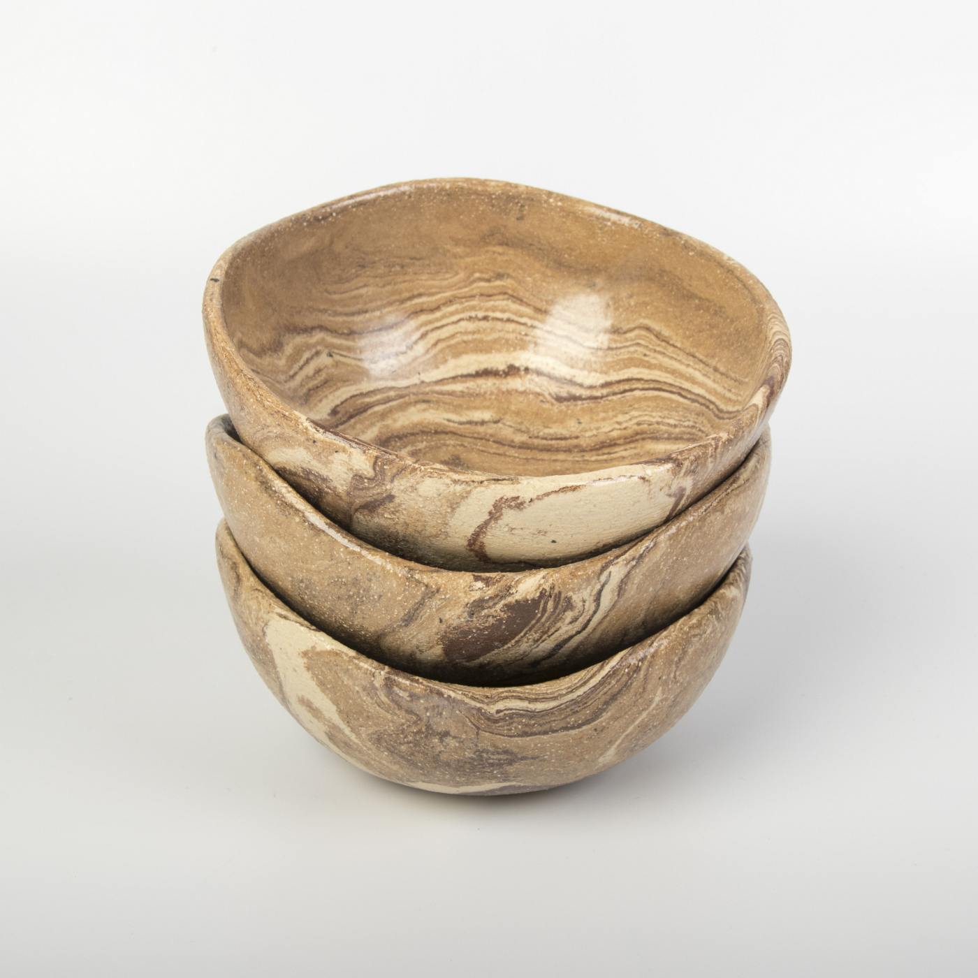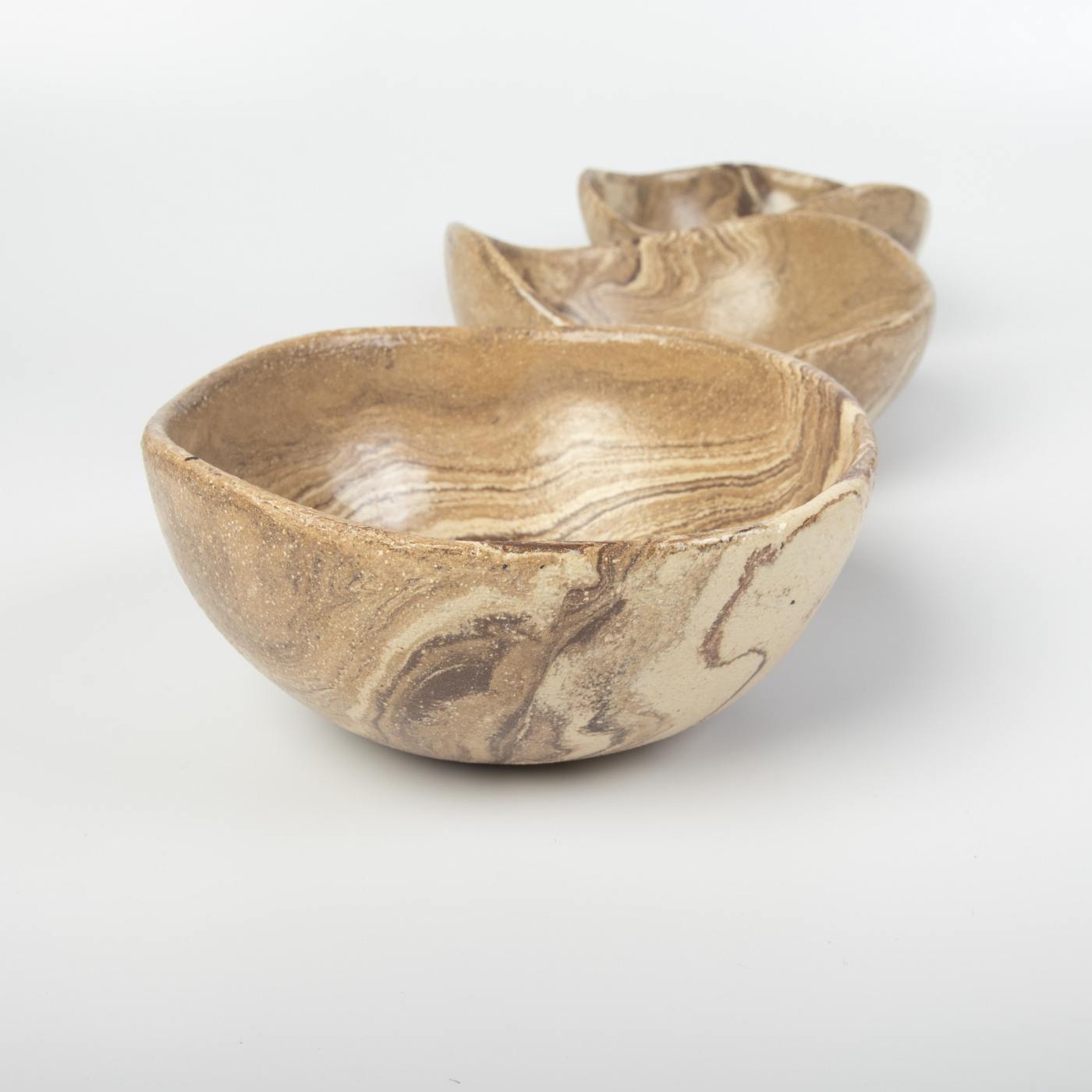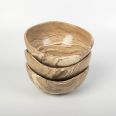 Zestaw trzech ręcznie wykonanych misek ceramicznych o unikalnym drewnopodobnym wykończeniu to doskonałe połączenie naturalnej estetyki z trwałością ceramiki. Precyzyjnie formowane ręcznie, każda miska wyróżnia się subtelną fakturą i ciepłym, organicznym wyglądem.