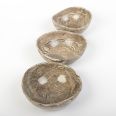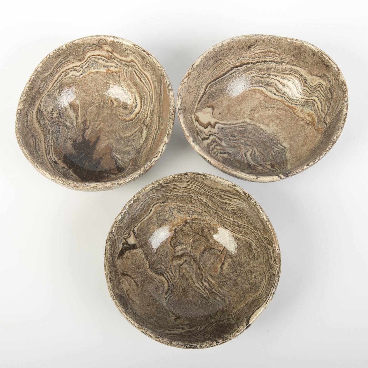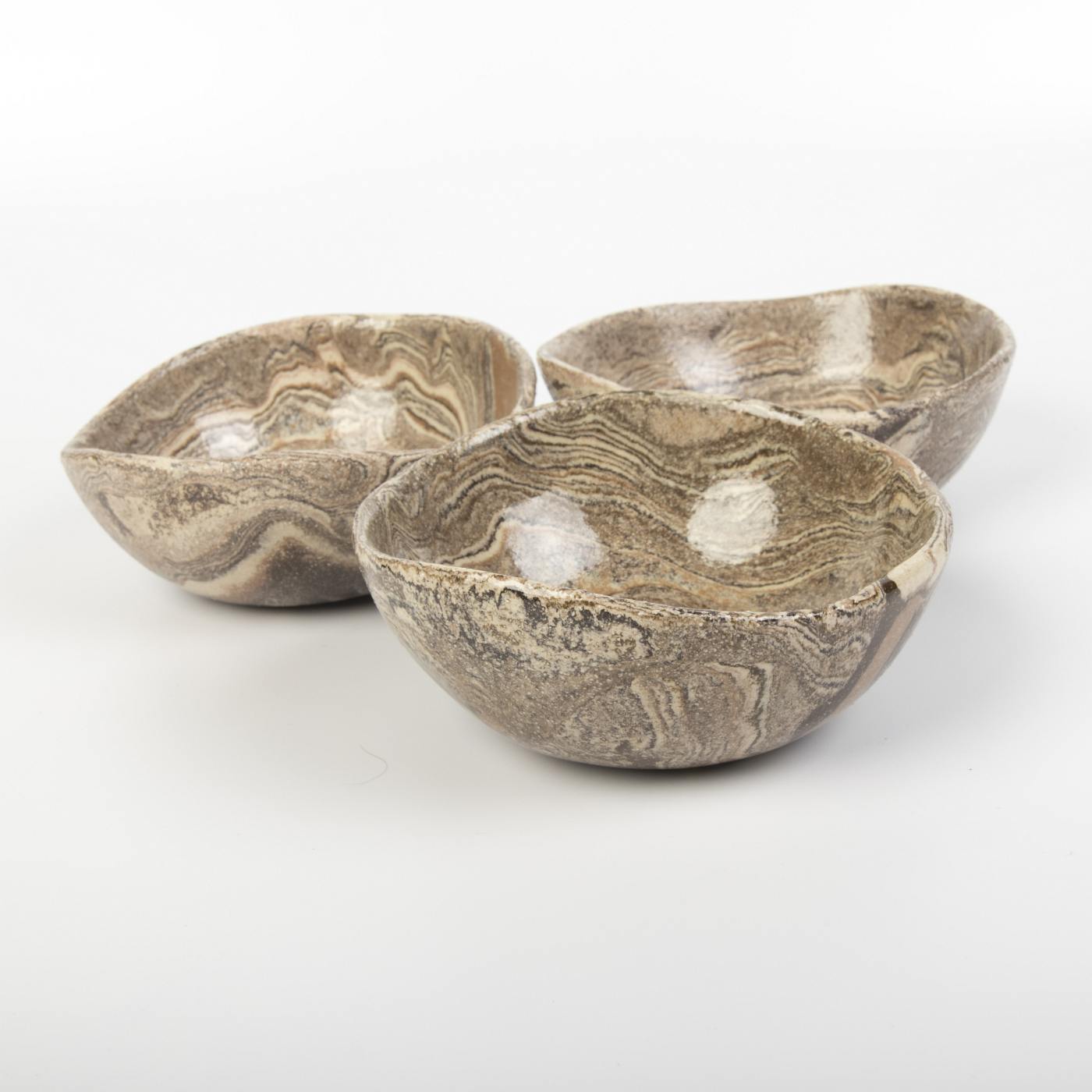 Ten zestaw trzech małych misek ceramicznych w ciepłych odcieniach brązu to doskonały wybór dla miłośników wyjątkowych, ręcznie wykonanych przedmiotów. Dzięki starannemu formowaniu każda miska zyskała swój unikalny charakter, który podkreśla piękno tradycyjnego rzemiosła.