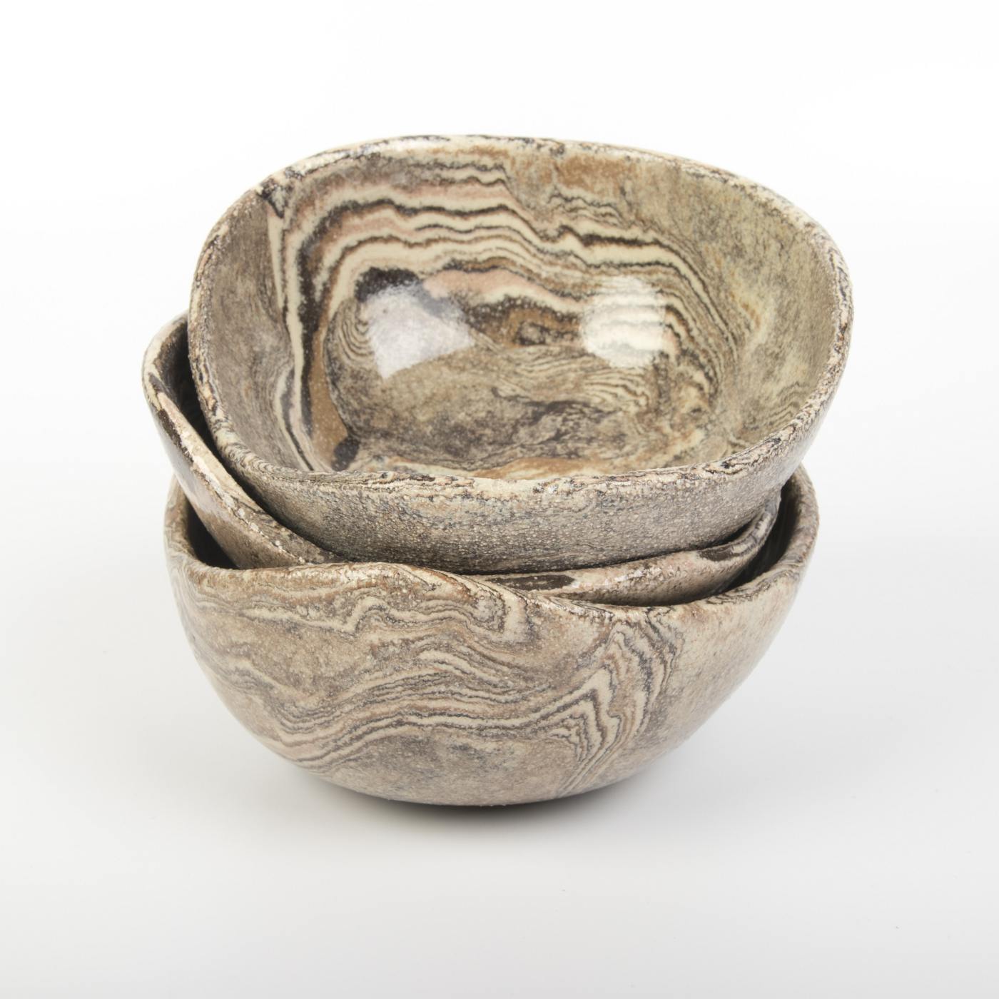 Zestaw trzech ręcznie wykonanych misek ceramicznych w ciepłych, naturalnych odcieniach brązu to idealny dodatek do Twojej kuchni. Każda miska jest unikalna dzięki precyzyjnemu formowaniu i wykończeniu, co podkreśla ich artystyczny charakter i wysoką jakość rzemiosła.