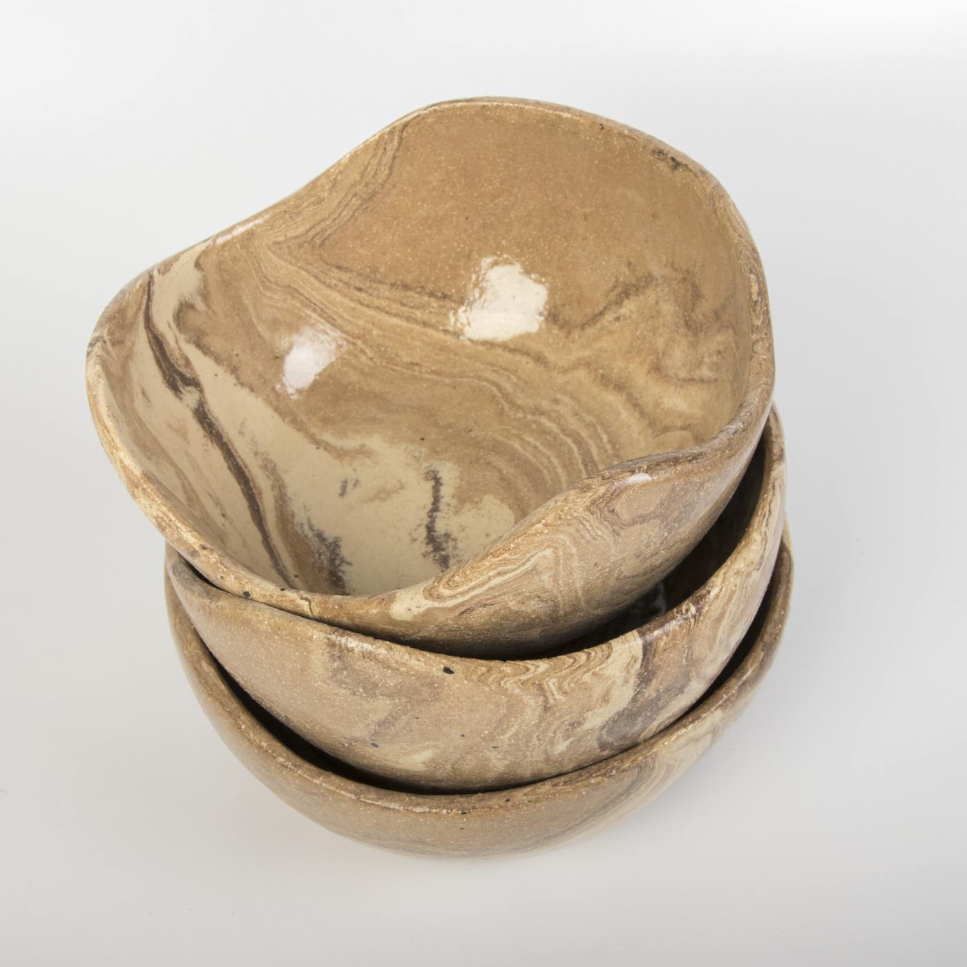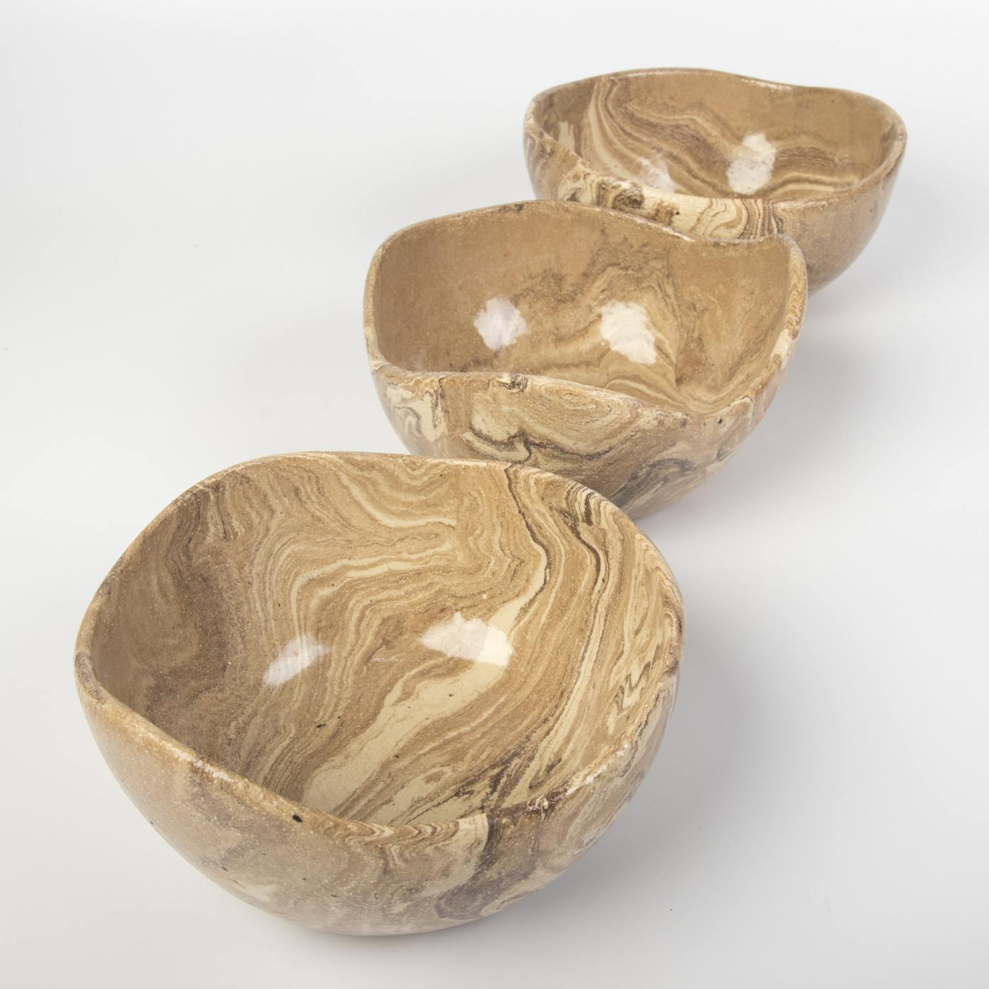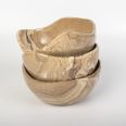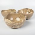 Zestaw trzech ręcznie wykonanych misek ceramicznych o wyjątkowym drewnopodobnym wykończeniu, które łączy naturalny wygląd z trwałością ceramiki. Dzięki starannemu formowaniu i wykończeniu, każda miska zachwyca subtelnym designem inspirowanym naturą.
