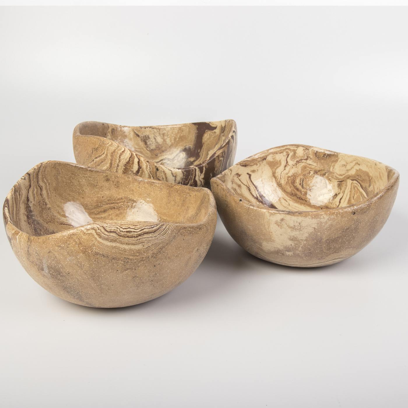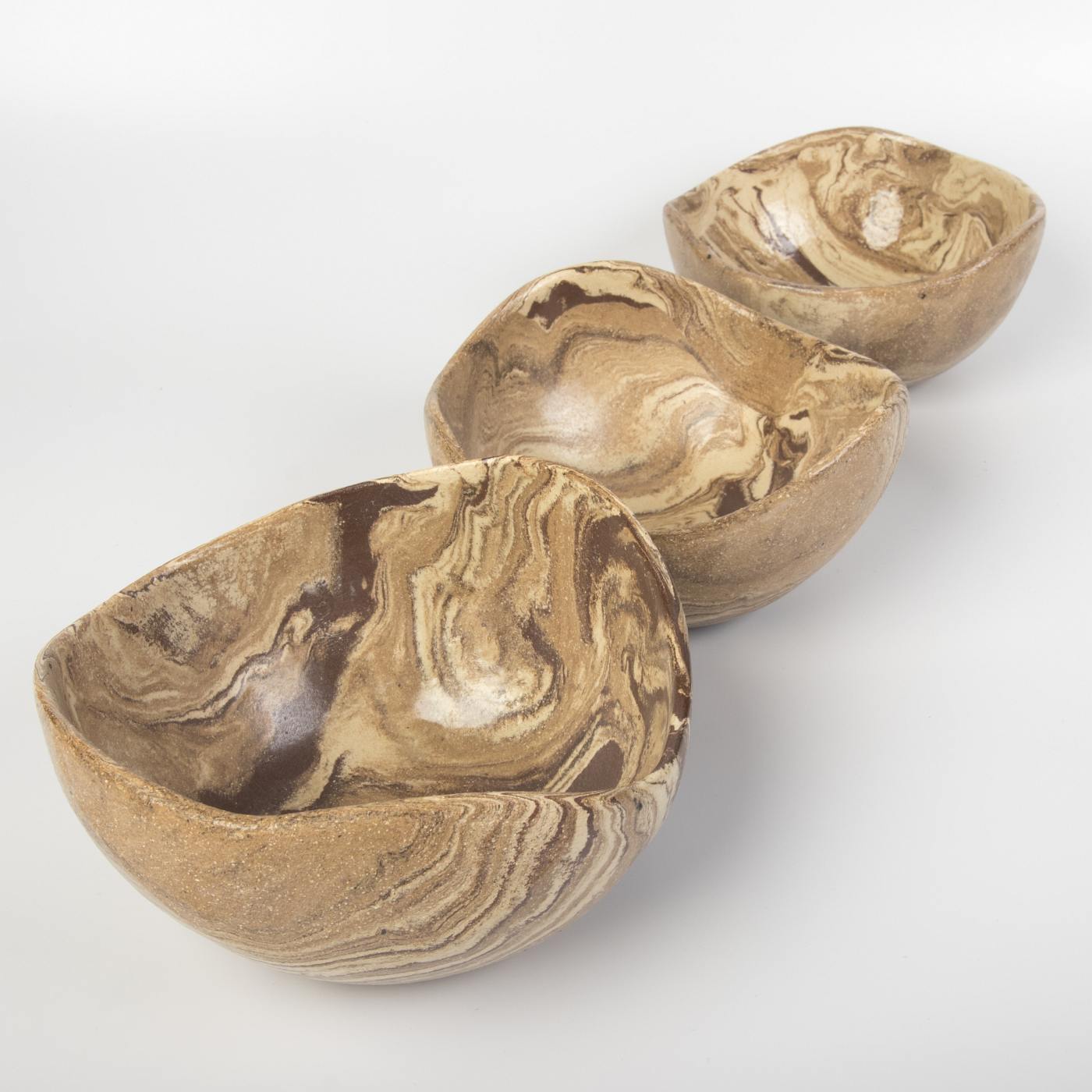 Zestaw trzech ręcznie wykonanych misek ceramicznych z wykończeniem imitującym drewno to połączenie naturalnej estetyki i funkcjonalności. Każda miska została precyzyjnie uformowana i ozdobiona, aby uzyskać niepowtarzalny wygląd inspirowany naturą.