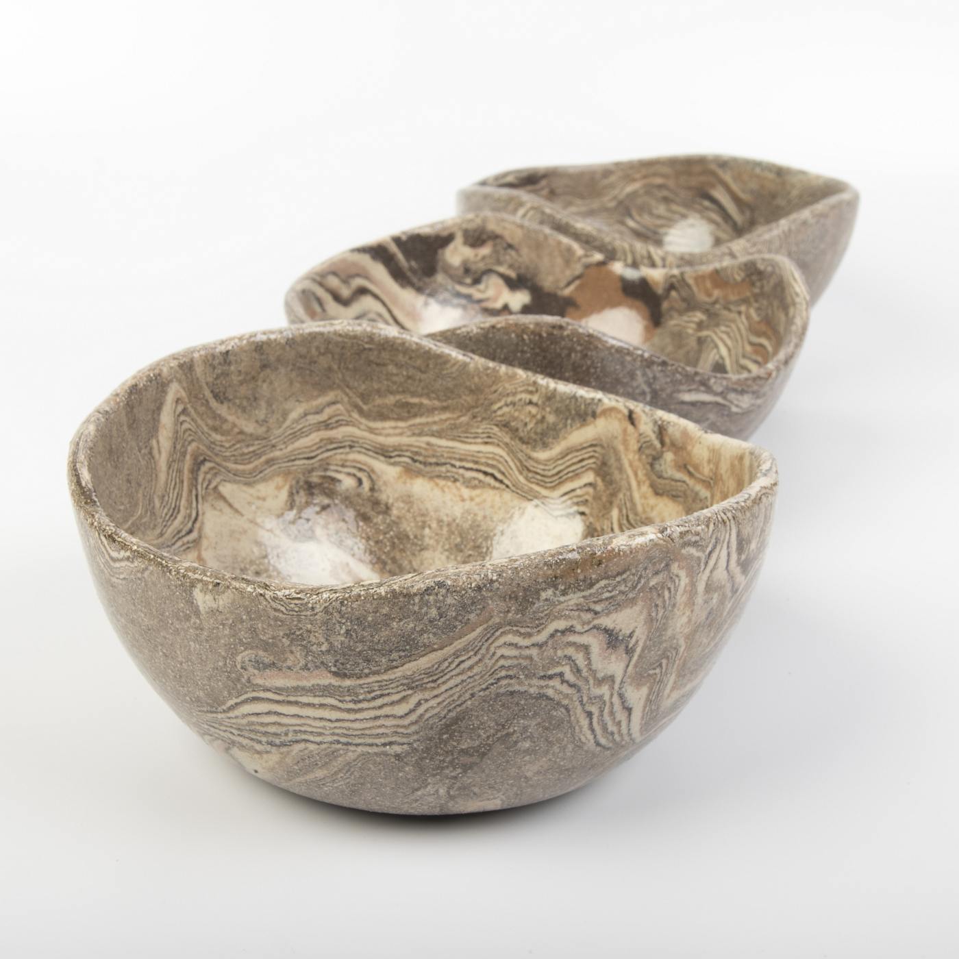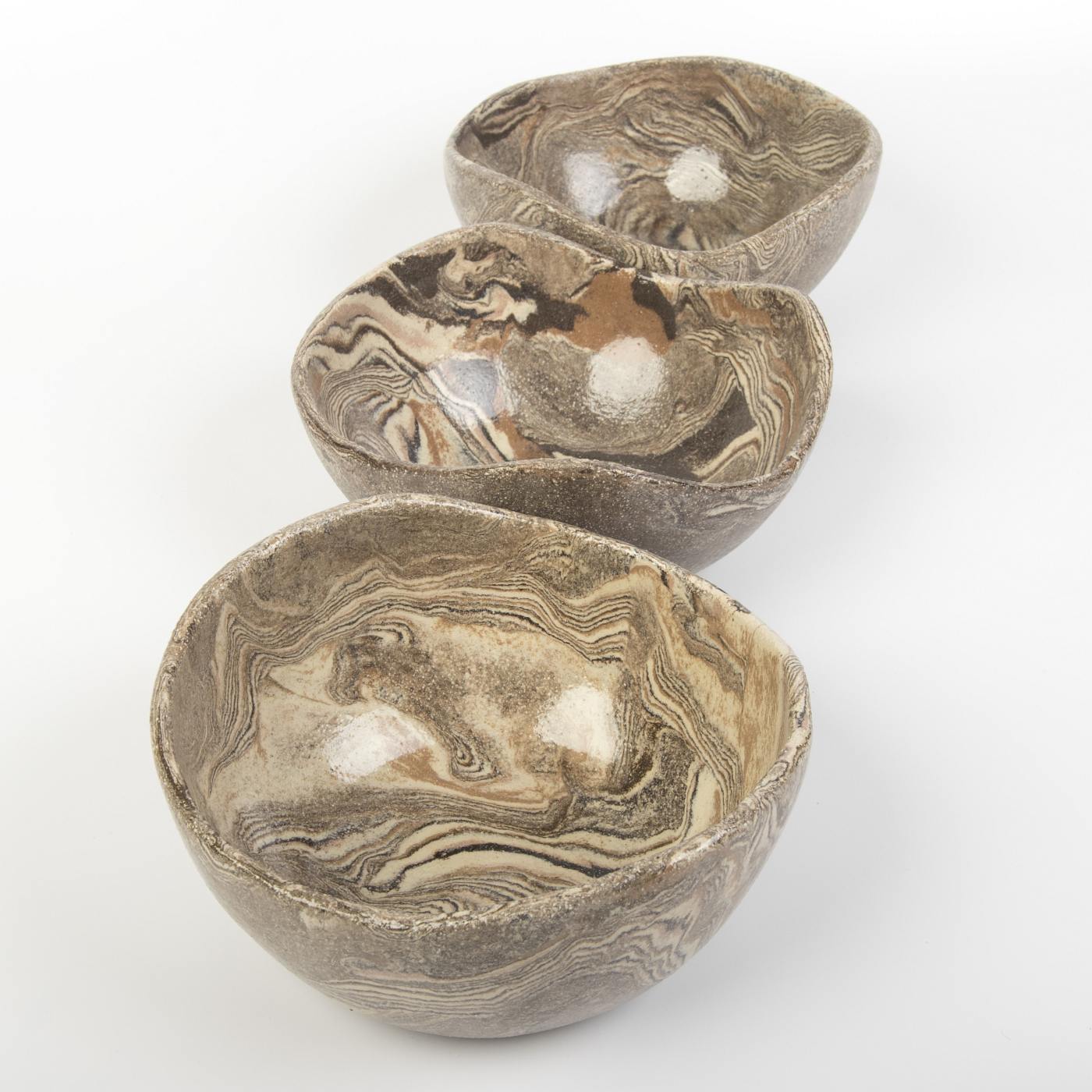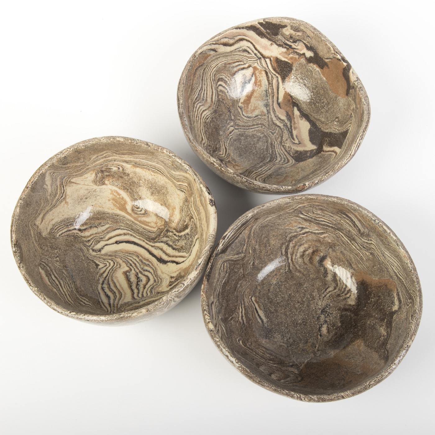 Ten zestaw trzech ręcznie wykonanych misek ceramicznych w ciepłych, ziemistych odcieniach brązu to połączenie funkcjonalności i elegancji. Miski zostały starannie uformowane ręcznie, co nadaje im unikalny charakter i podkreśla kunszt rzemiosła.