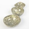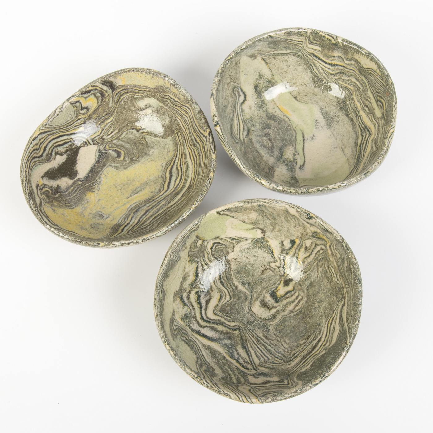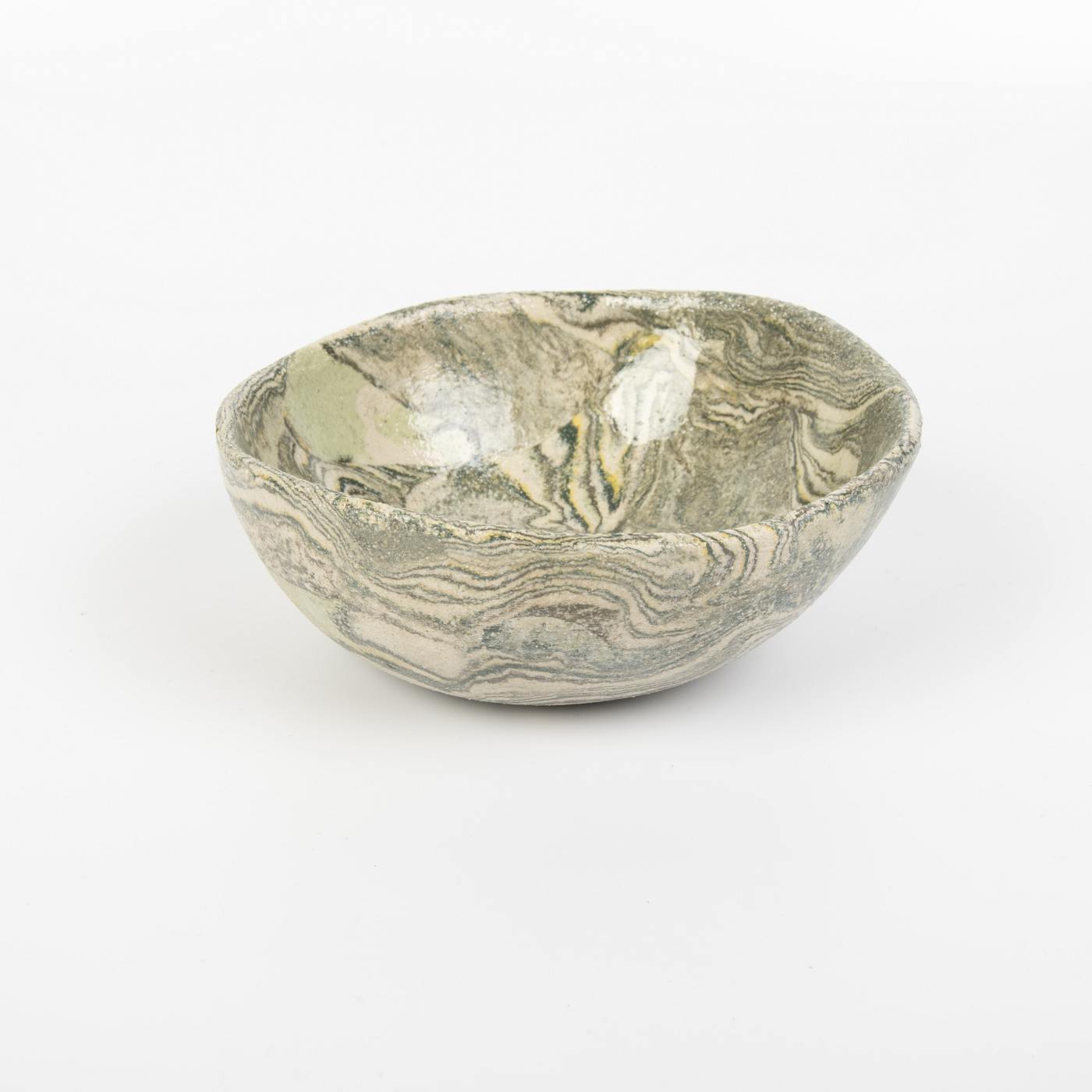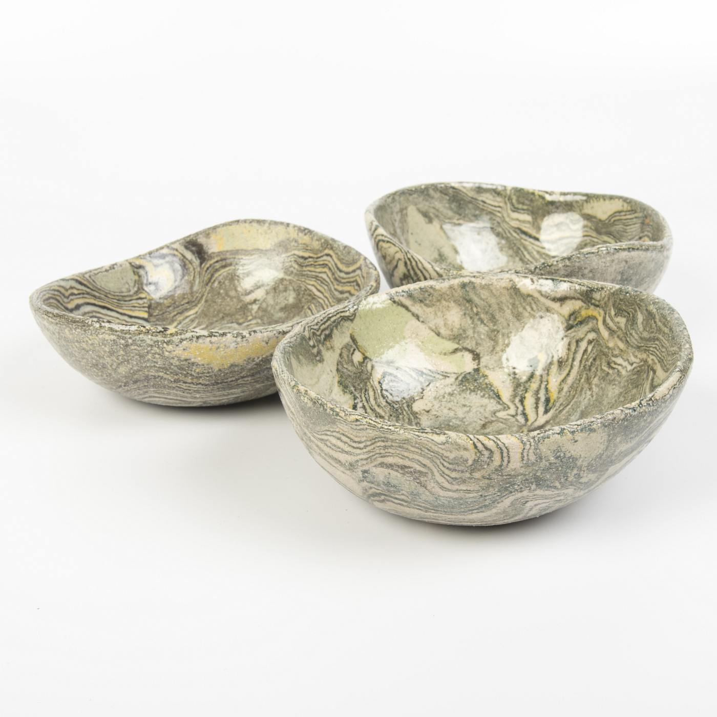 Ten elegancki zestaw trzech ręcznie wykonanych misek ceramicznych w odcieniach szarości i zieleni wyróżnia się subtelnym i harmonijnym designem. Każda miska została uformowana ręcznie, a zastosowana technika barwienia nadaje im niepowtarzalny charakter.