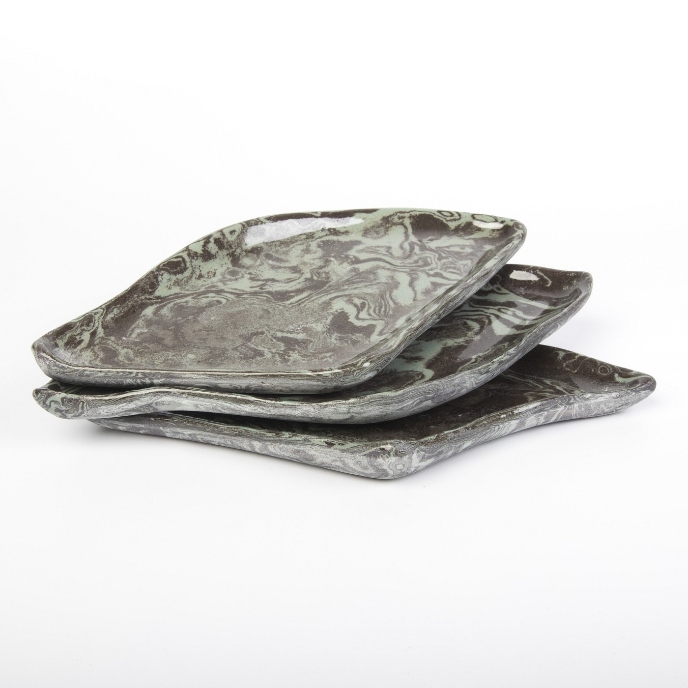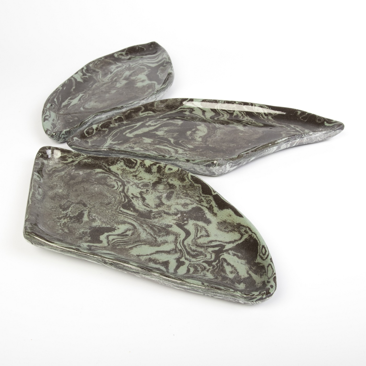 Ten wyjątkowy zestaw trzech ręcznie wykonanych półmisków ceramicznych, które po złożeniu tworzą spójną całość w kształcie koła, wyróżnia się elegancką kolorystyką w odcieniach czerni i błękitu. Każdy element zestawu został starannie zaprojektowany, aby pełnić zarówno funkcję praktyczną, jak i dekoracyjną.