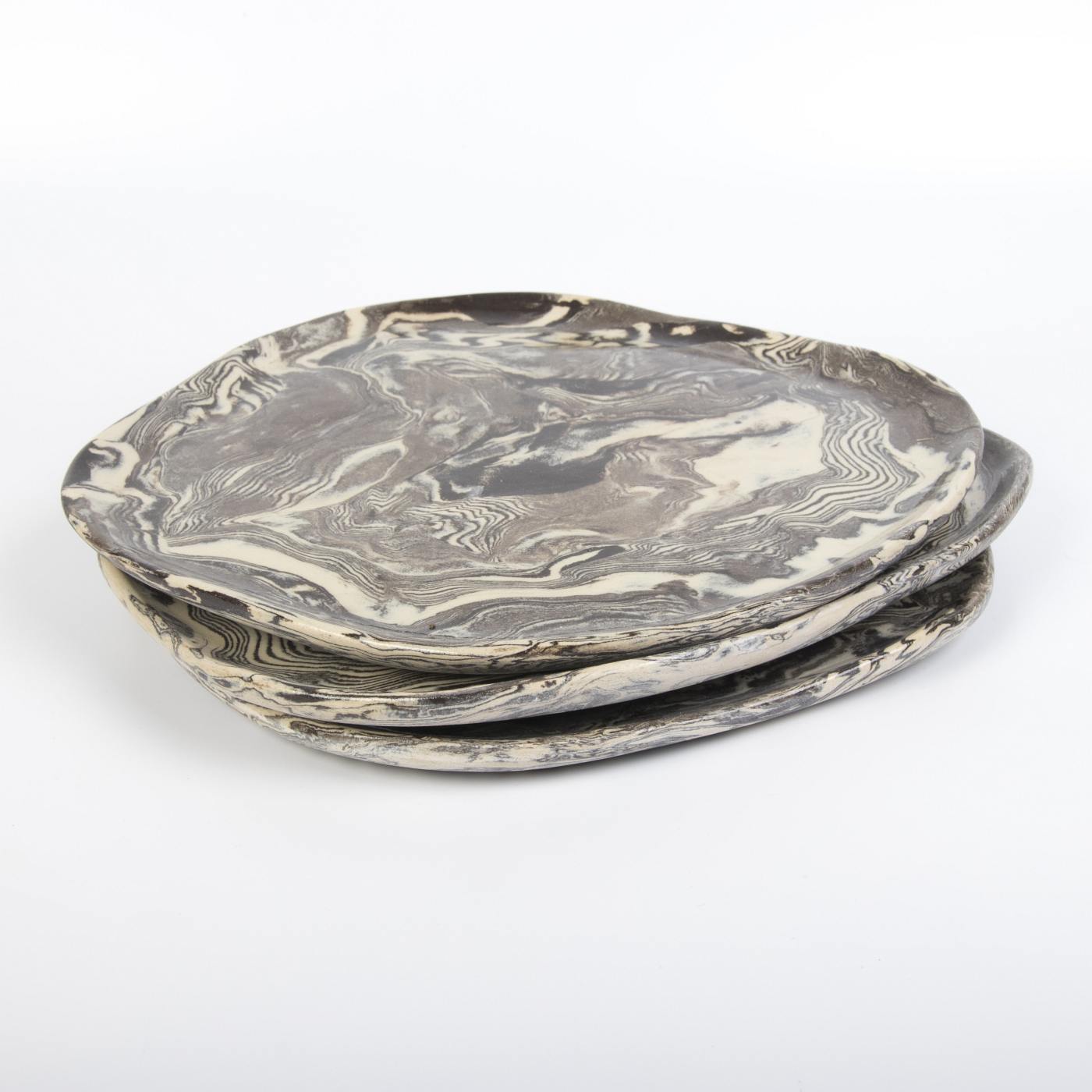 Zestaw trzech ręcznie wykonanych talerzy ceramicznych w eleganckiej kolorystyce czarno-kremowej to doskonałe połączenie artystycznego rzemiosła i funkcjonalności. Dzięki ręcznemu formowaniu każdy talerz wyróżnia się unikalnym charakterem, co podkreśla indywidualność zestawu.