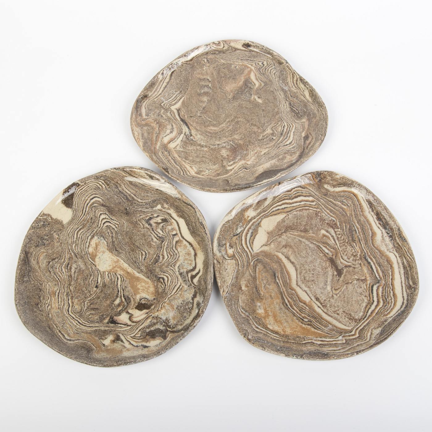 Zestaw trzech ręcznie wykonanych talerzy deserowych w ciepłych odcieniach brązu to wyjątkowe połączenie naturalnej estetyki i funkcjonalności. Górna powierzchnia talerzy została pokryta transparentnym szkliwem spożywczym, co nadaje im delikatny połysk i zapewnia bezpieczeństwo w kontakcie z żywnością. Dolna część talerzy, nieszklona, jest starannie szlifowana i polerowana, dzięki czemu ich spody są wyjątkowo gładkie i przyjemne w dotyku.
