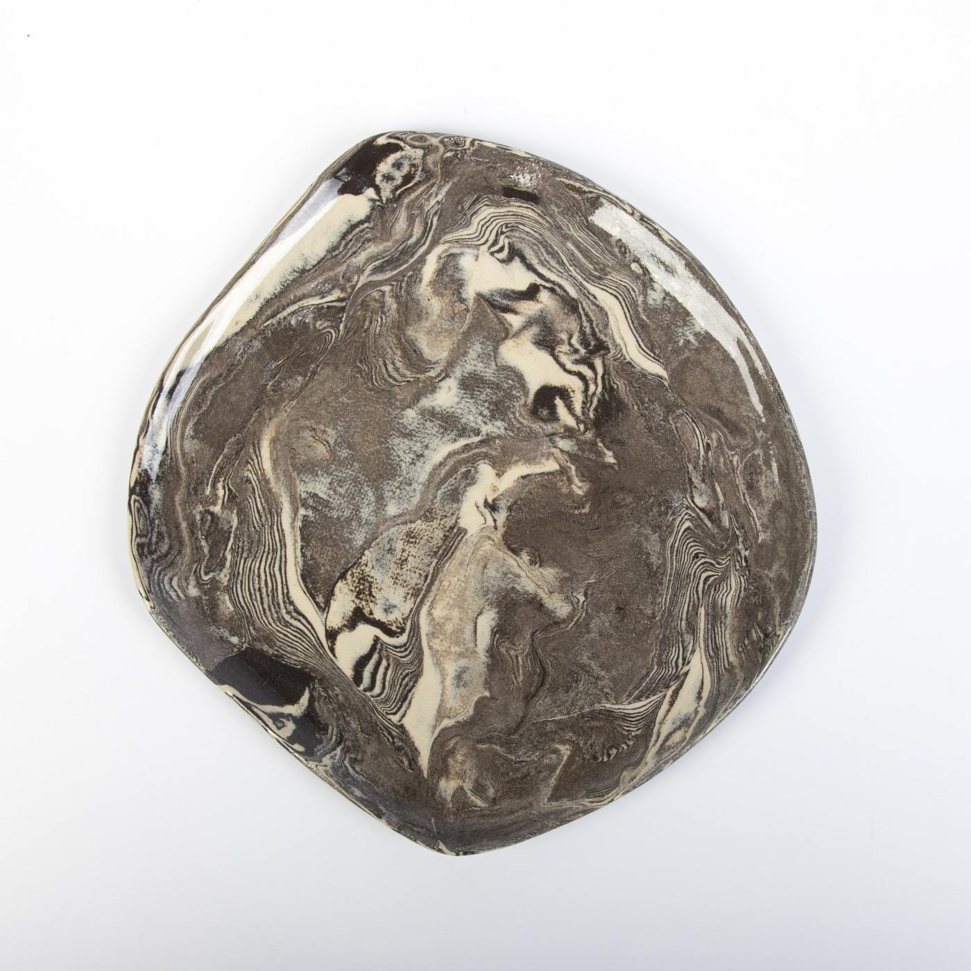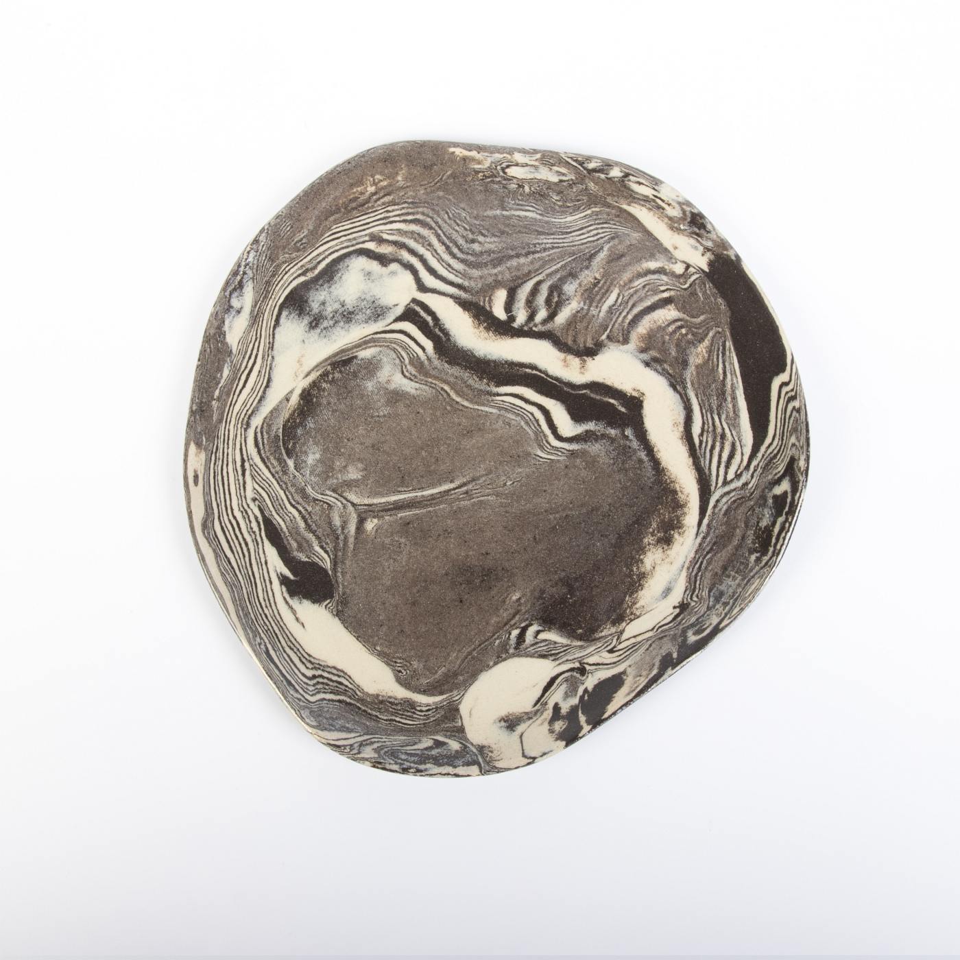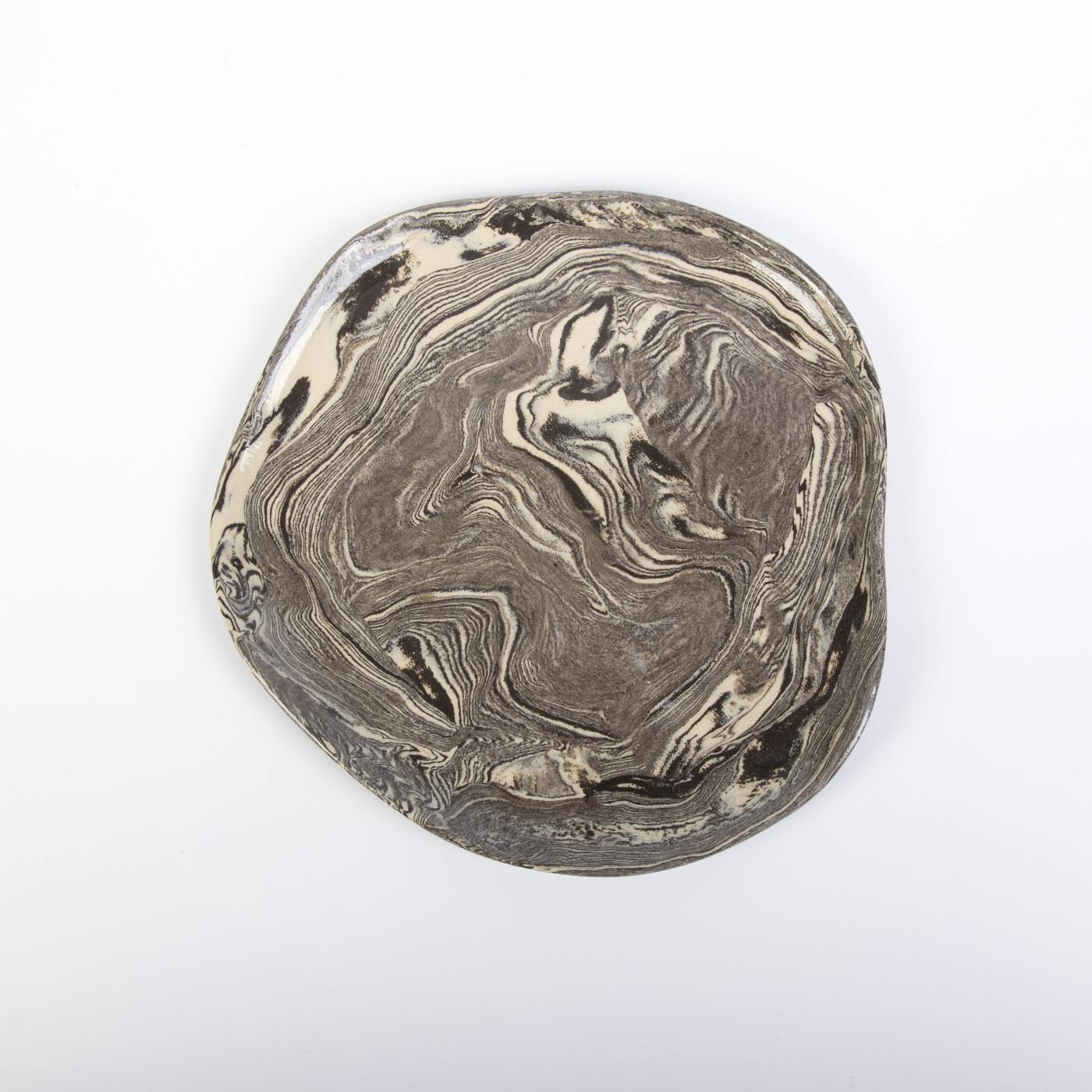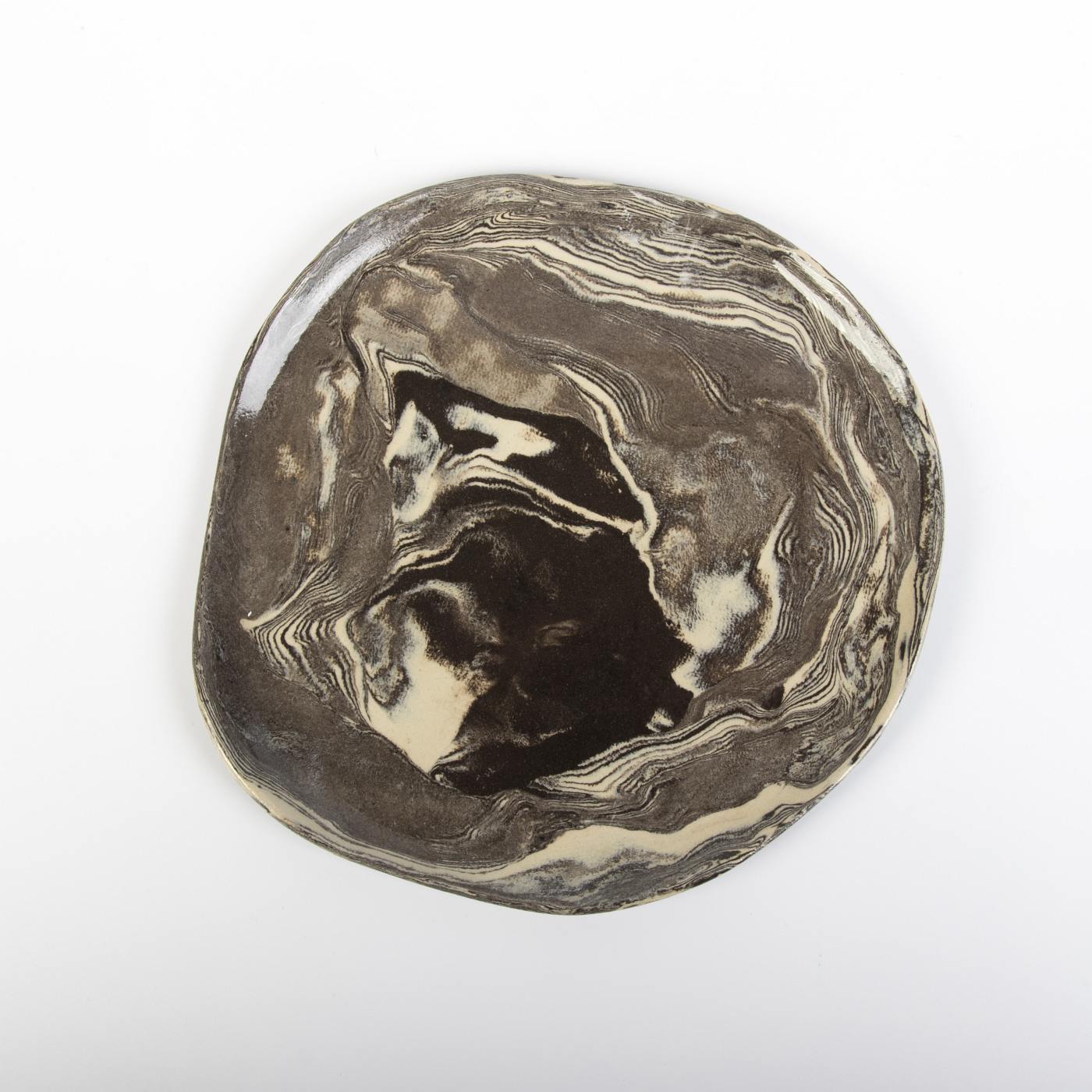 Zestaw sześciu ręcznie wykonanych talerzyków deserowych w eleganckiej kolorystyce czarno-kremowej to połączenie funkcjonalności i artystycznego designu. Górna powierzchnia talerzyków została pokryta transparentnym szkliwem spożywczym, które nadaje im subtelny połysk i wyjątkowo gładką teksturę. Dolna część naczyń jest nieszklona, ale starannie szlifowana i polerowana, co zapewnia gładkie i estetyczne wykończenie.