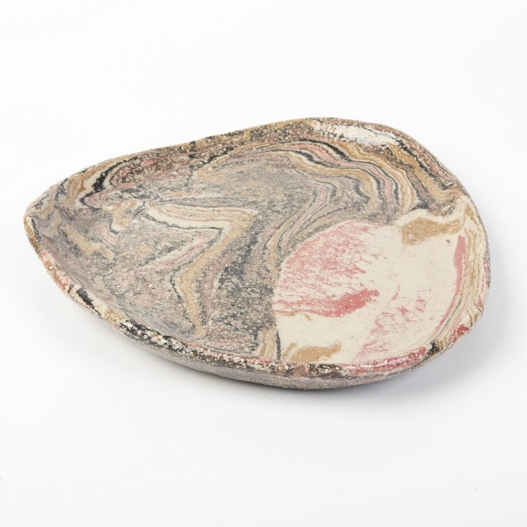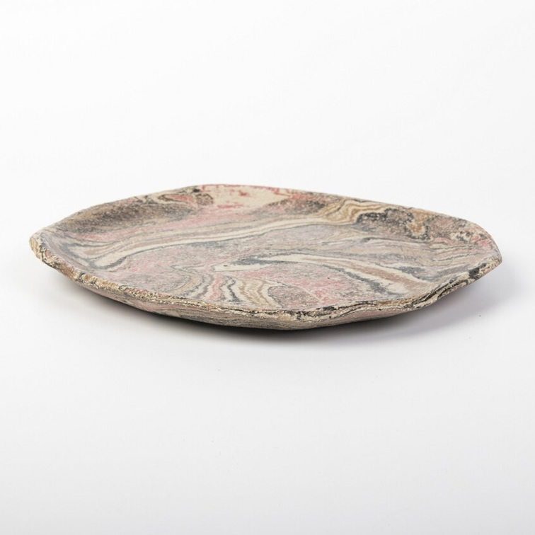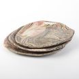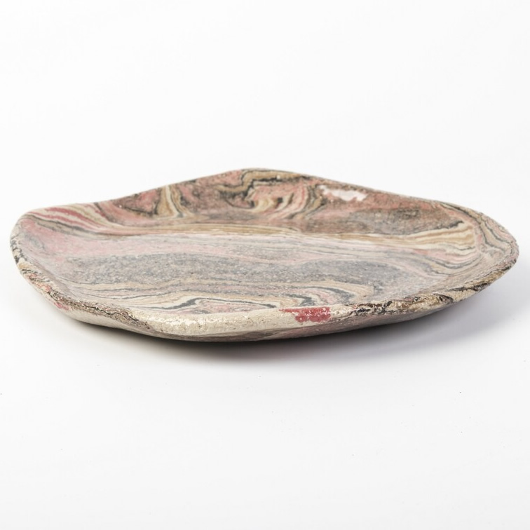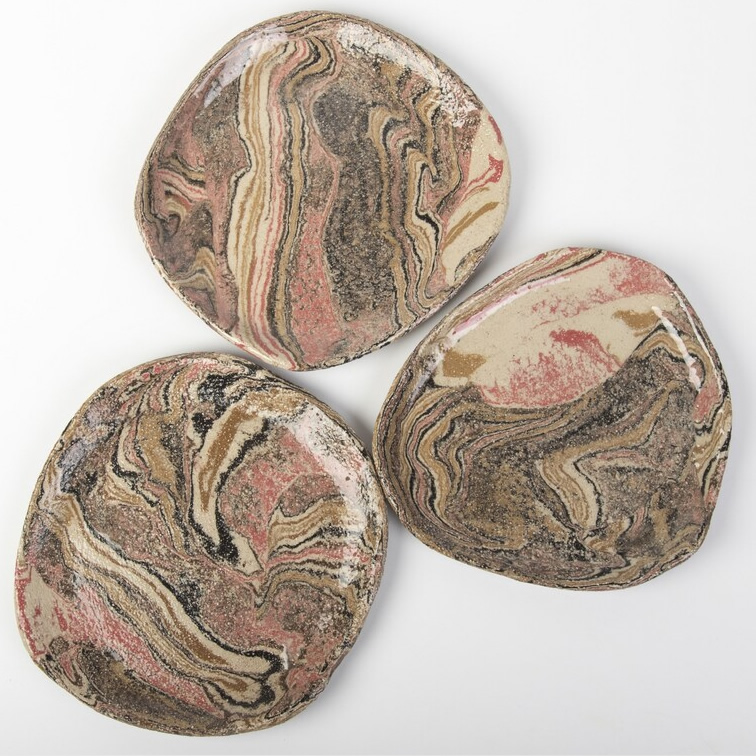 Zestaw trzech unikatowych talerzy wykonanych techniką NERIKOMY. Poprzez odpowiednie zmieszanie różnokolorowych glin (kolory: beż, jasno brązowy, brązowy, czerwony, czarny) uzyskaliśmy efekt naturalnego wielobarwnego kamienia. Kolory oddają otaczająca nas naturę. Wzór i kolorystyka talerzy oddaje nasze dążenie do natury, do jej piękna i doskonałości.